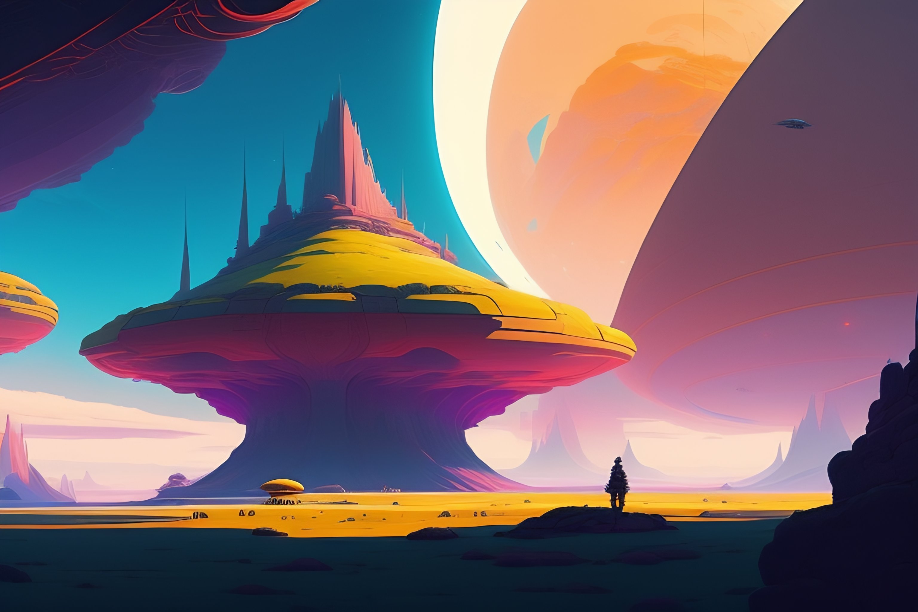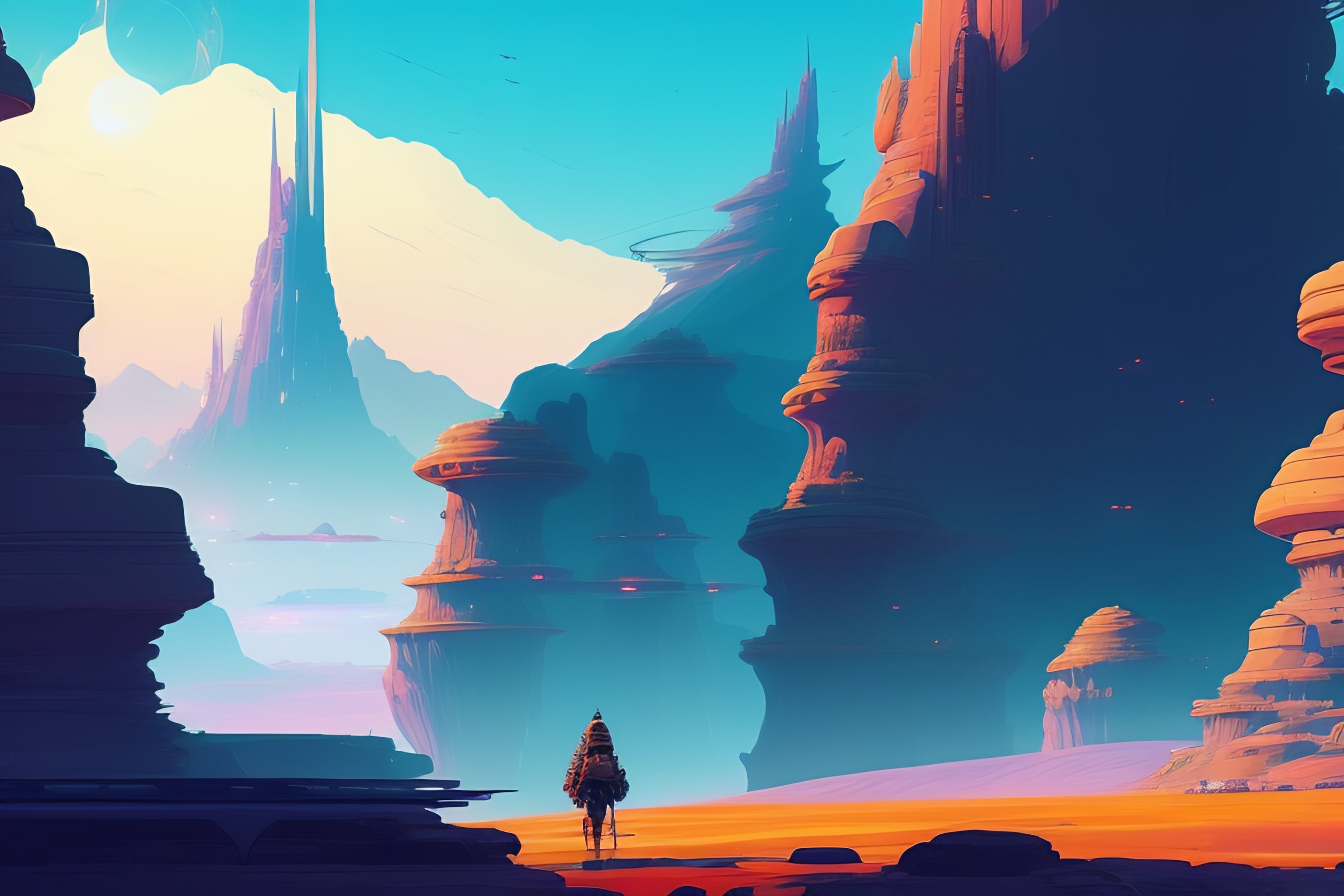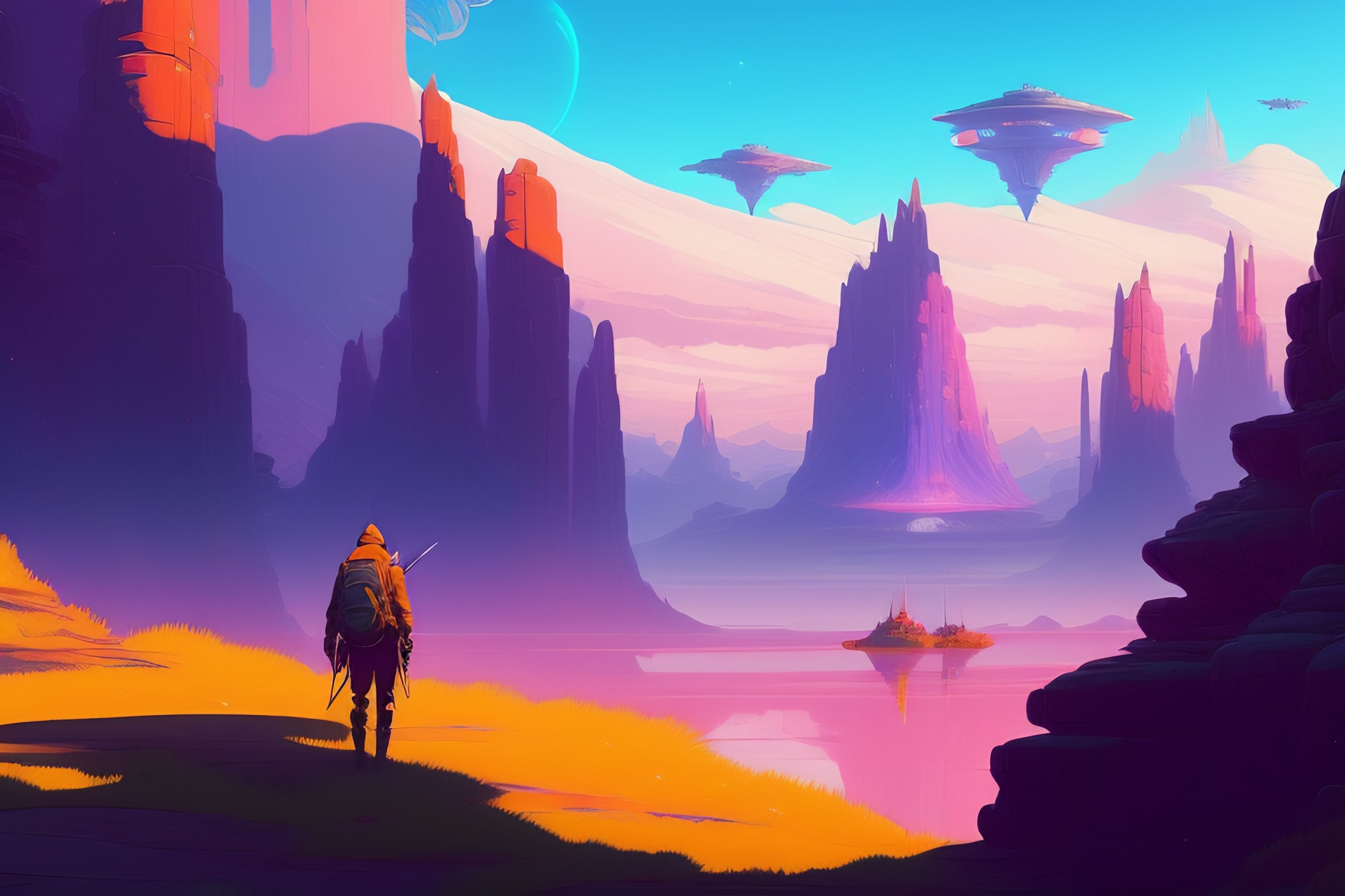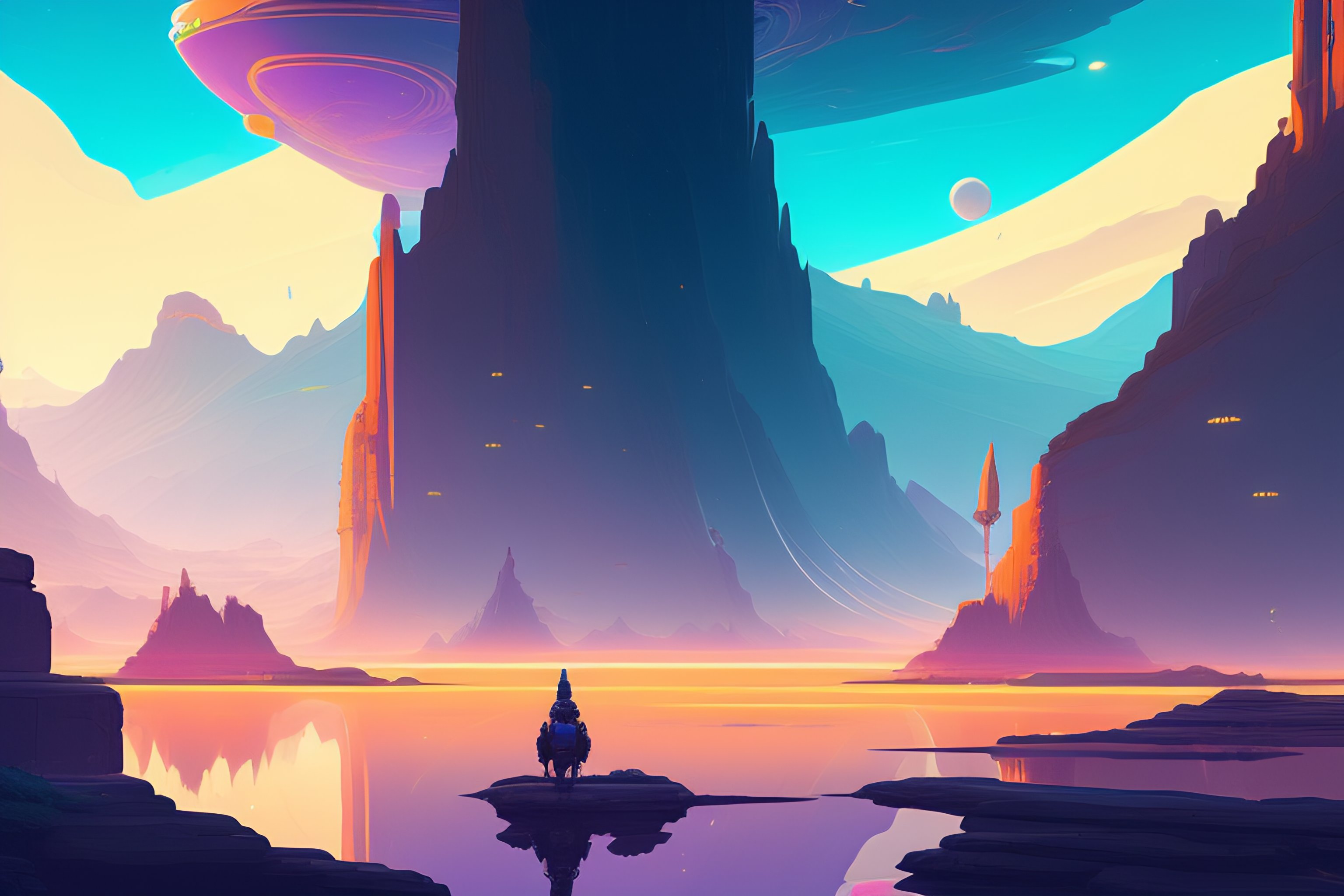 Falling behind, alien landscape, illustration, wide shot, subtle colors, concept art by josan gonzales and wlop, laurie greasley, jordan grimmer and james jean, highly detailed, fantasy, magical realism, futuristic, sharp focus, trending on artstation, hq, deviantart, art by artgem, in the style of breath of the wild, ghibli