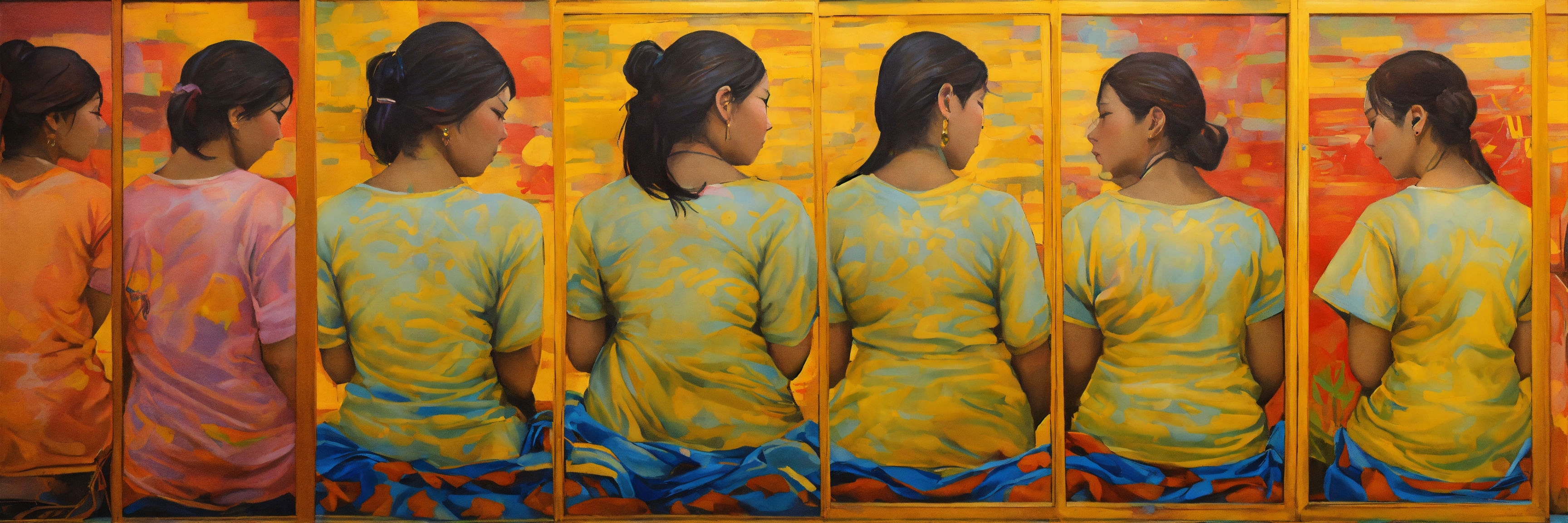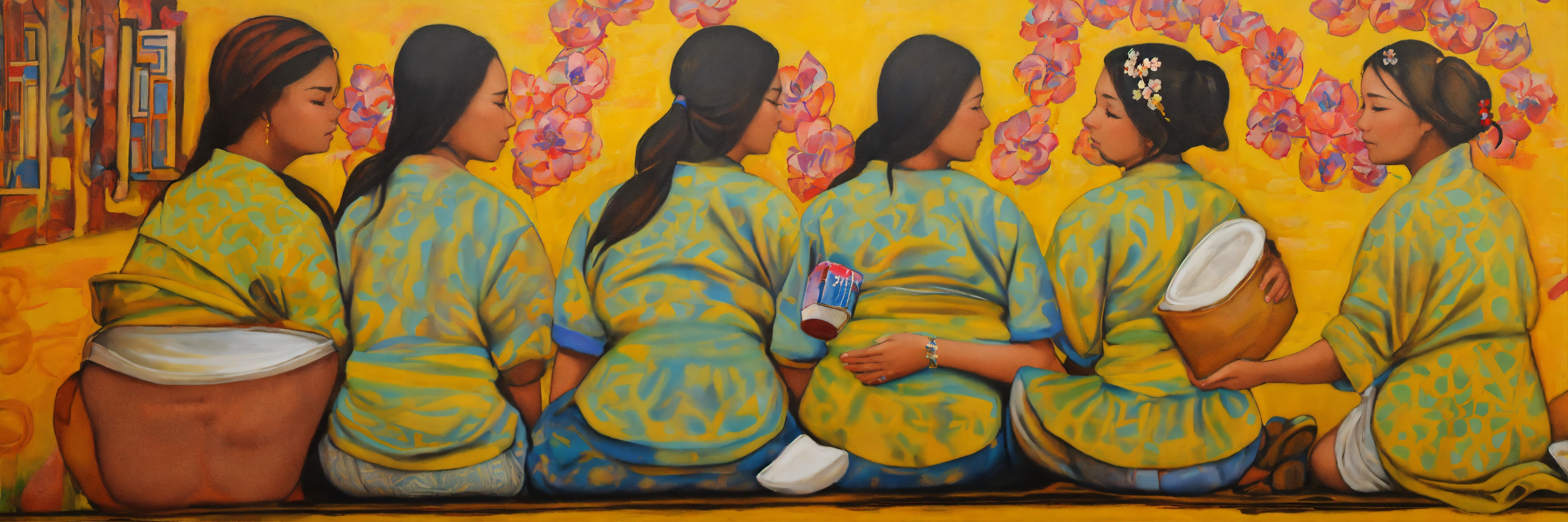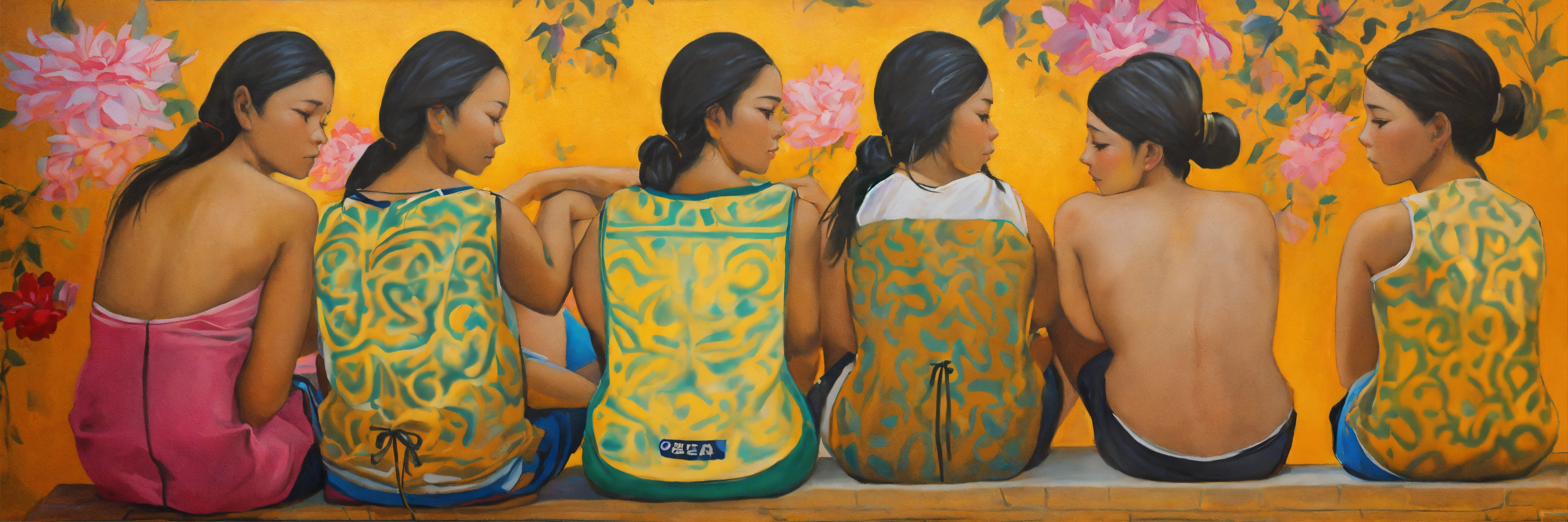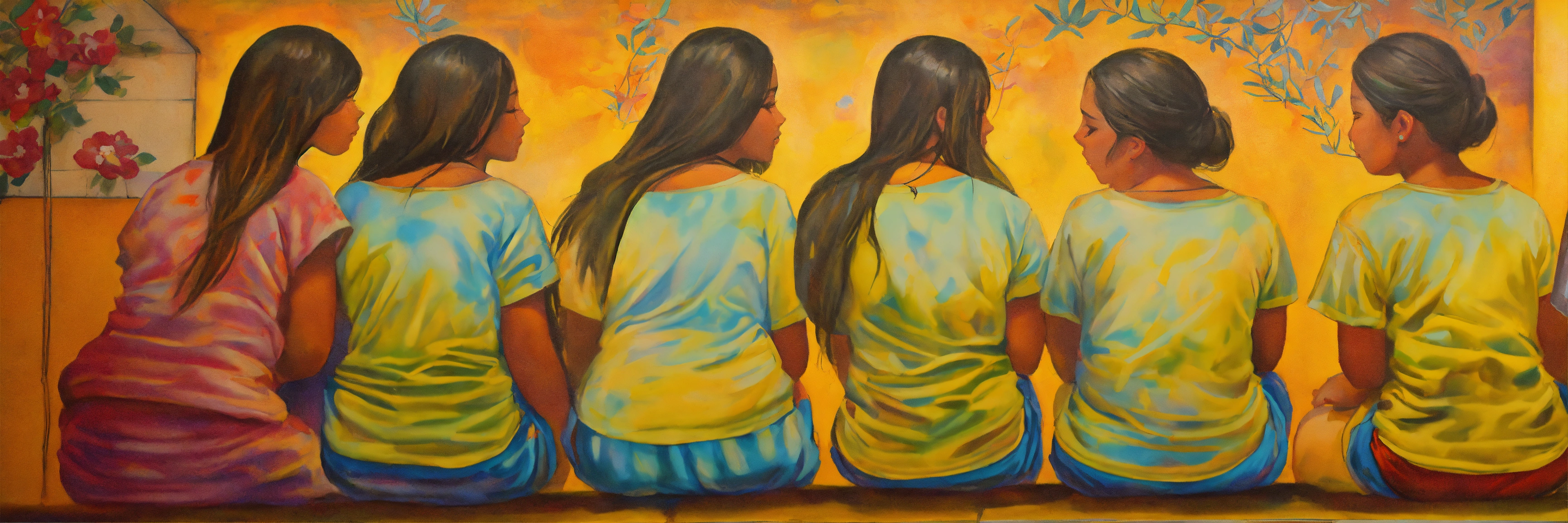 Pintura, de mujeres de distintas etnias o razas, no uses fottografías, quiero pintura, that showcases empathy osea the emotional involvement of a person in a reality outside of their own, usually in the feelings of another person, graffiti. abrazo entre dos mujeres, cariño, altruismo, ai weiwei style.