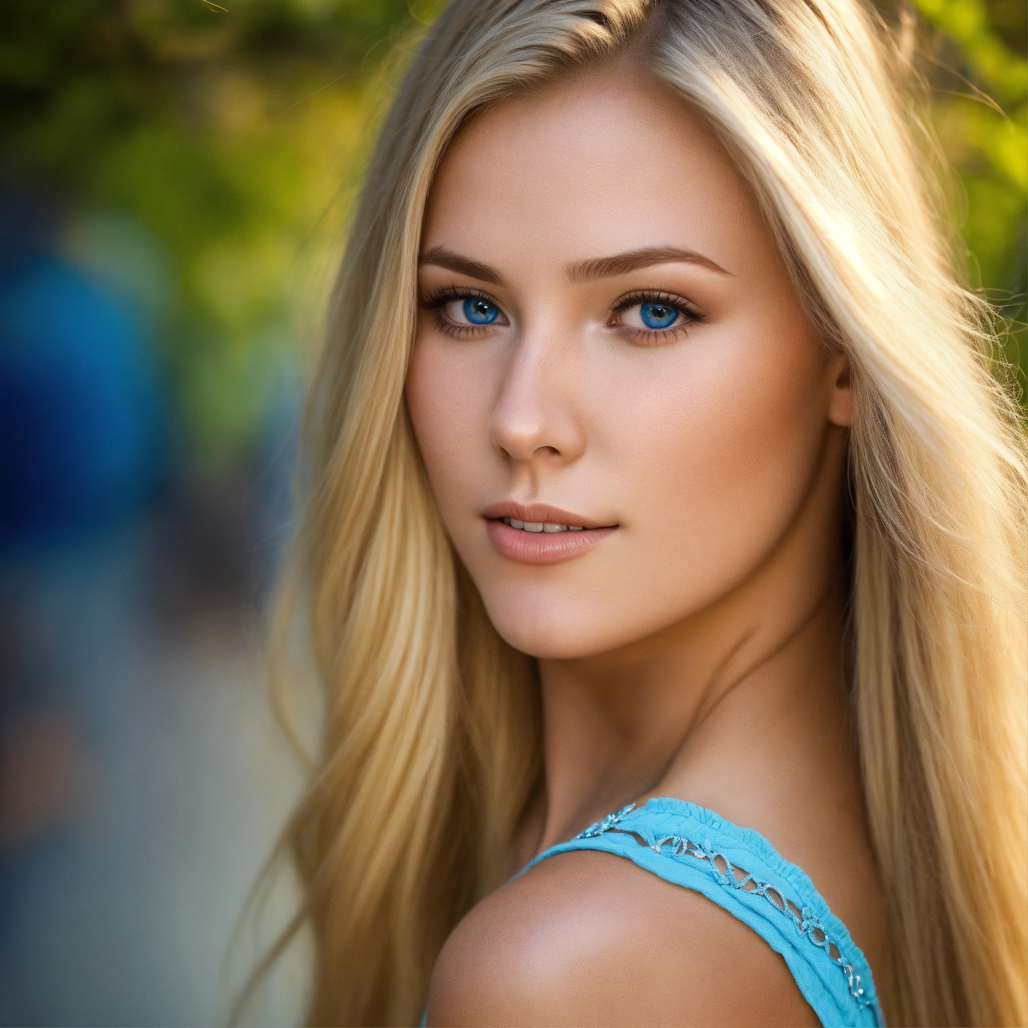 Beautiful blonde with blue eyes and long hair with boca backgroung