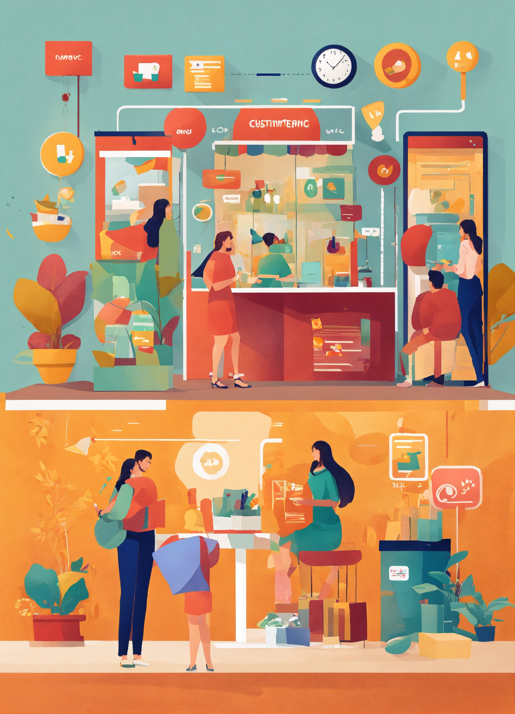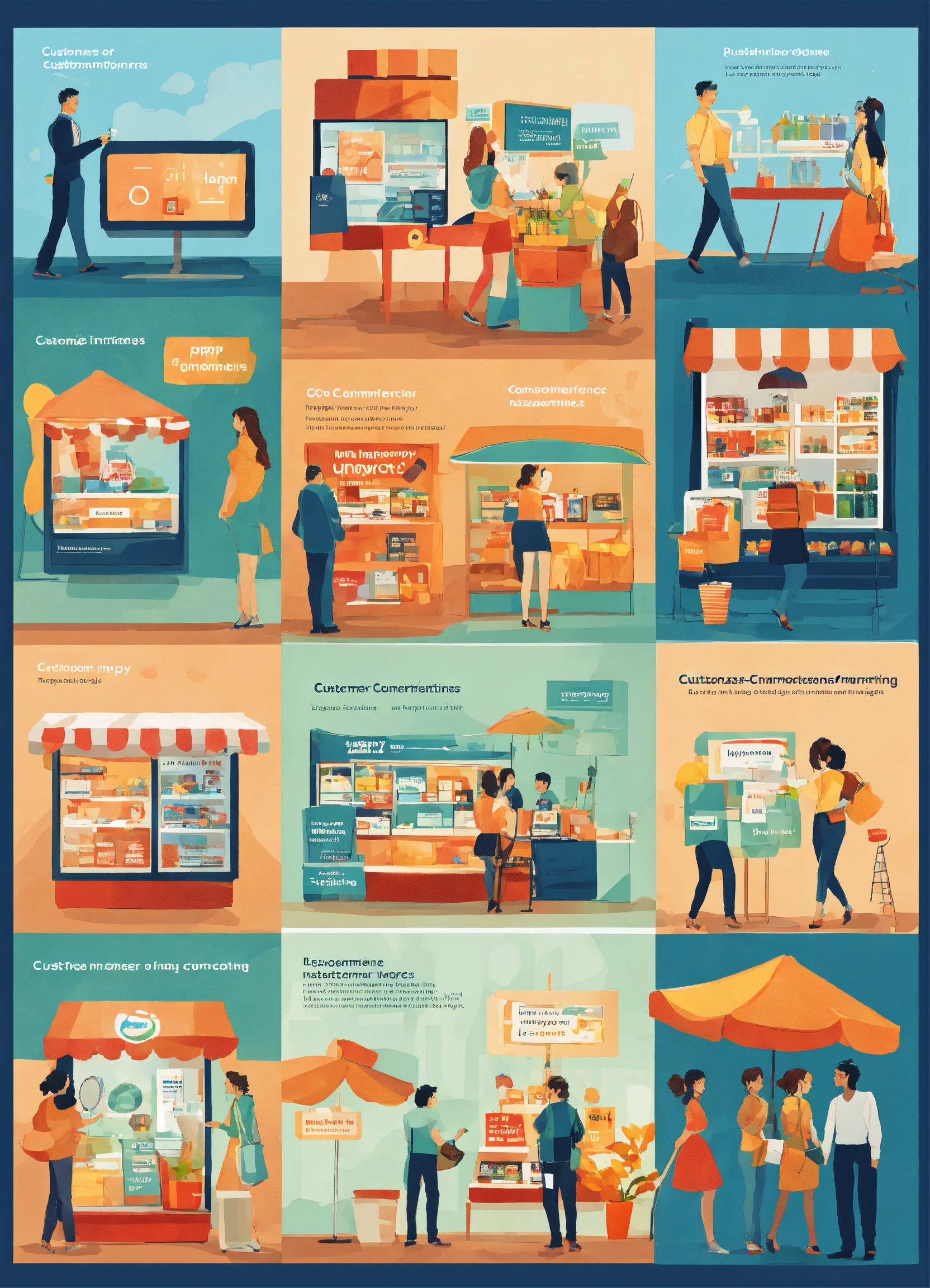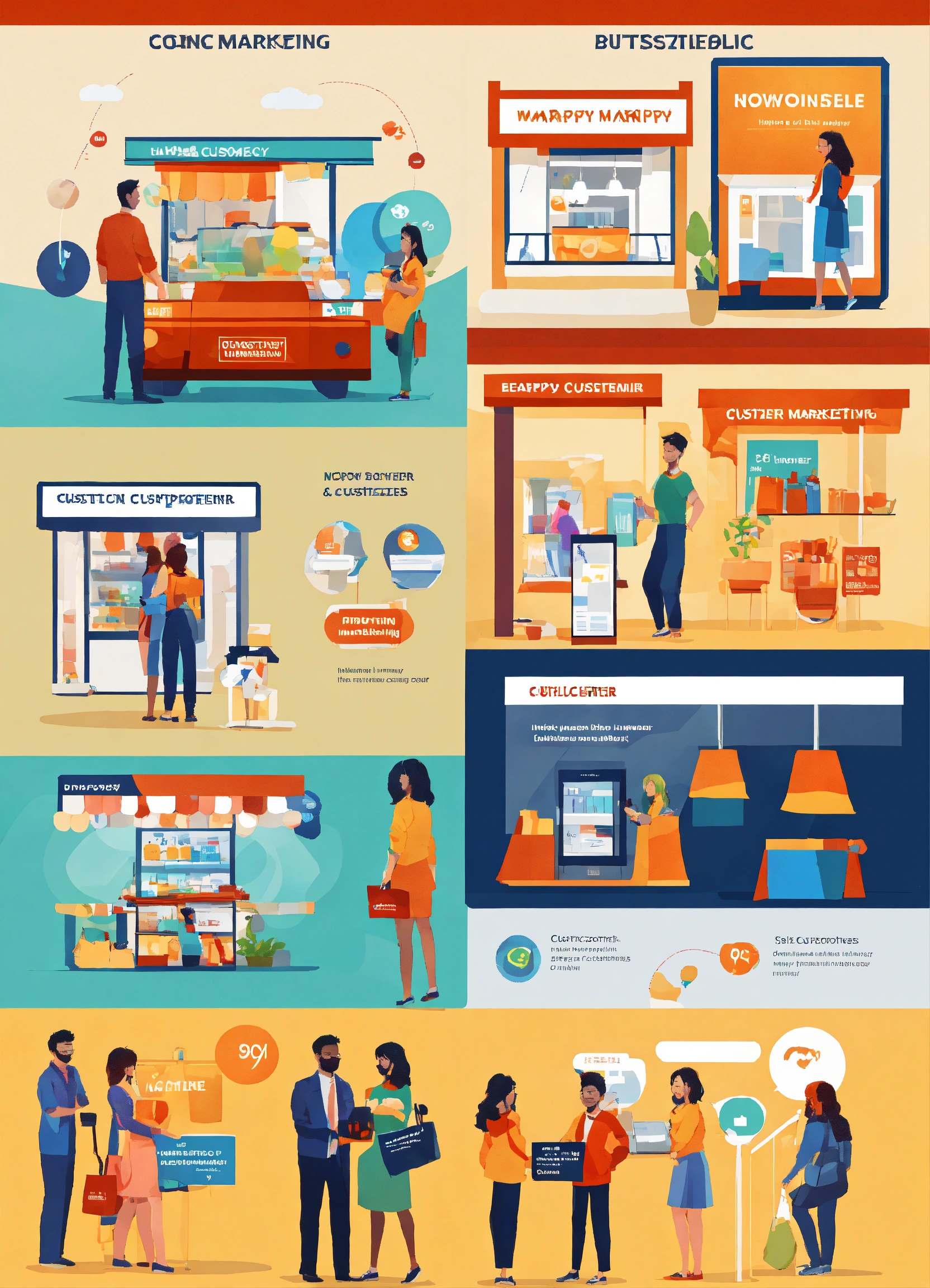 Design an image illustrating the concept of customer-centric marketing. showcase happy customers interacting with a brand in various ways, such as exploring personalized promotions. emphasize the importance of understanding and satisfying customer needs.