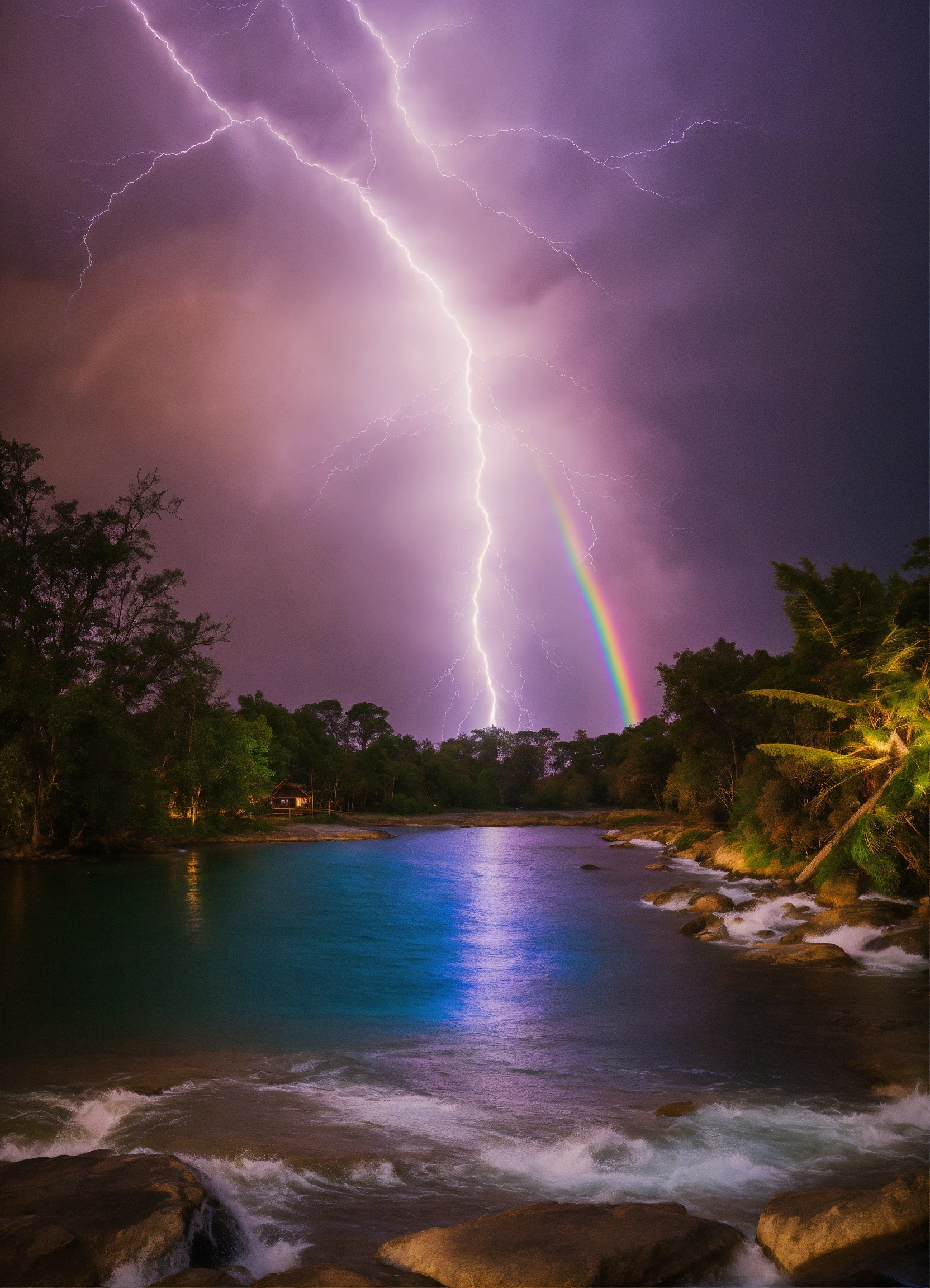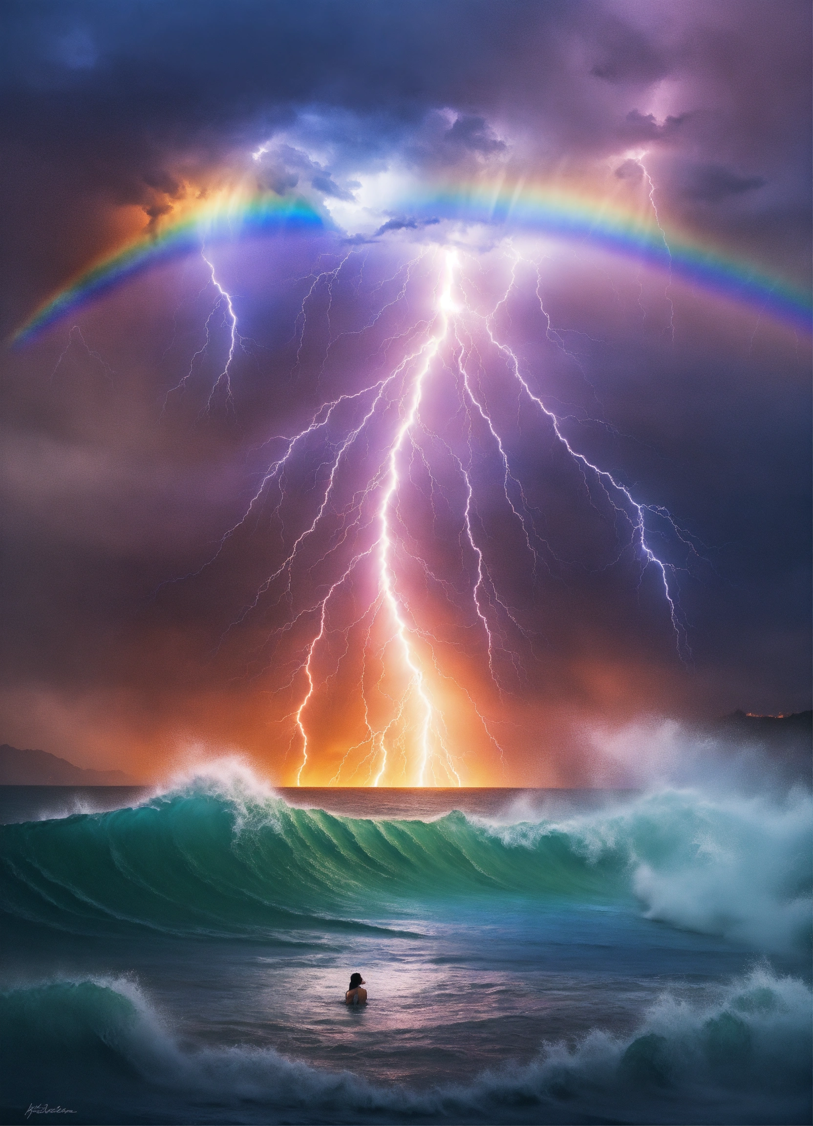Water god lightning rainbow