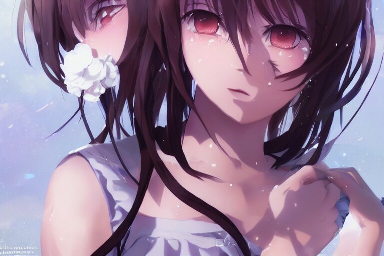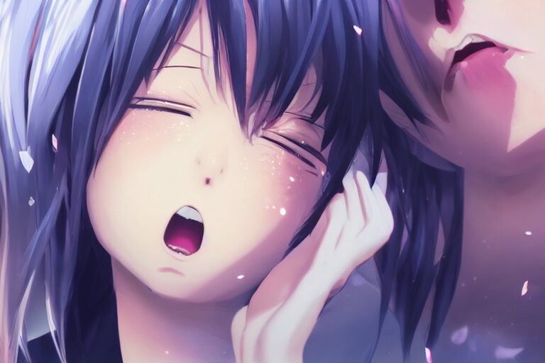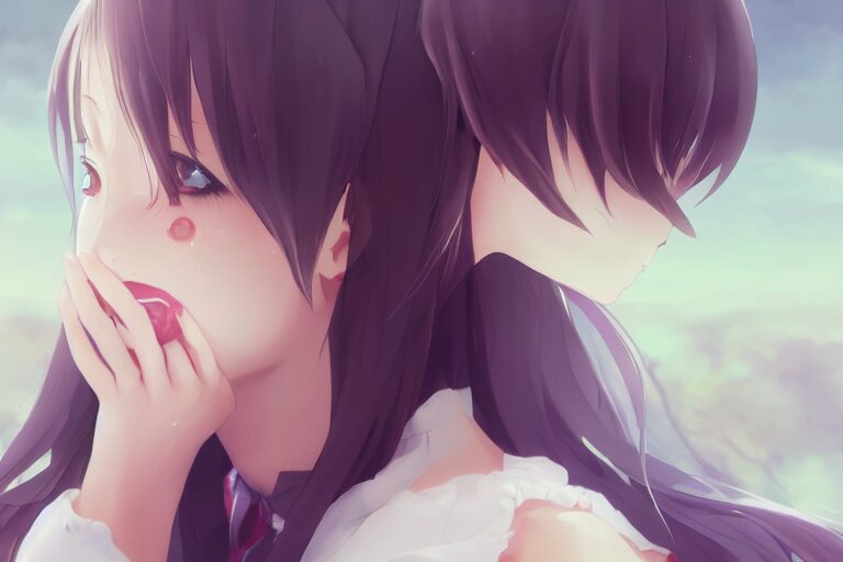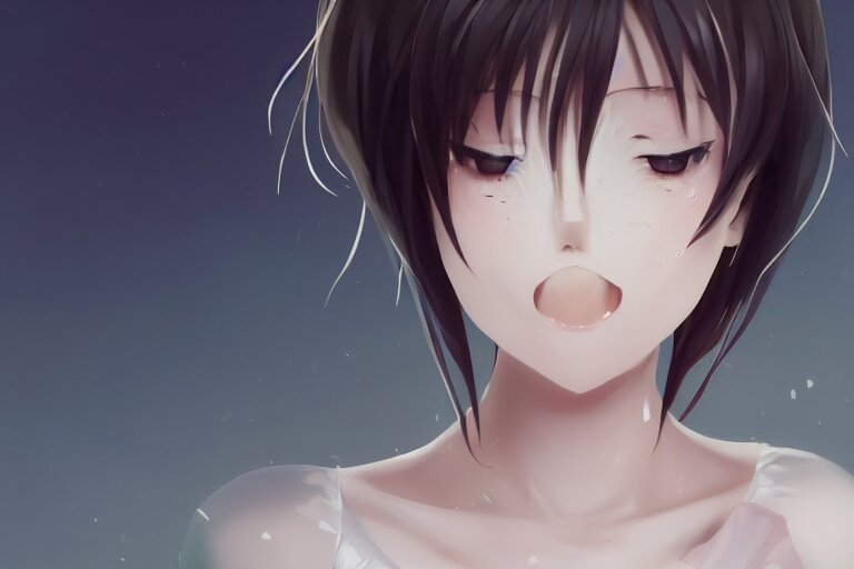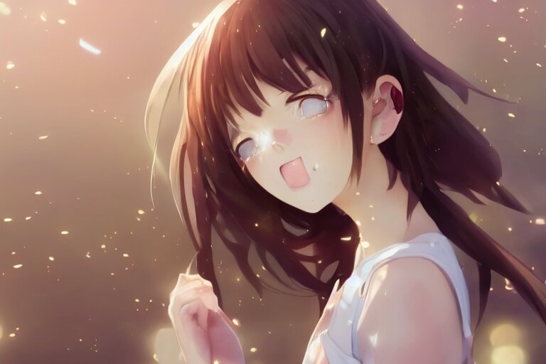 A very beautiful anime girl crying, mouth open, side profile view, tears streaming down eyes, full round face, cute top, white background, cinematic lighting, medium shot, mid-shot, highly detailed, trending on artstation, unreal engine 4k, cinematic wallpaper by stanley artgerm lau, wlop, rossdraws, james jean, andrei riabovitchev, marc simonetti, and sakimichan