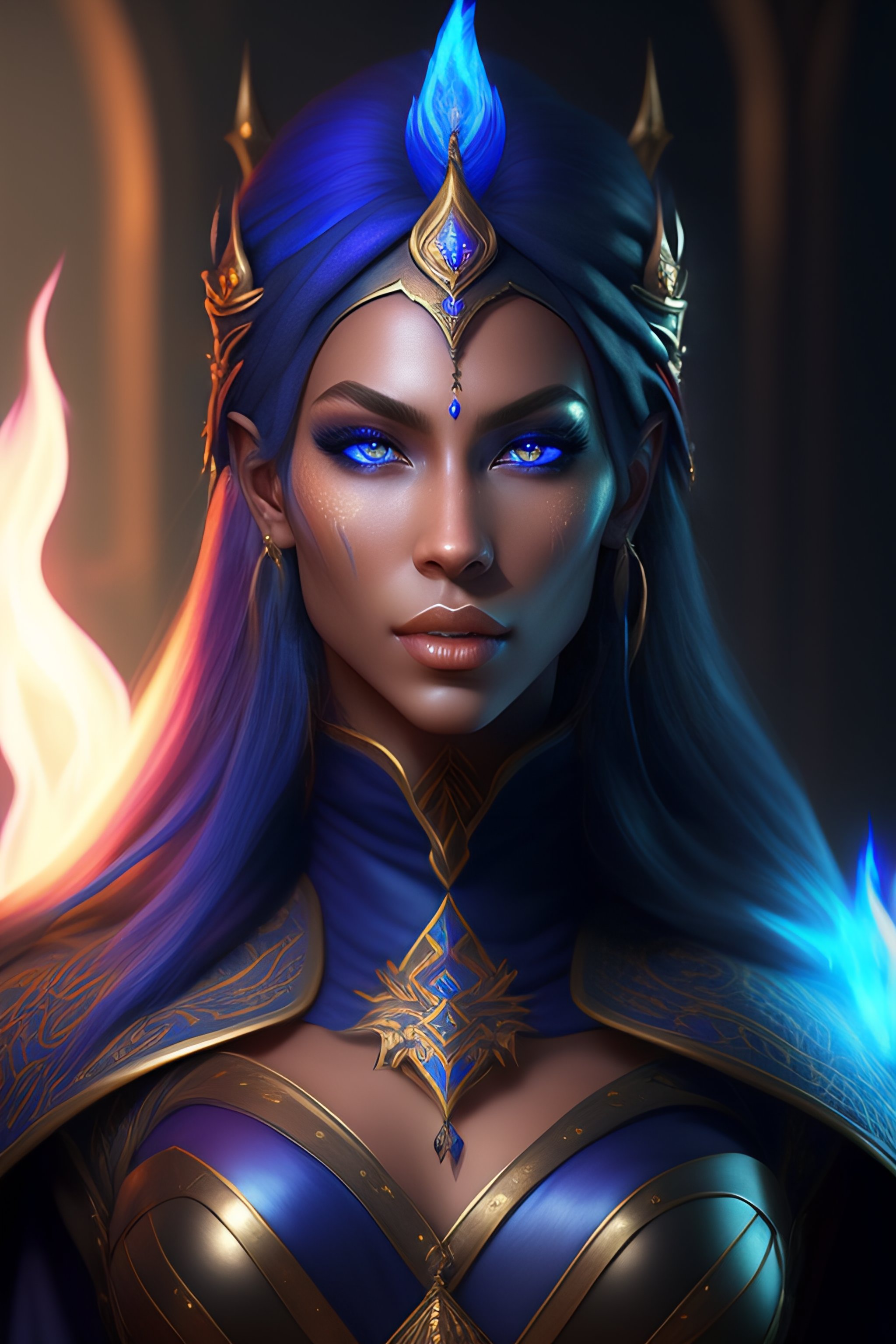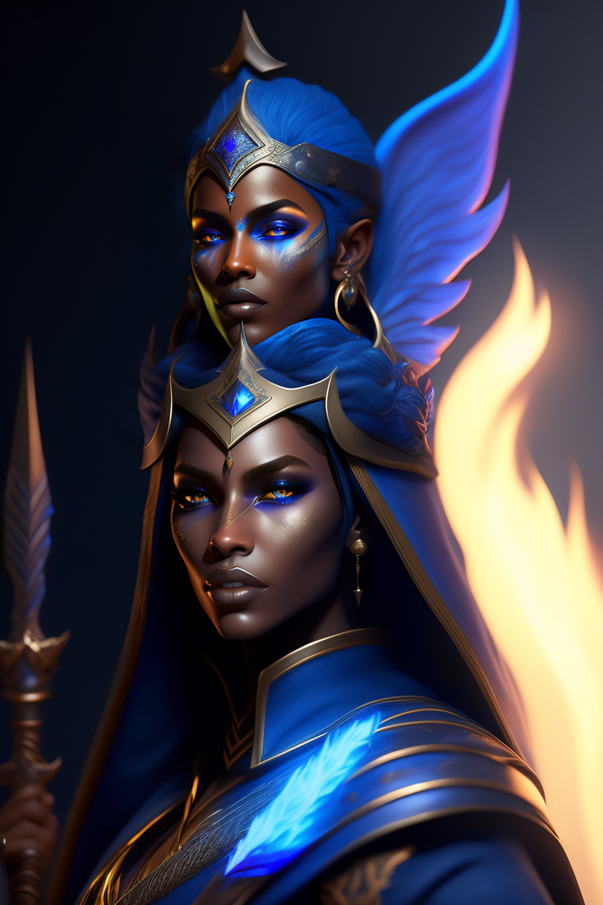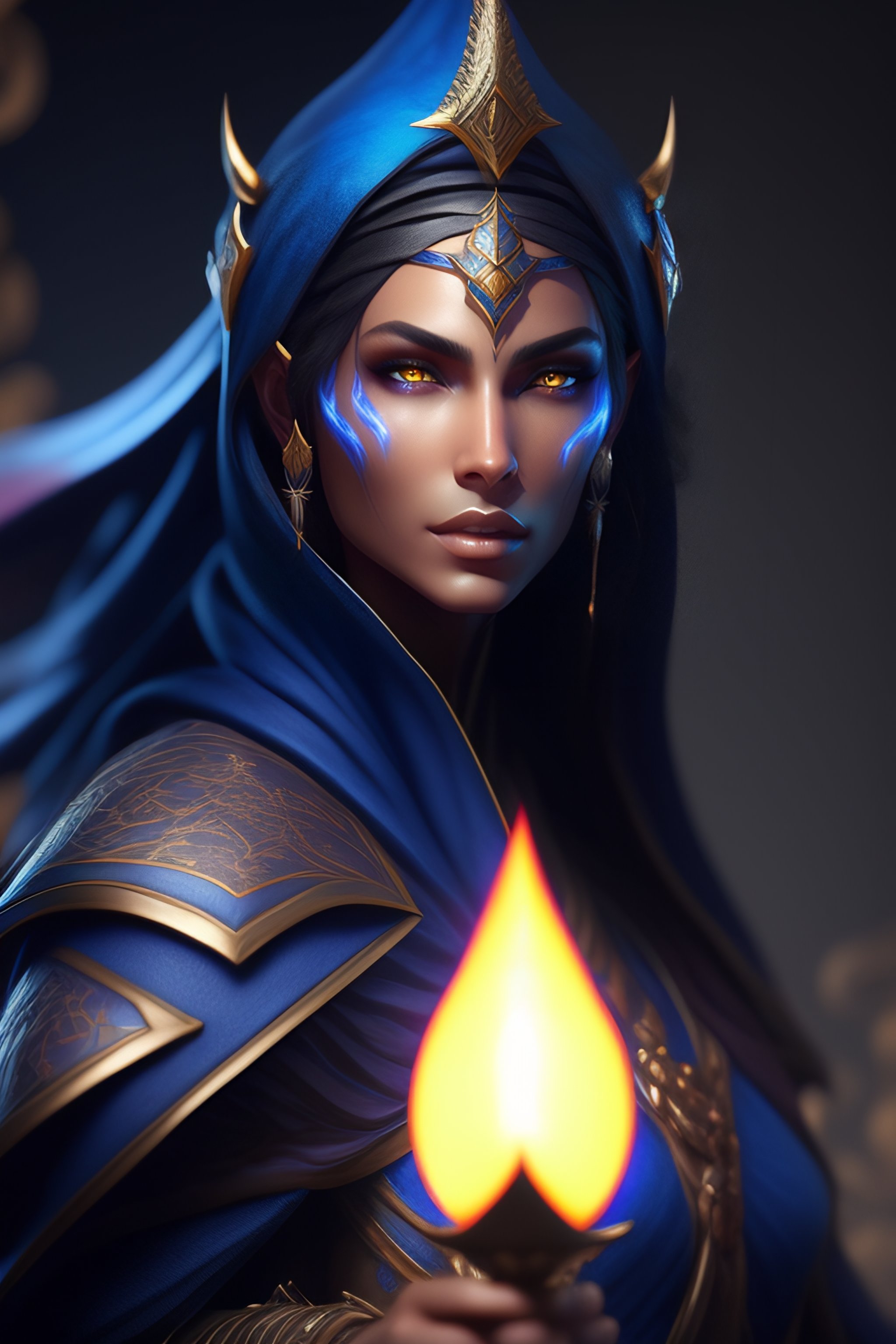 Legendary dark elf wizard with blue flame staff, highly detailed, d & d, fantasy, highly detailed, digital painting, trending on artstation, concept art, sharp focus, illustration, global illumination, ray tracing, realistic shaded, art by artgerm and greg rutkowski and fuji choko and viktoria gavrilenko and hoang lap