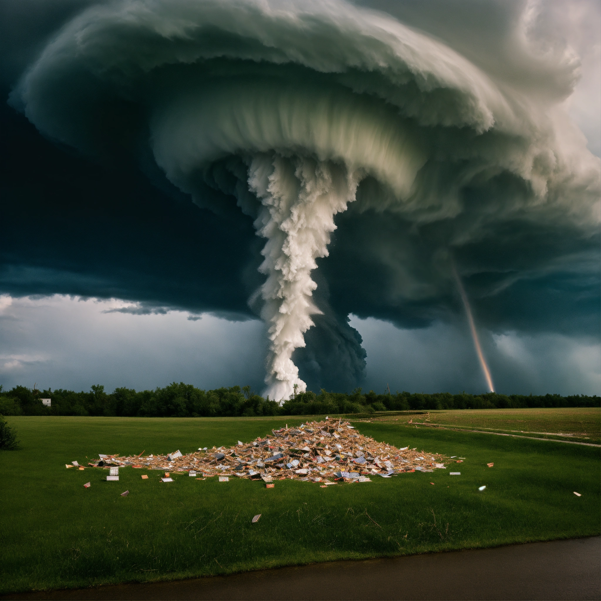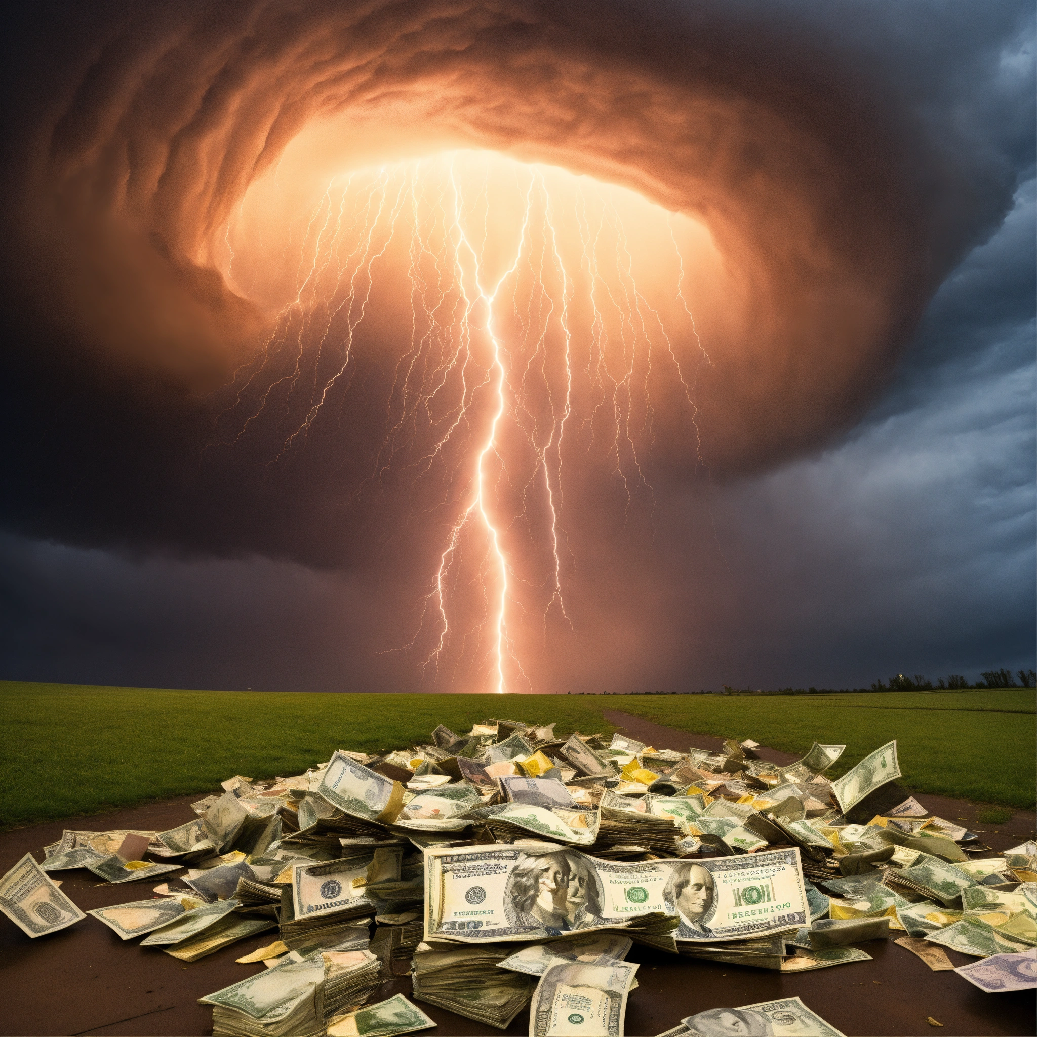 The money gets swept away in a tornado
