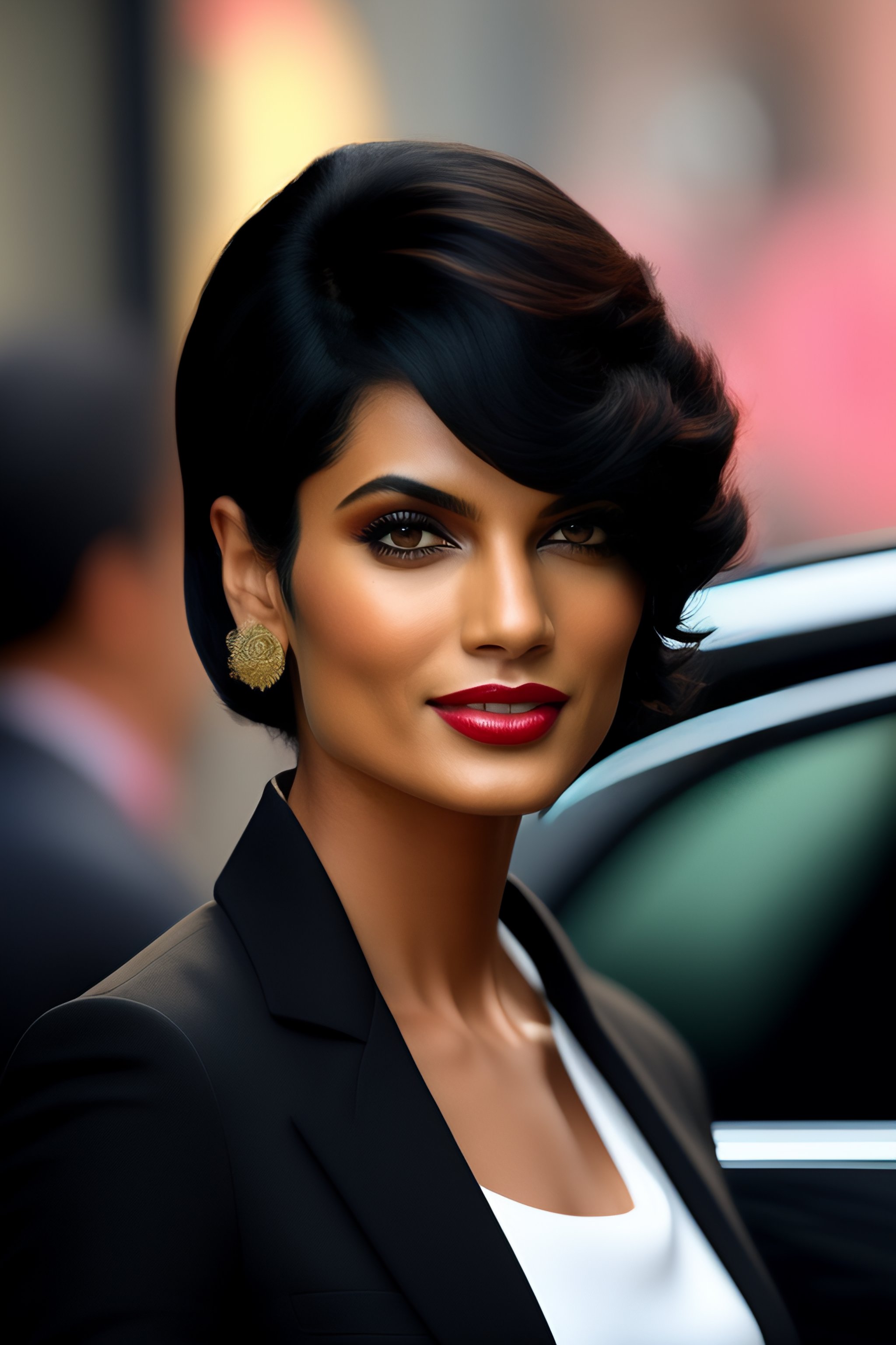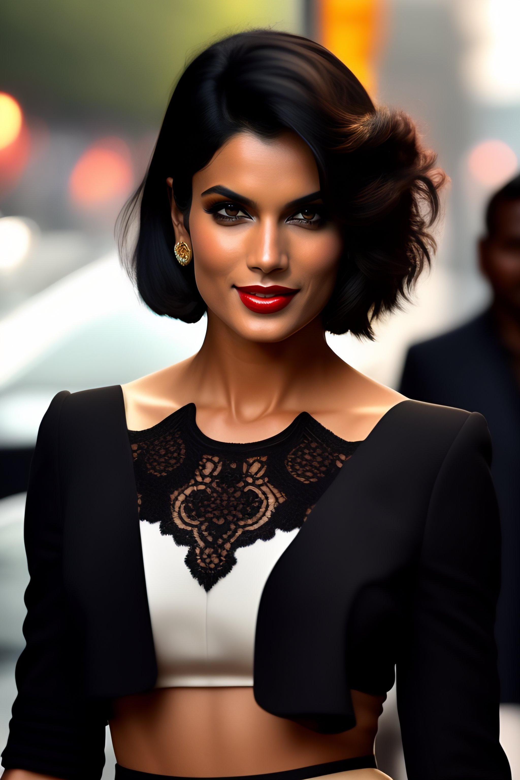 Anglo-indian woman in early 30s, short black hair, exquisite, like taylor swift, dressed in black shirt on the street