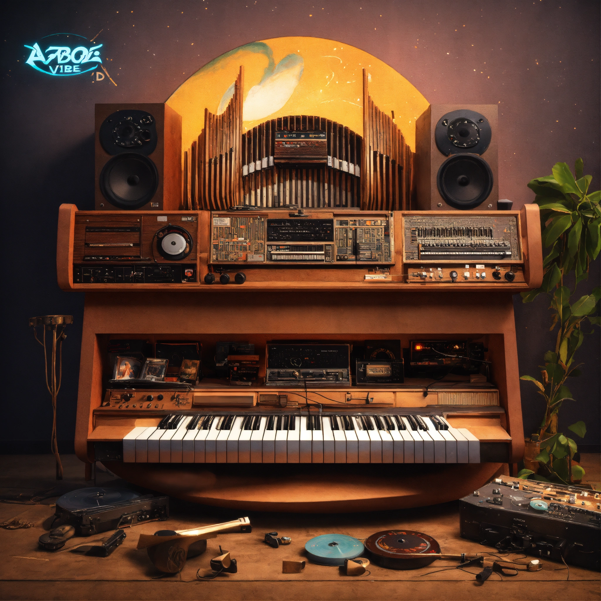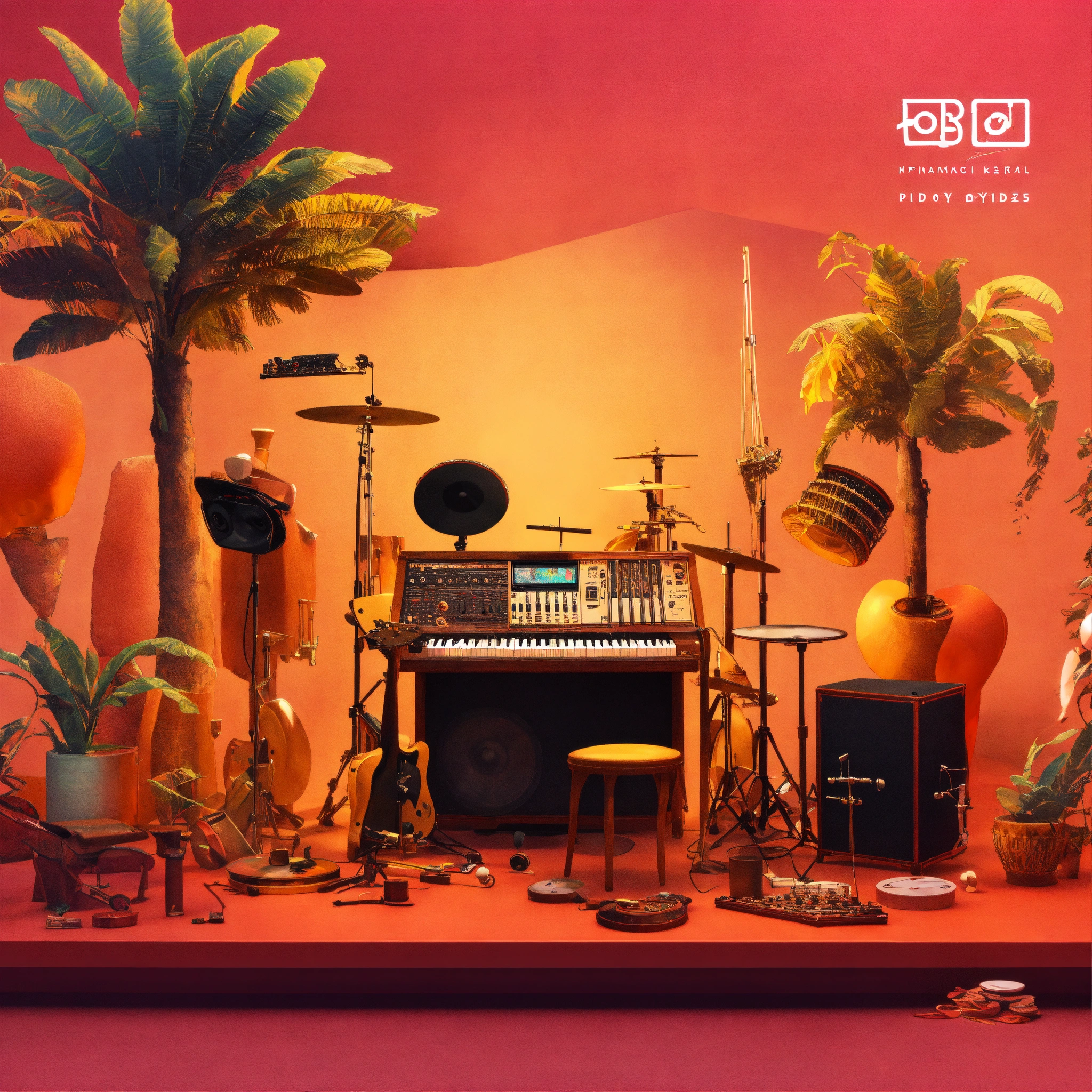 Album artwork, 3d, full hd, logo, figures, painting, 4d, poster design, musical instruments, boom bap vibes, keyboard, organ, percussions, bass, drums, vinil, old school