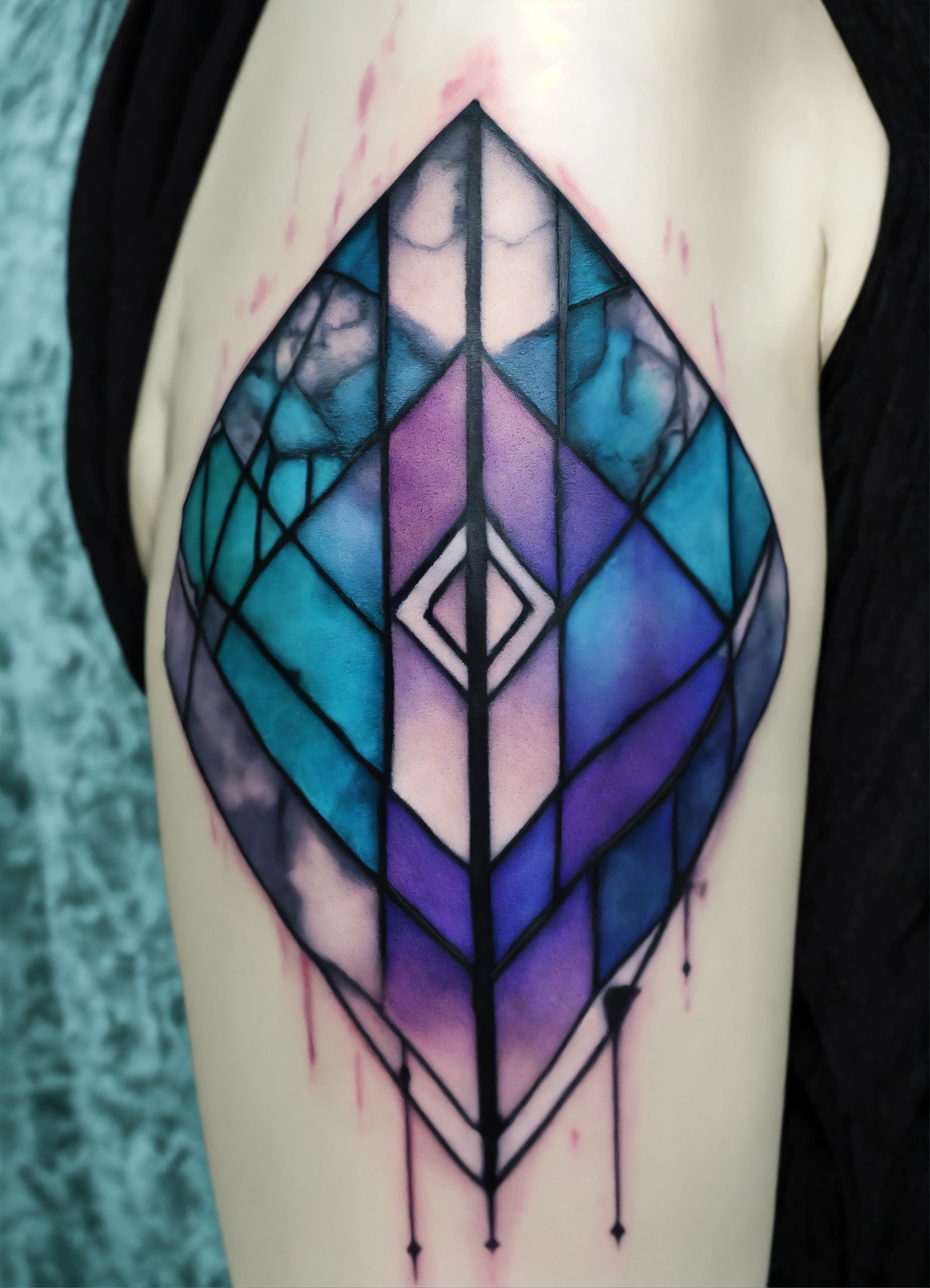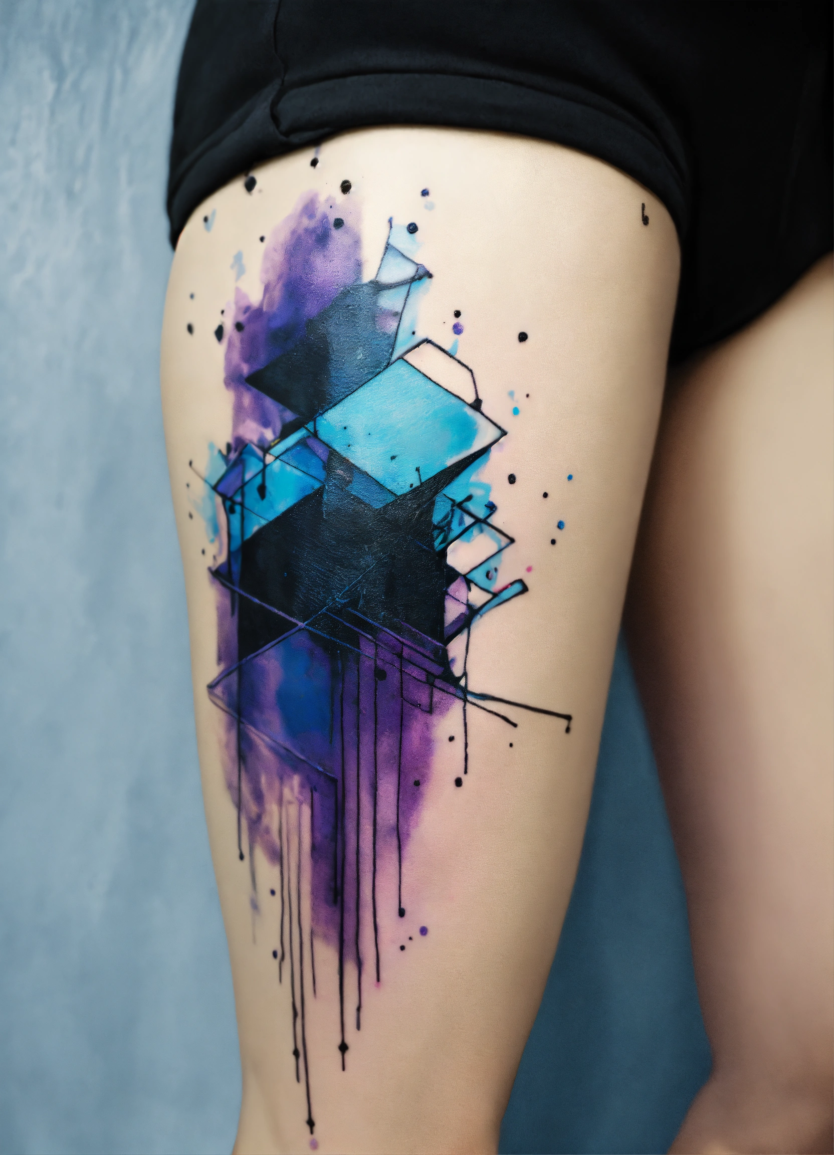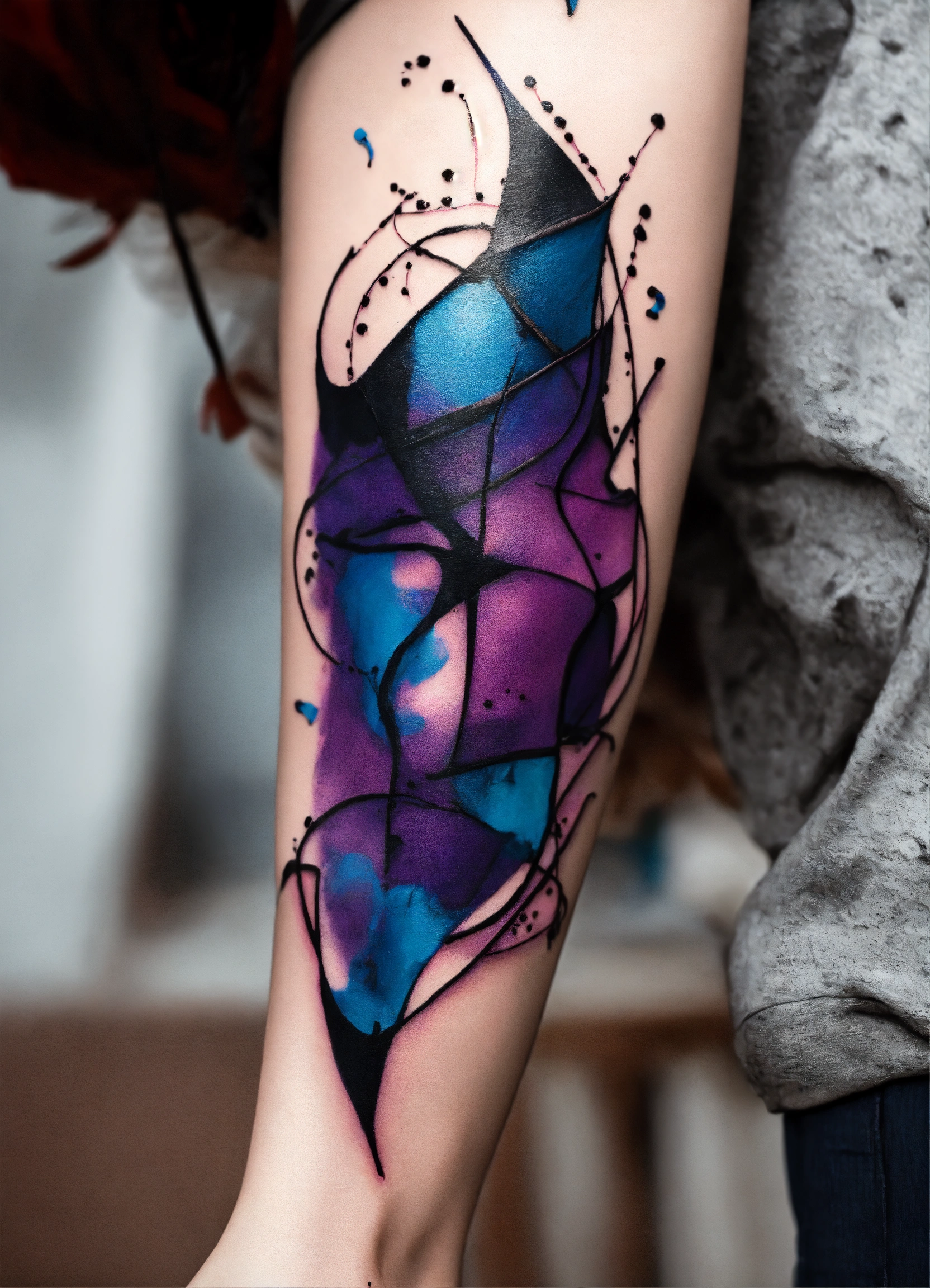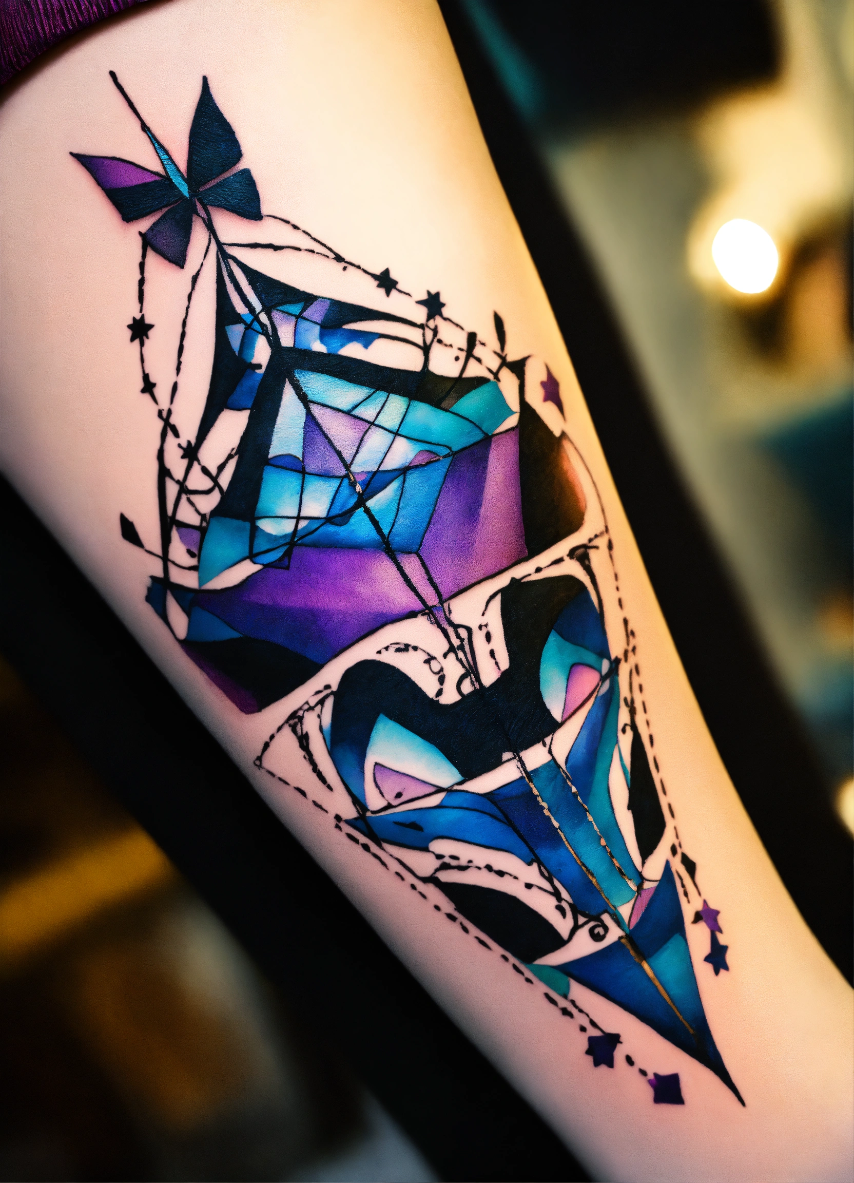 Smal abstract stitch tattoo withpurple blue and black