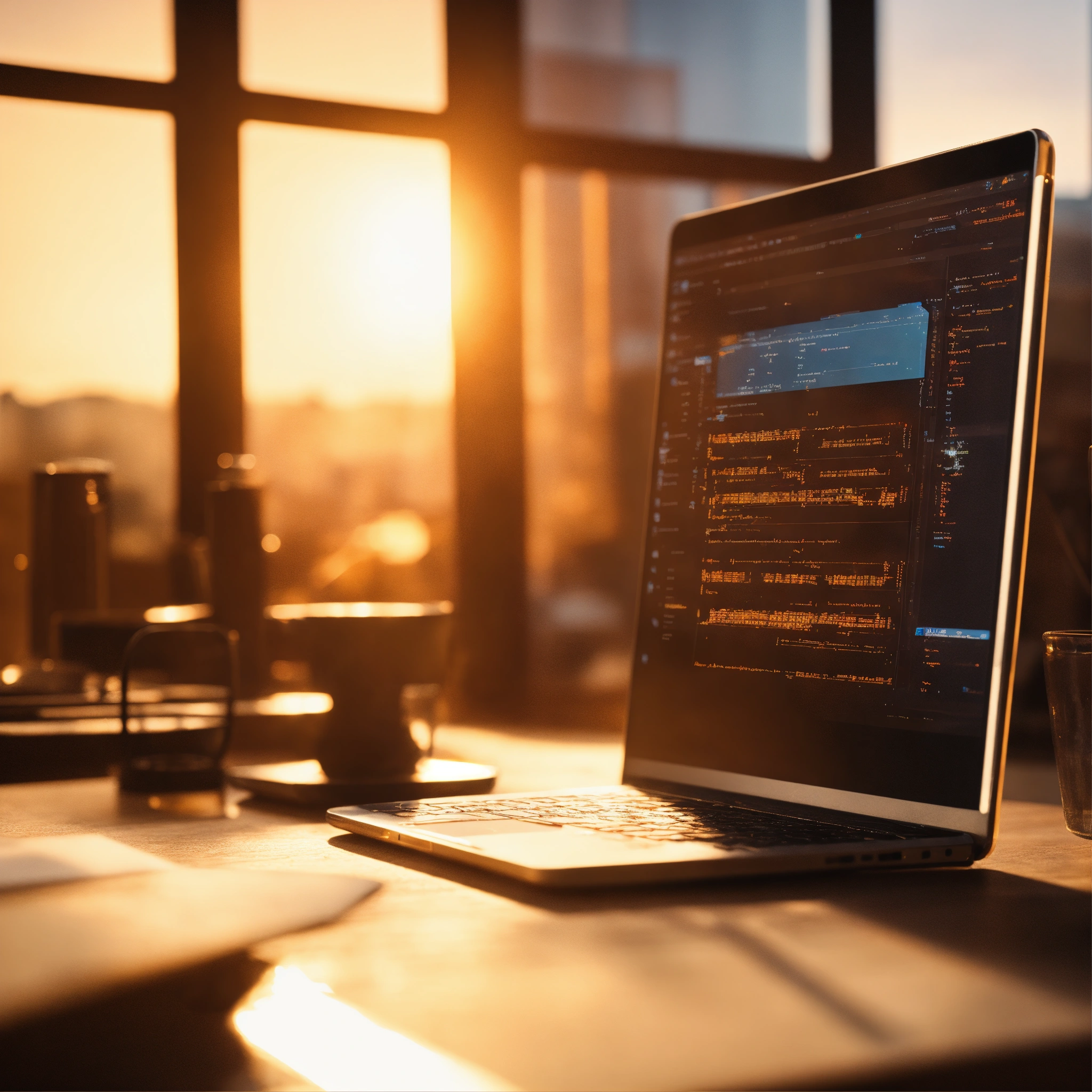 Ultra realistic в взphoto of a software development methodology lit with golden hour light