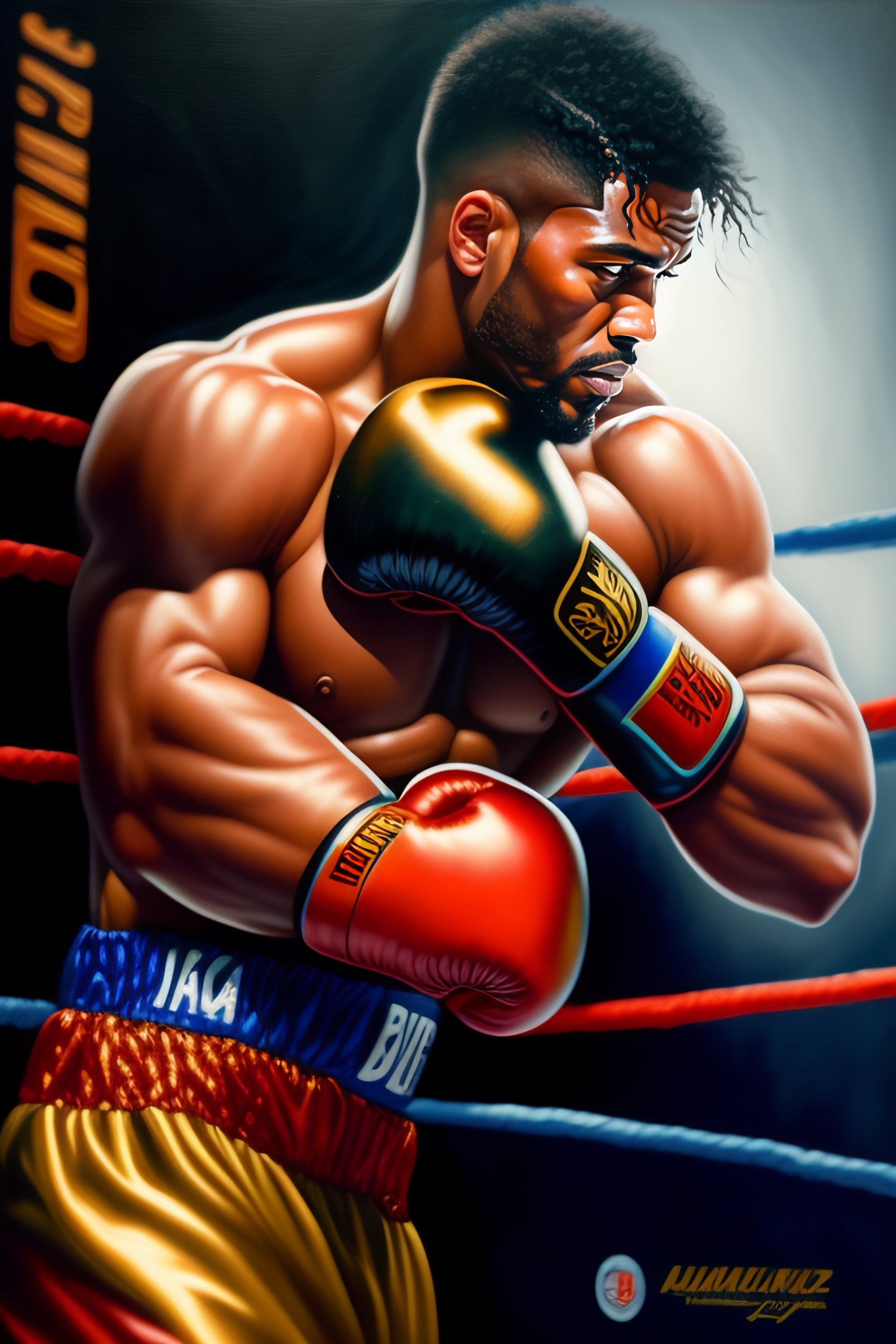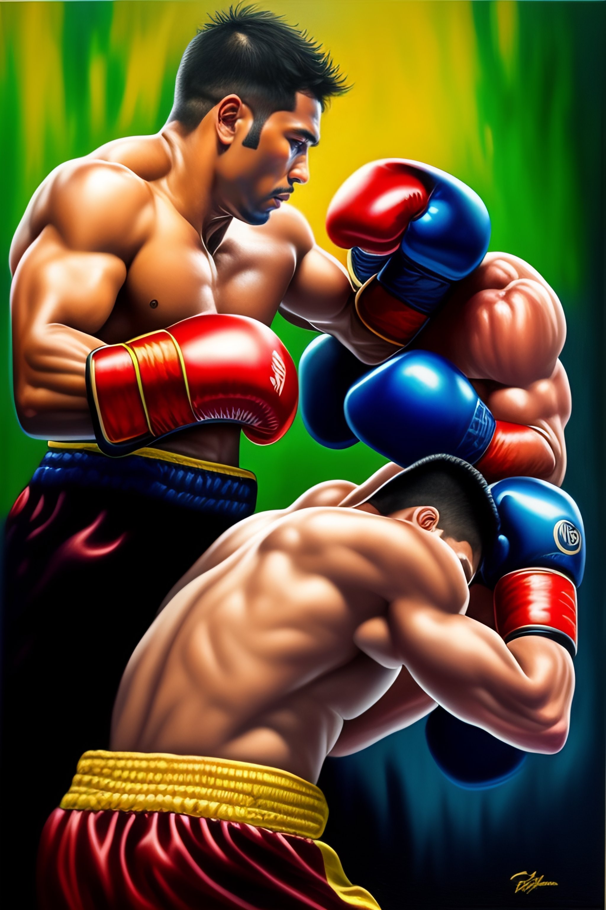 Oil painting boxe fighting