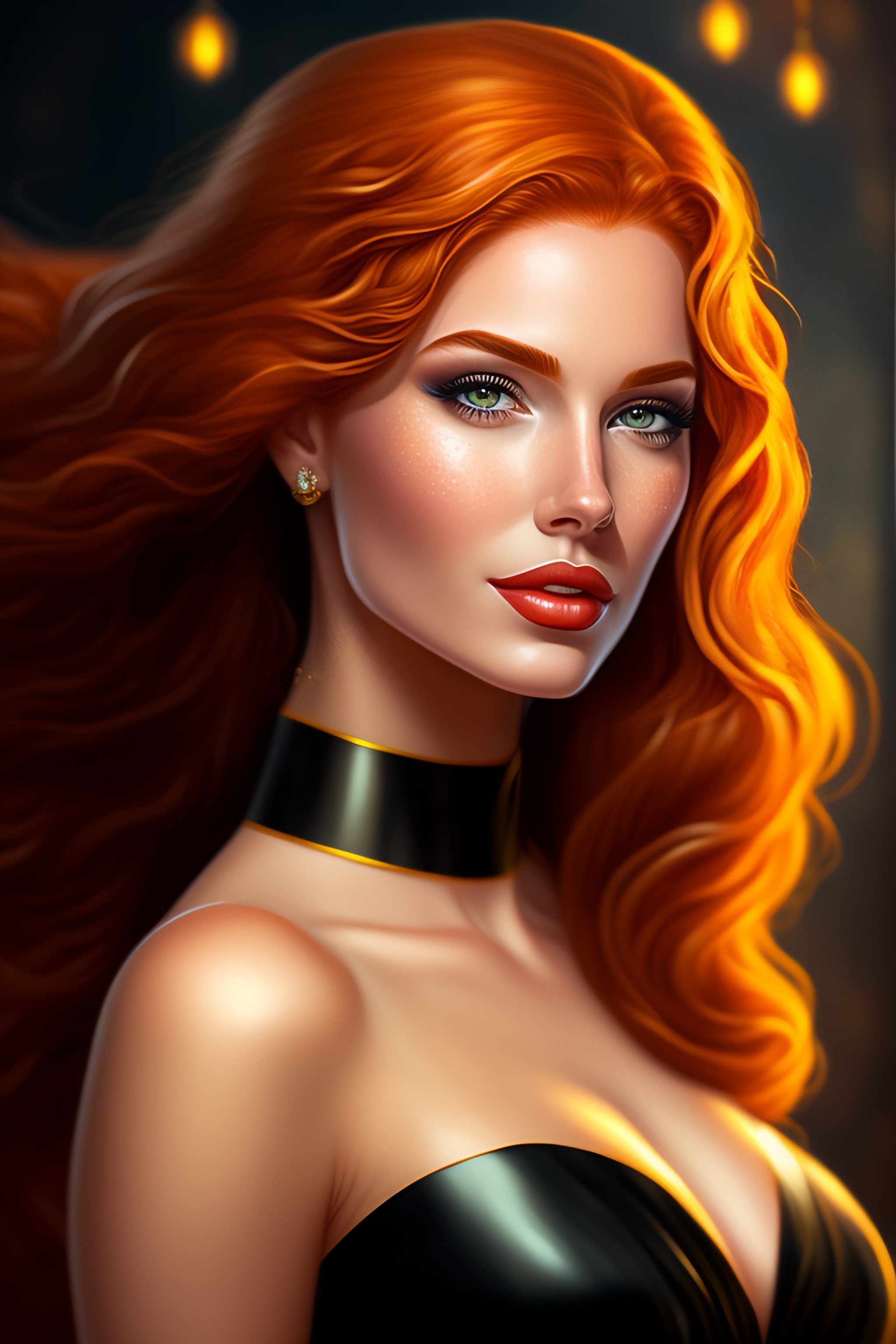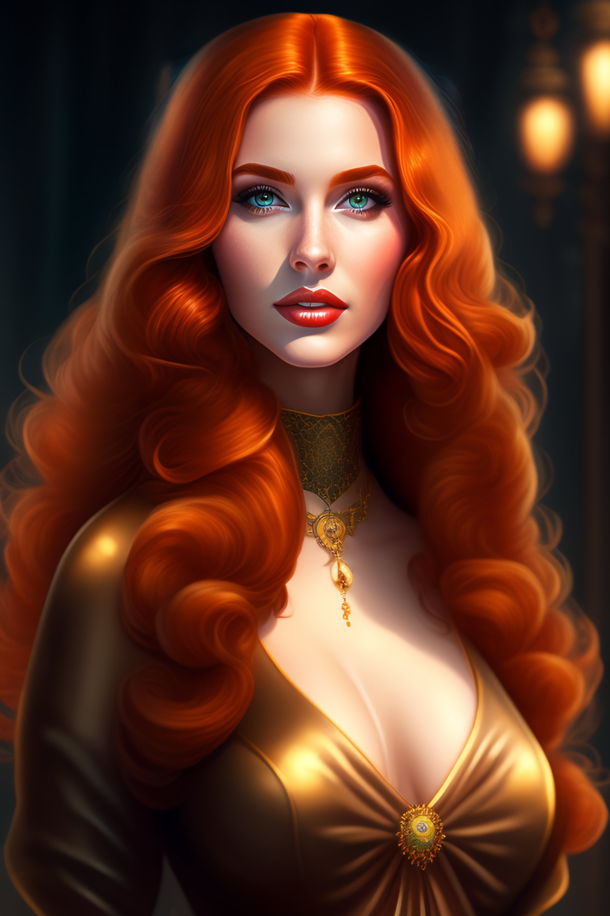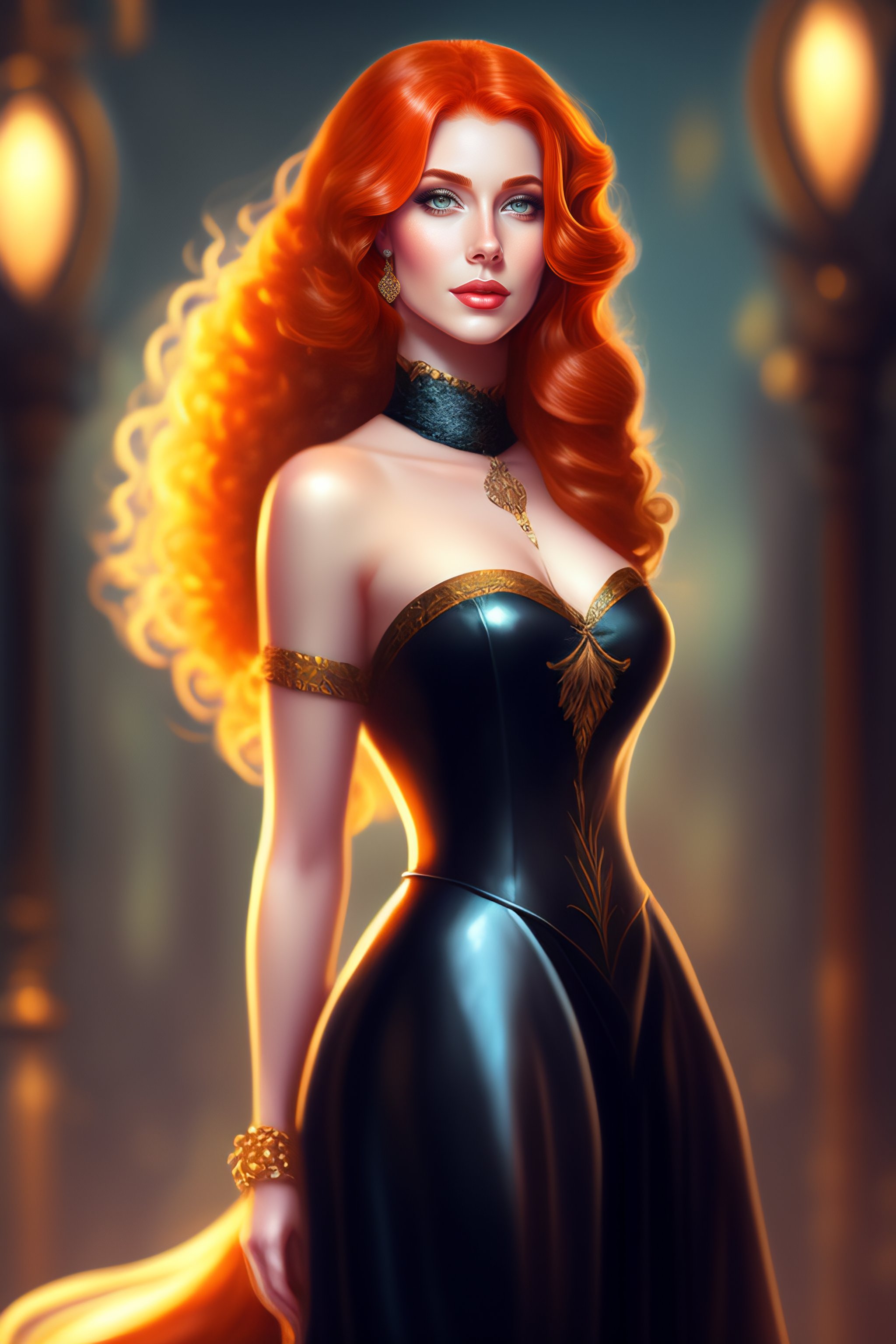 Ginger hair lady in dress, pretty face, full body portrait, noir style, fantasy style, ultra-detailed, art, digital art, 4k, light background style