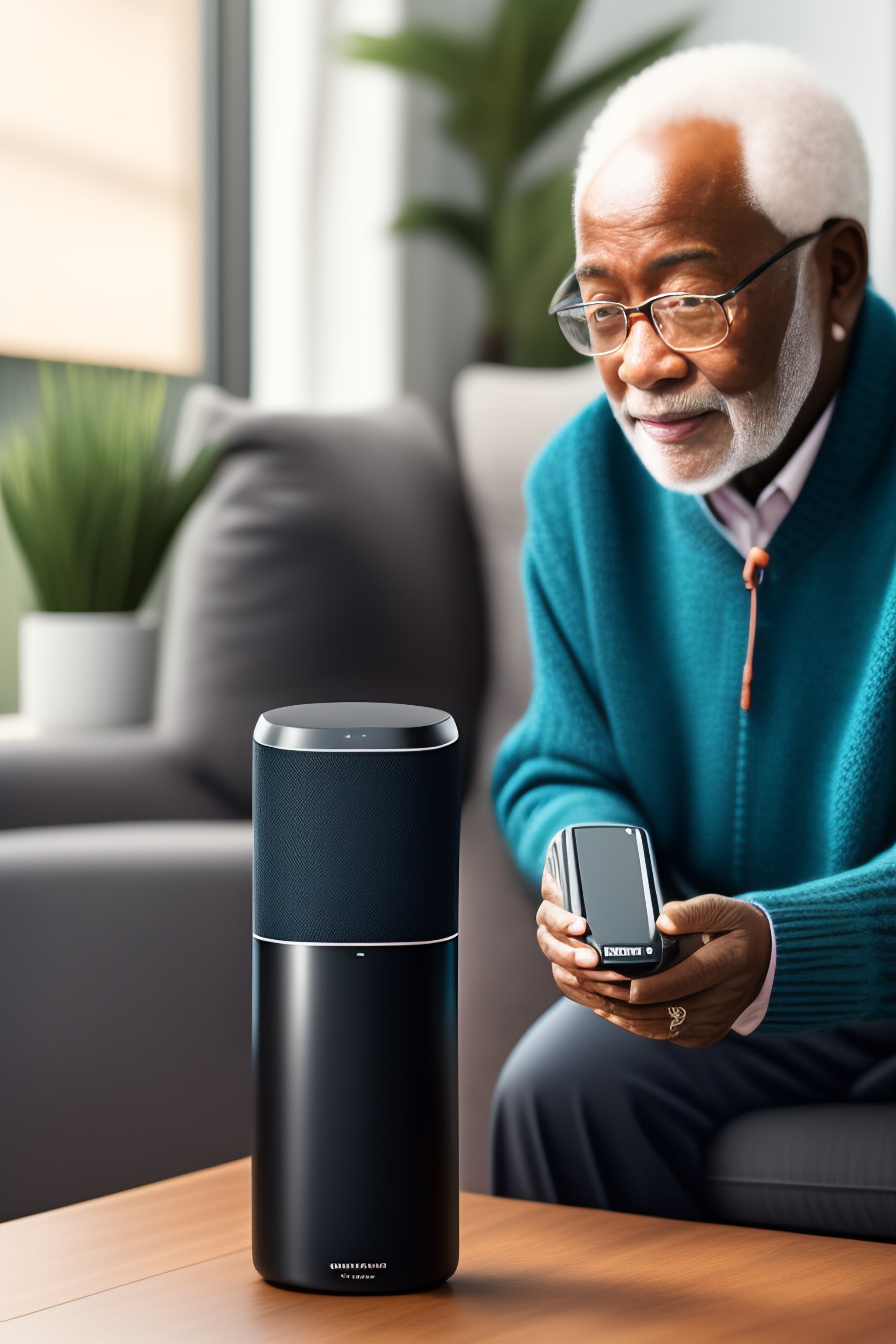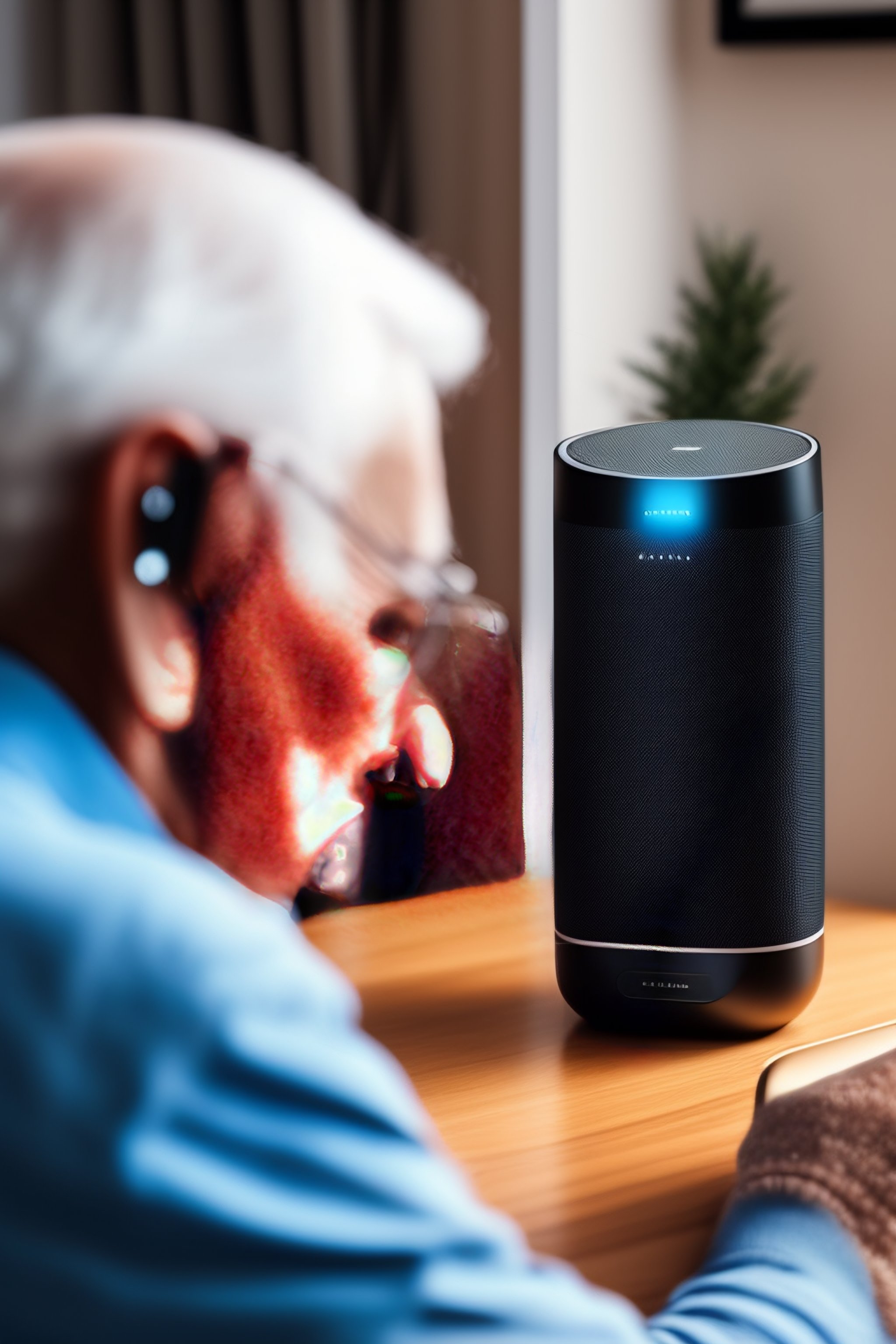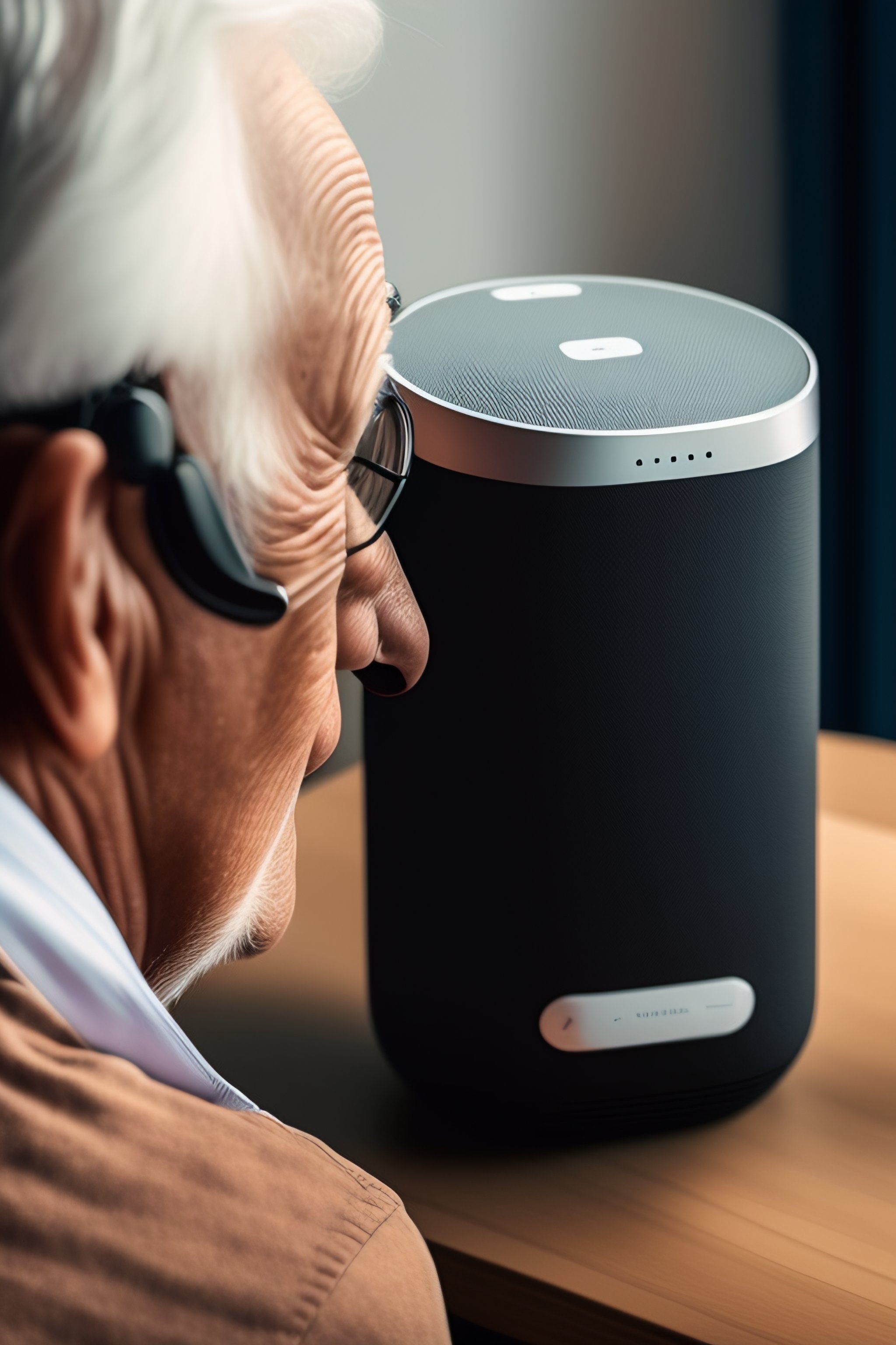 An old person with disability using a smart speaker