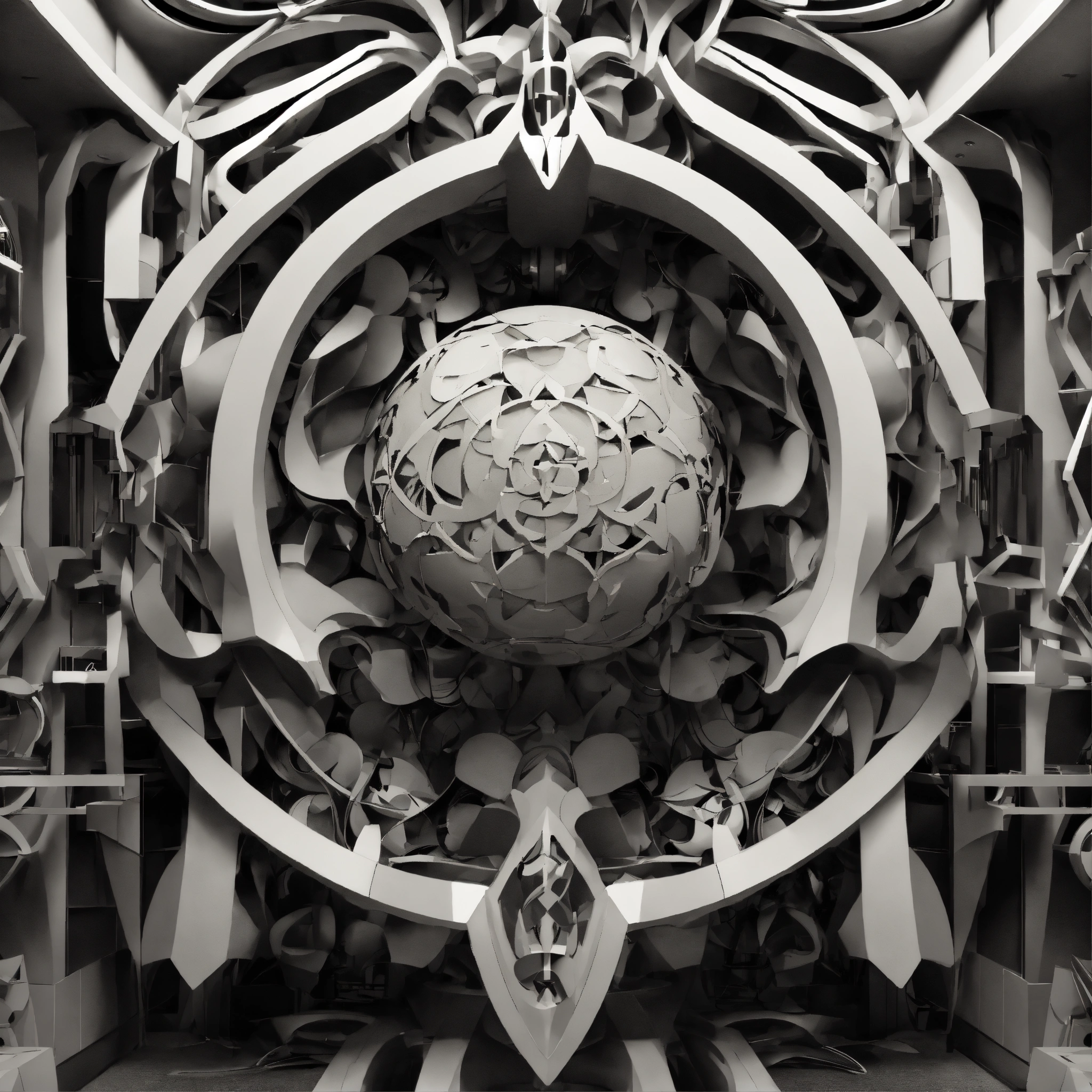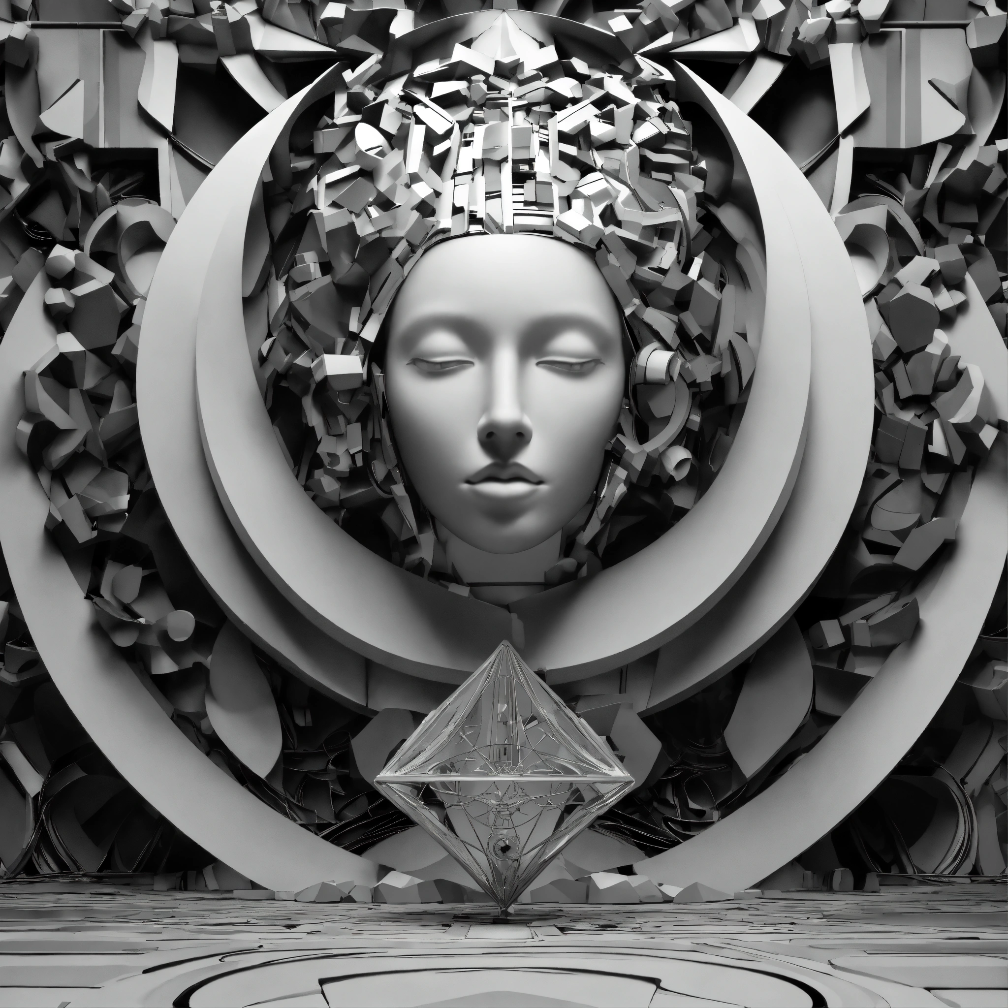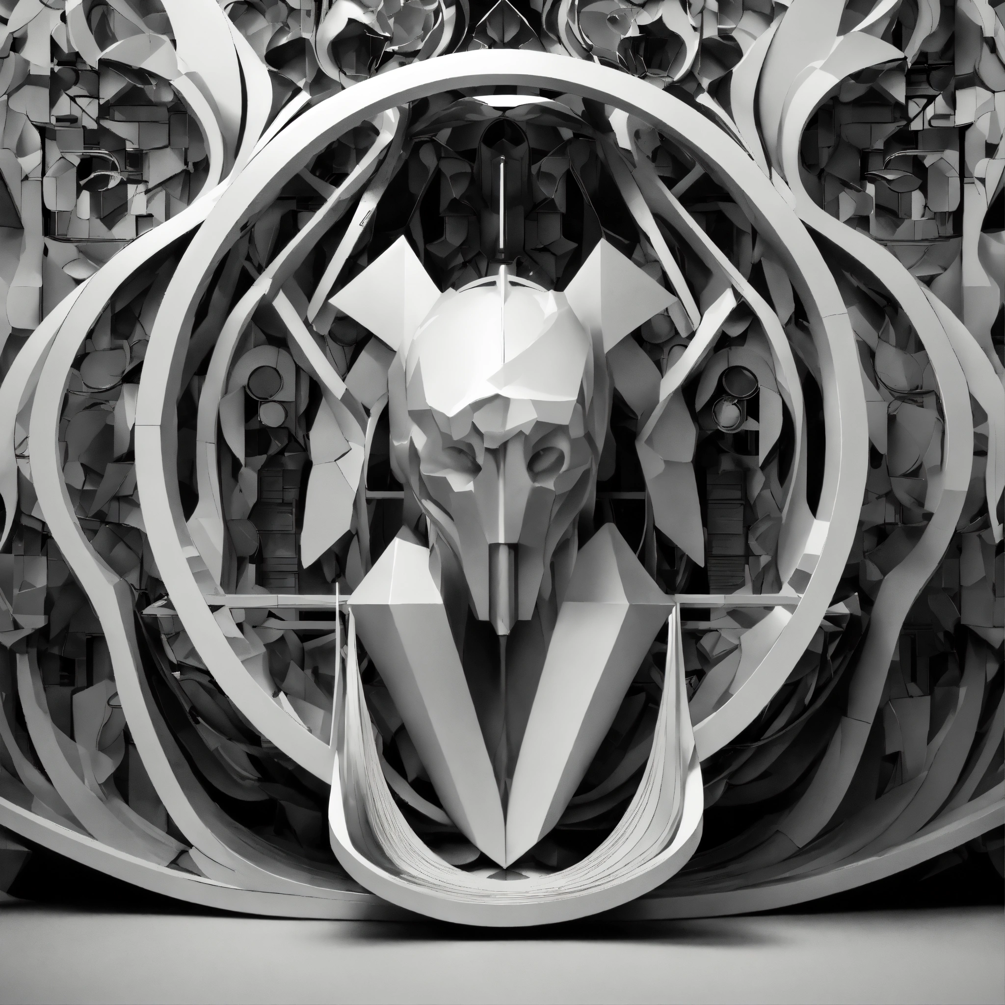 Album artwork, 3d, full hd, black, white, abstract, logo, figures, poetry in sound, steel, dualism, forms, art nouveau, cubism