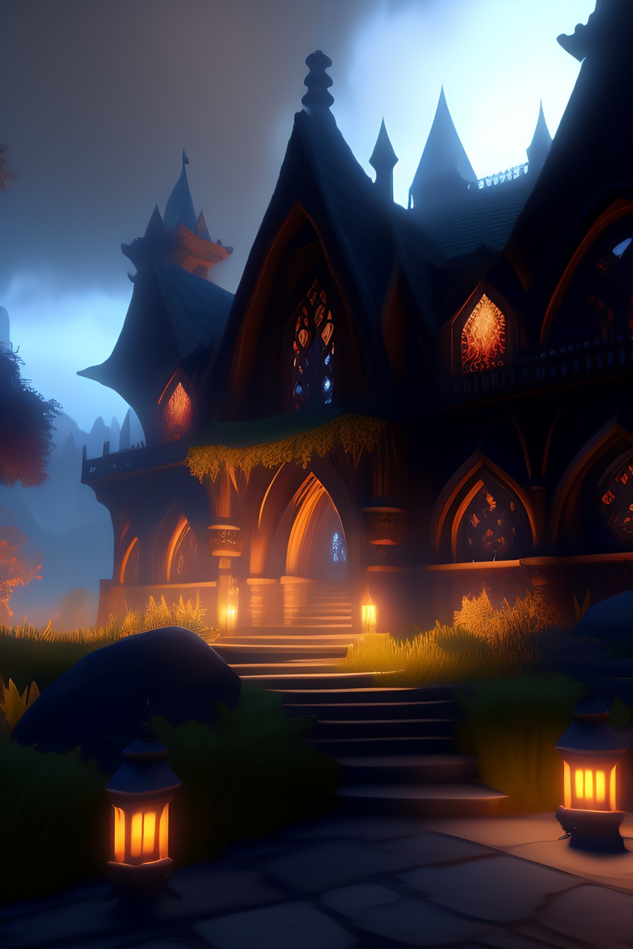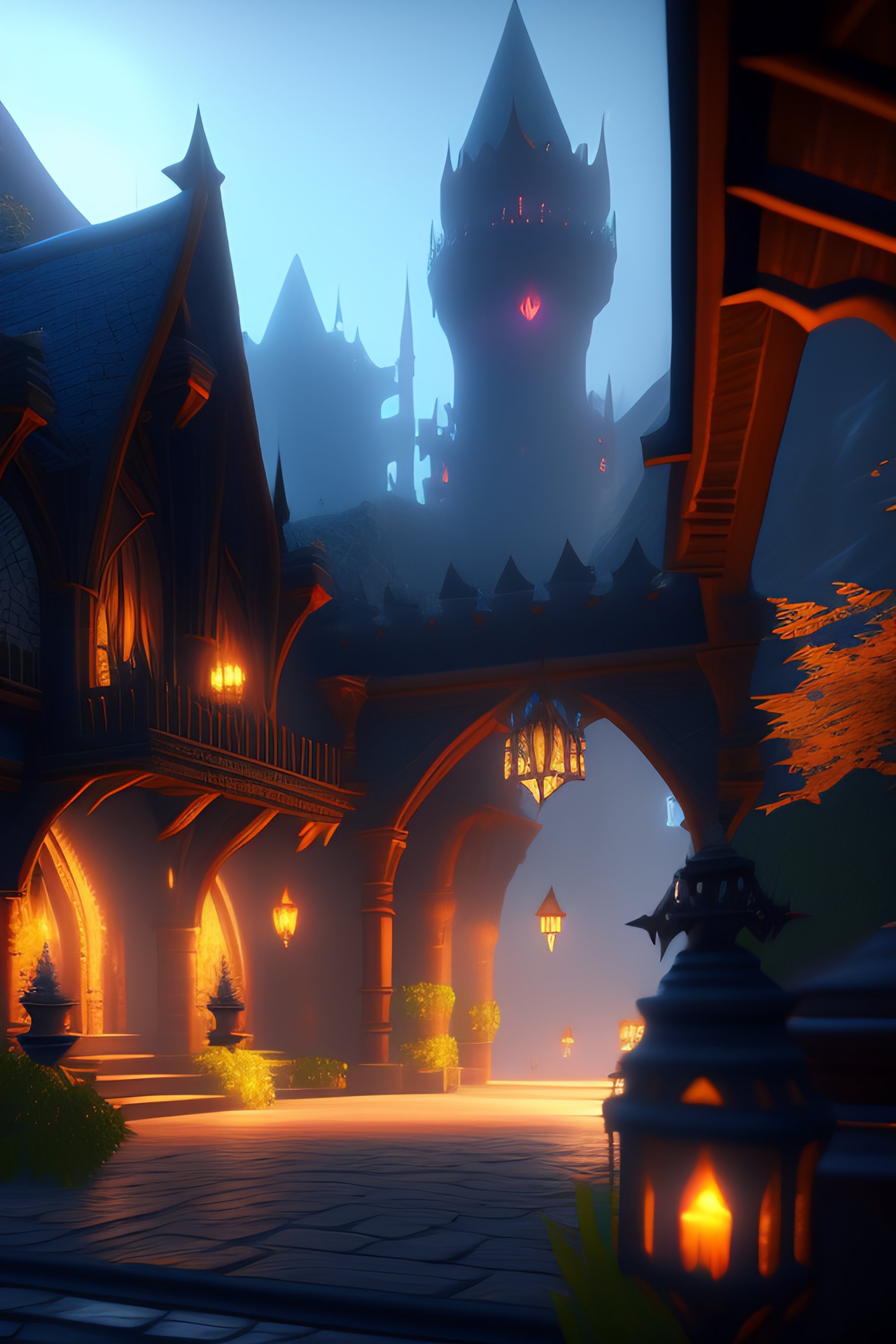 Environment castle nathria in world of warcraft ::gothic style fully developed castle :cinematic, raining, night time, detailed, epic, concept art, matte painting, shafts of lighting, mist, photorealistic, concept art, volumetric light, cinematic epic + rule of thirds, movie concept art, 8k, cinematic, trending on artstation, movie concept art, cinematic composition, ultra detailed, realistic, hyper realistic, volumetric lighting, 8k –ar 3:1