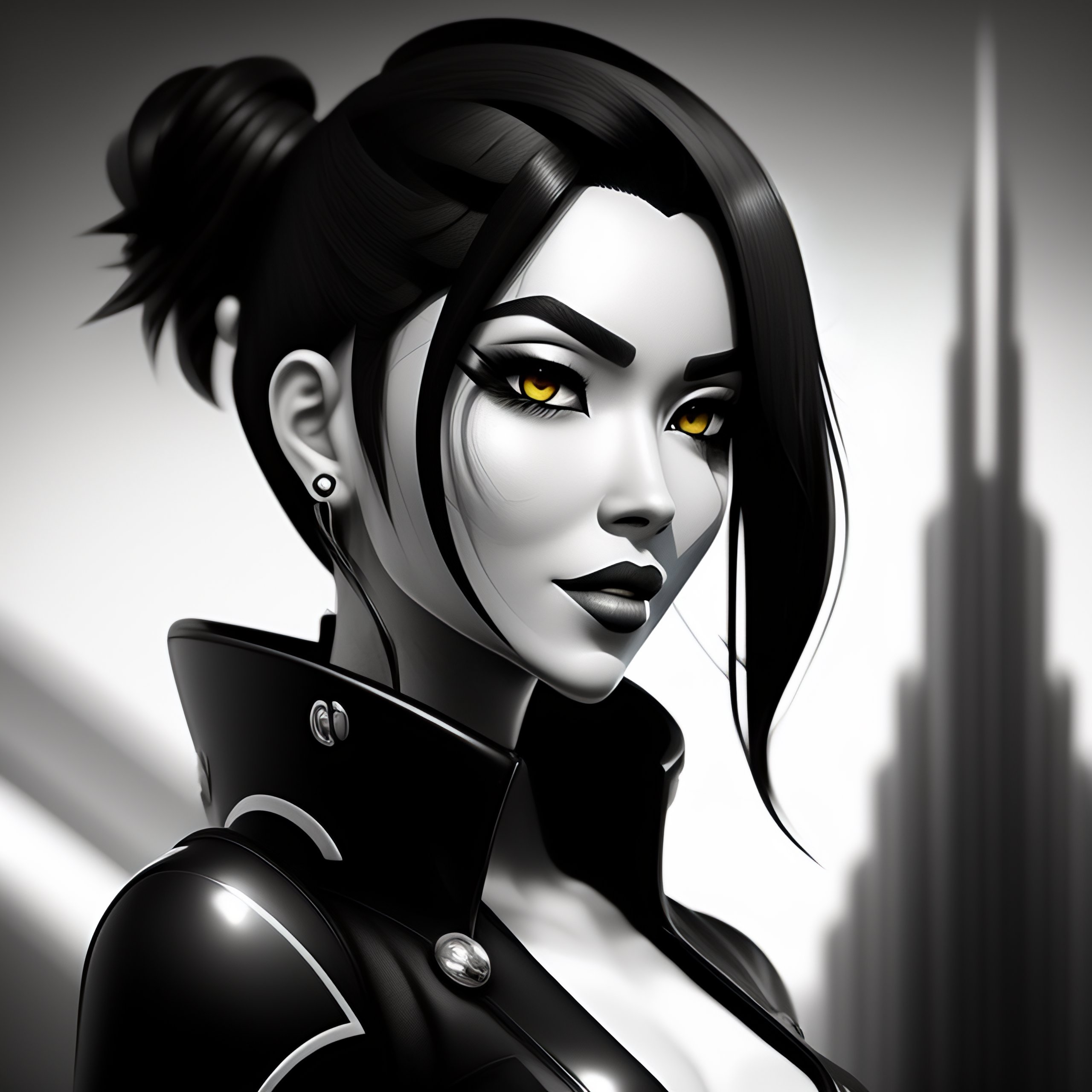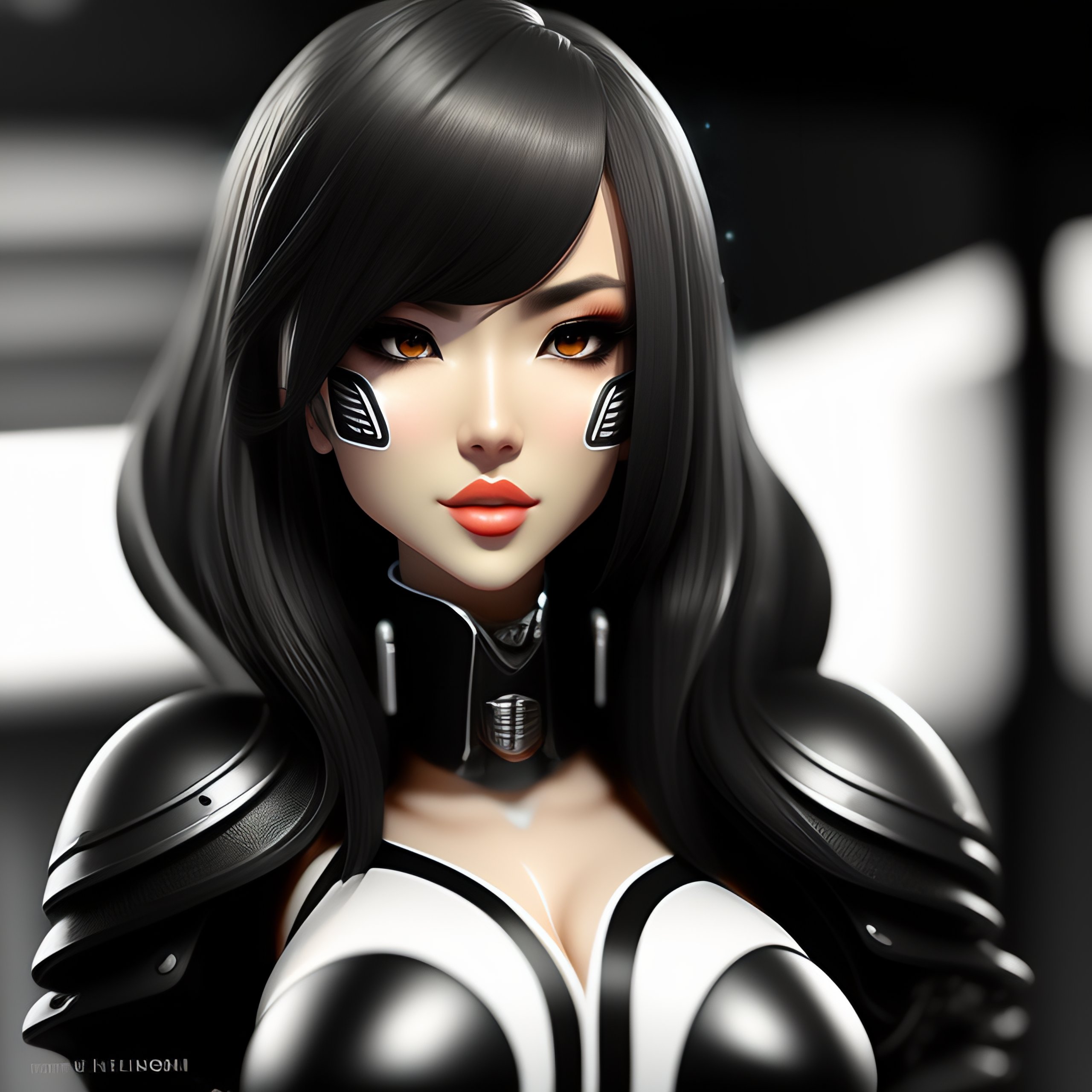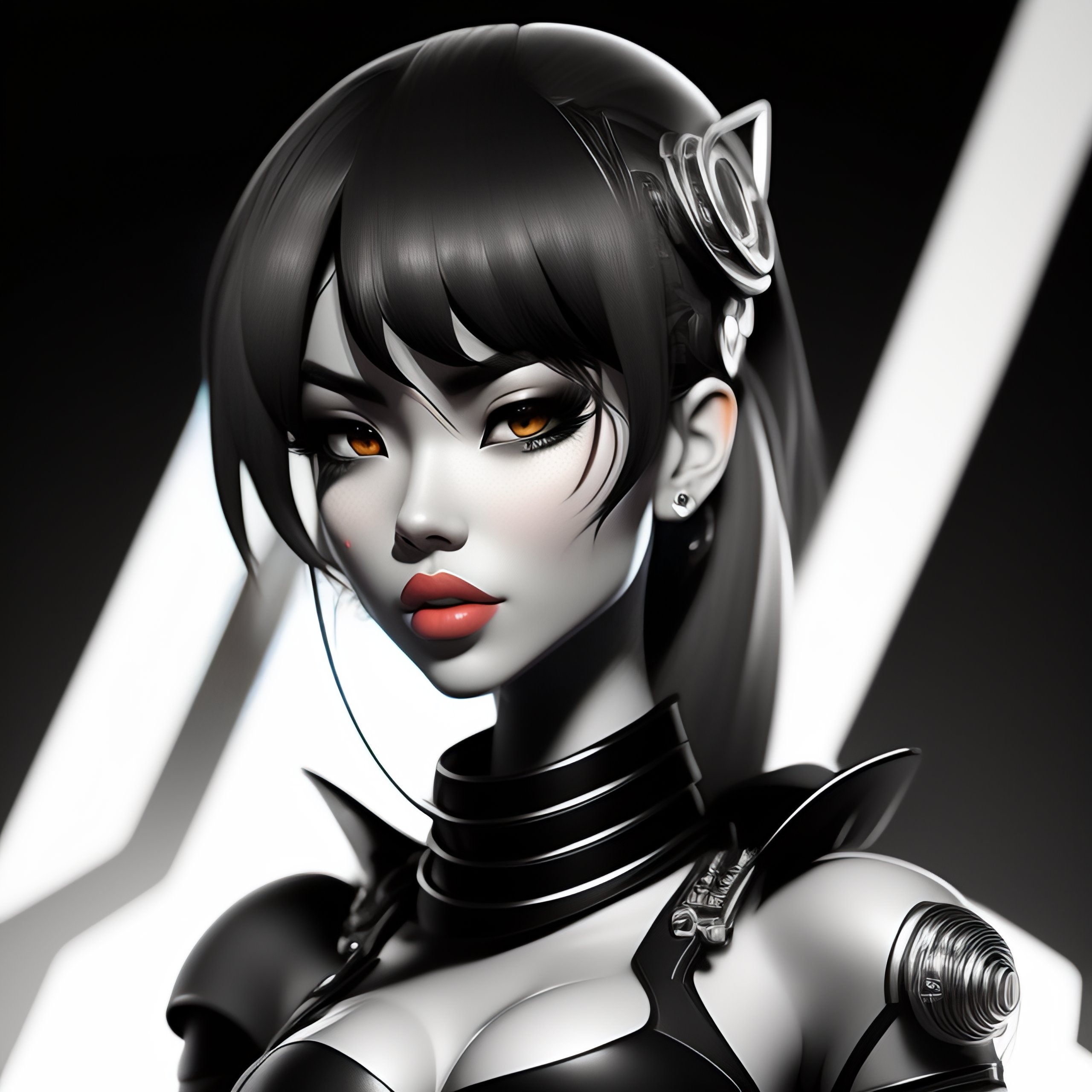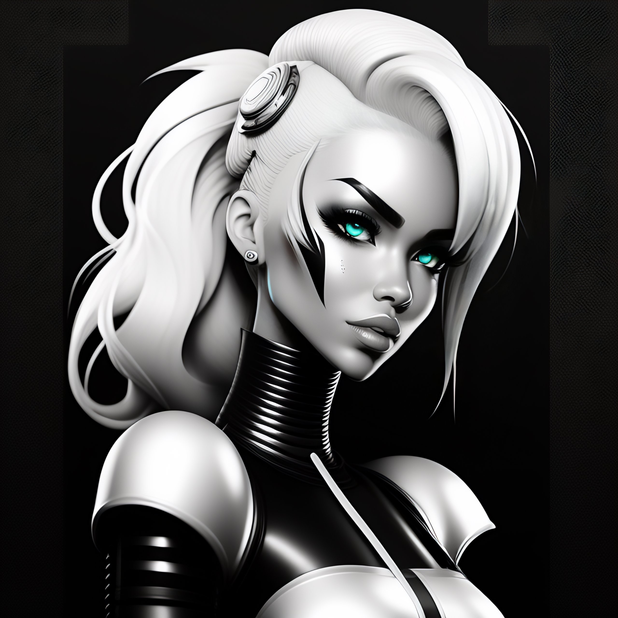 2d character cyborg cartoon style black and white