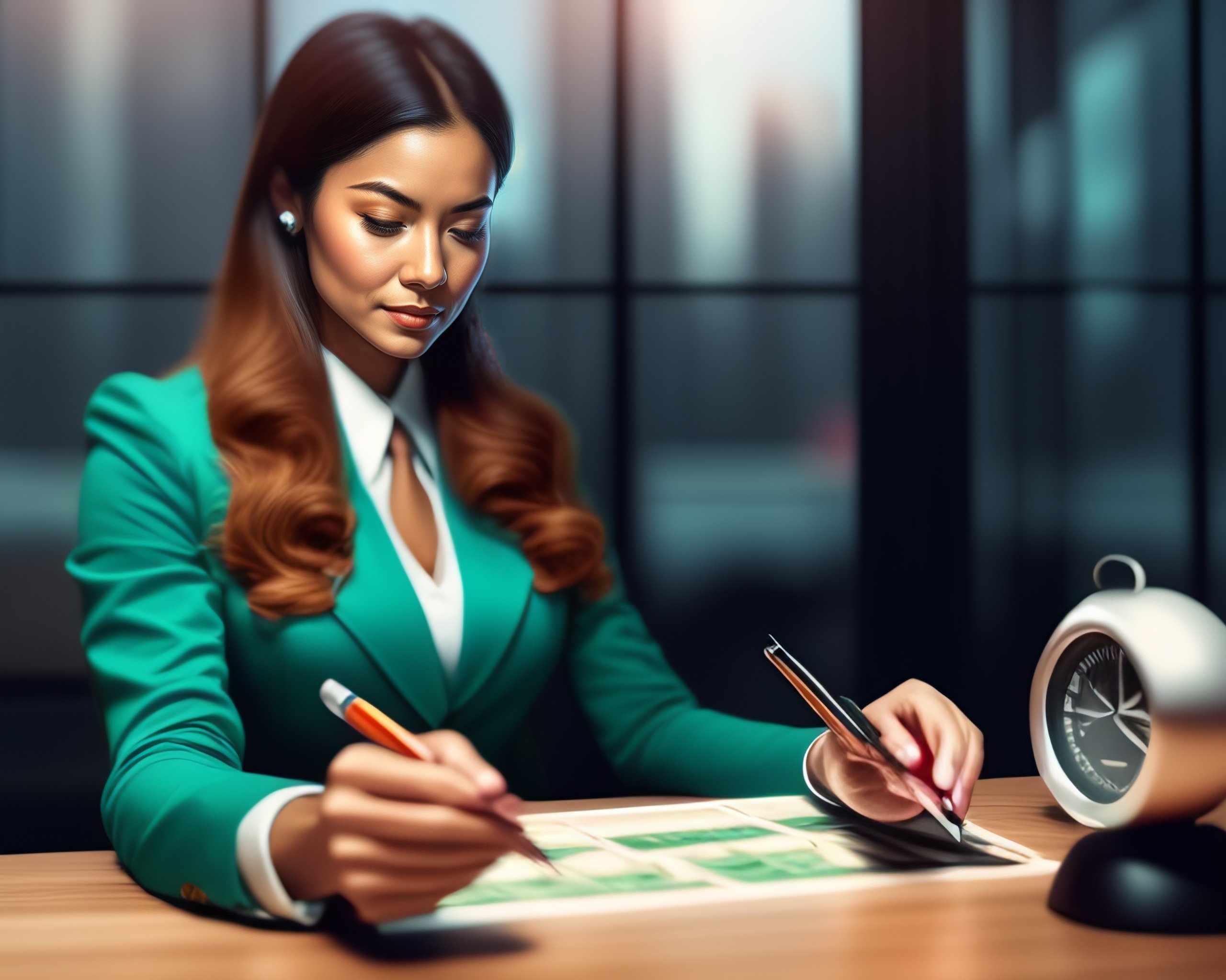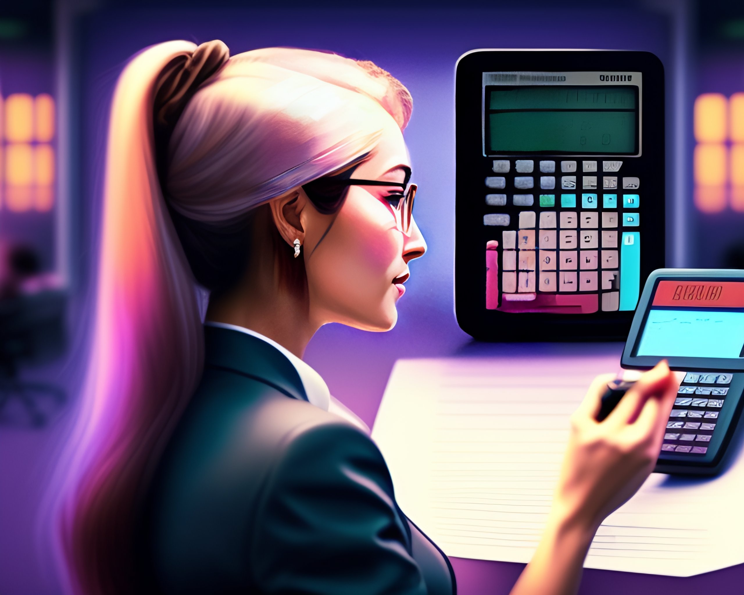 A female accountant holds a calculator in the left hand and in the right hand to calculate the amount of money, concept art, illustrations
