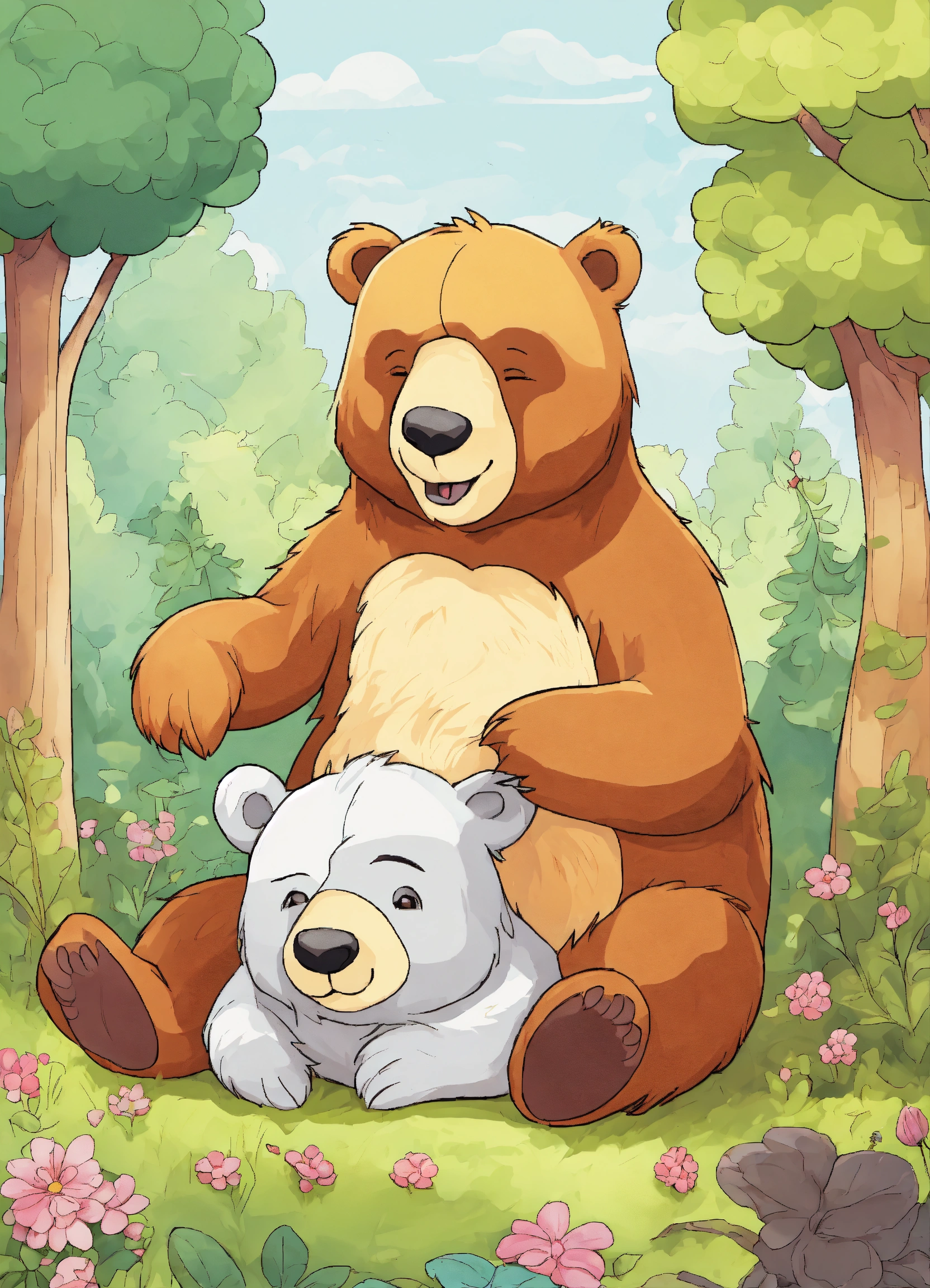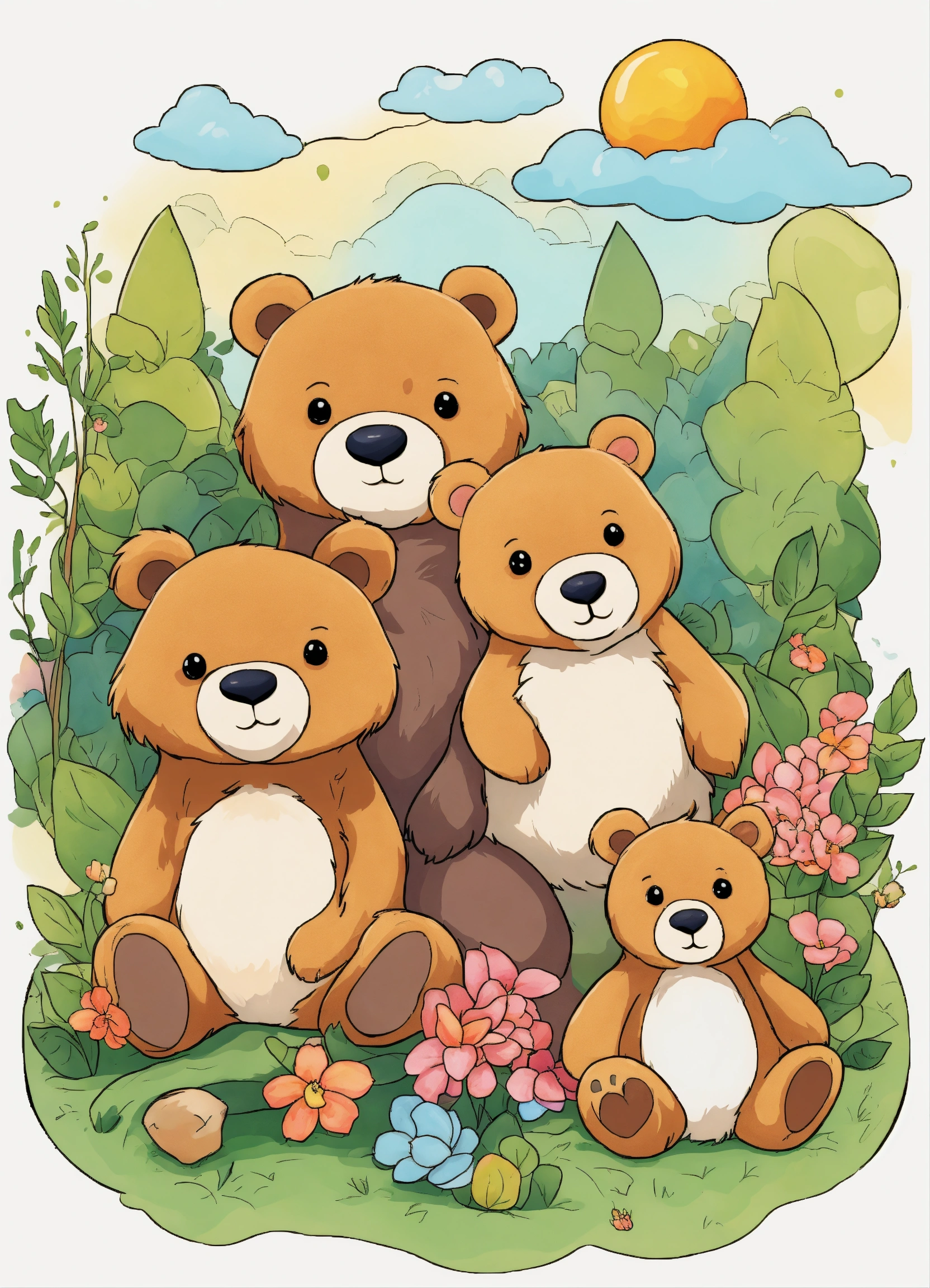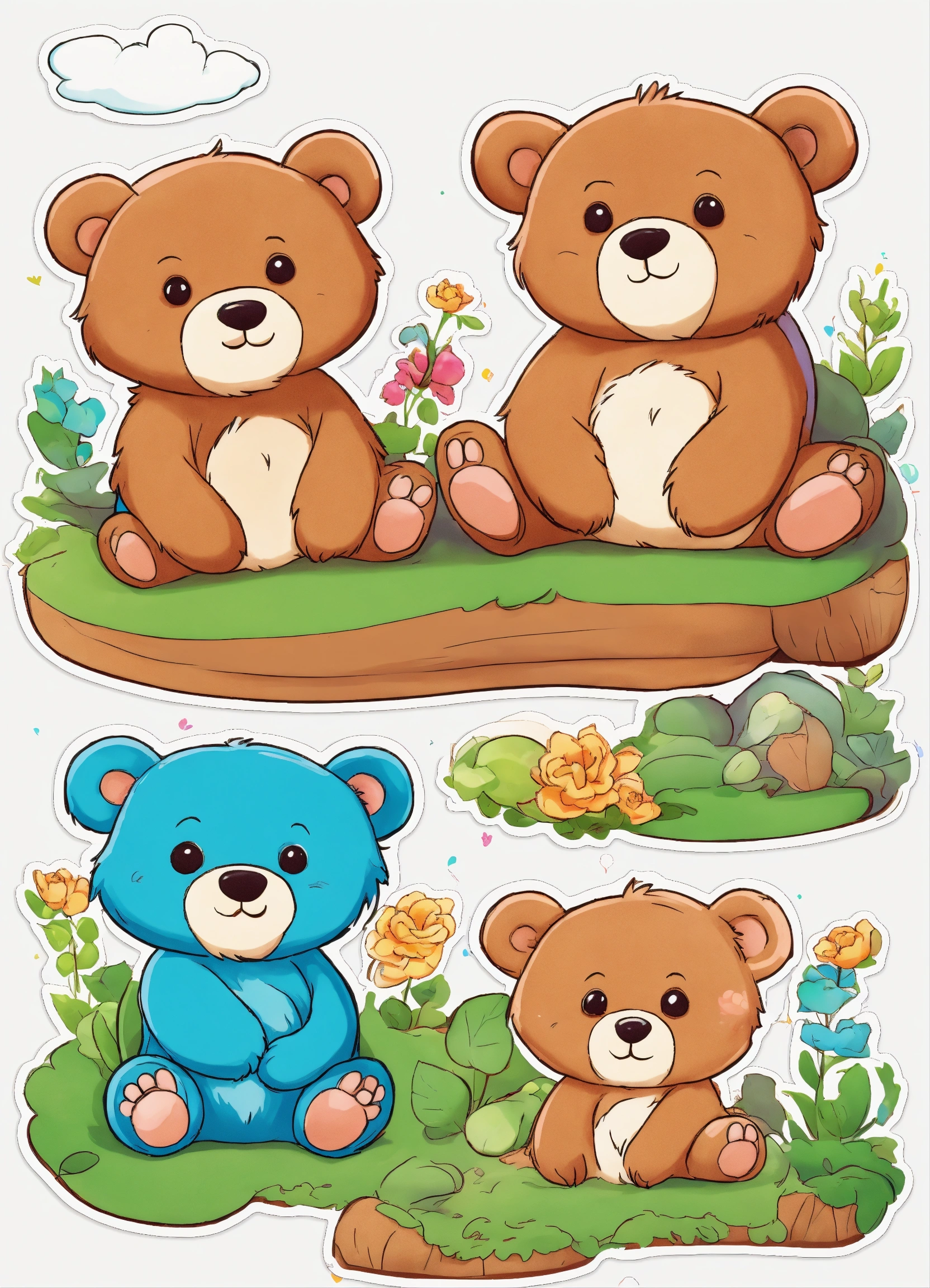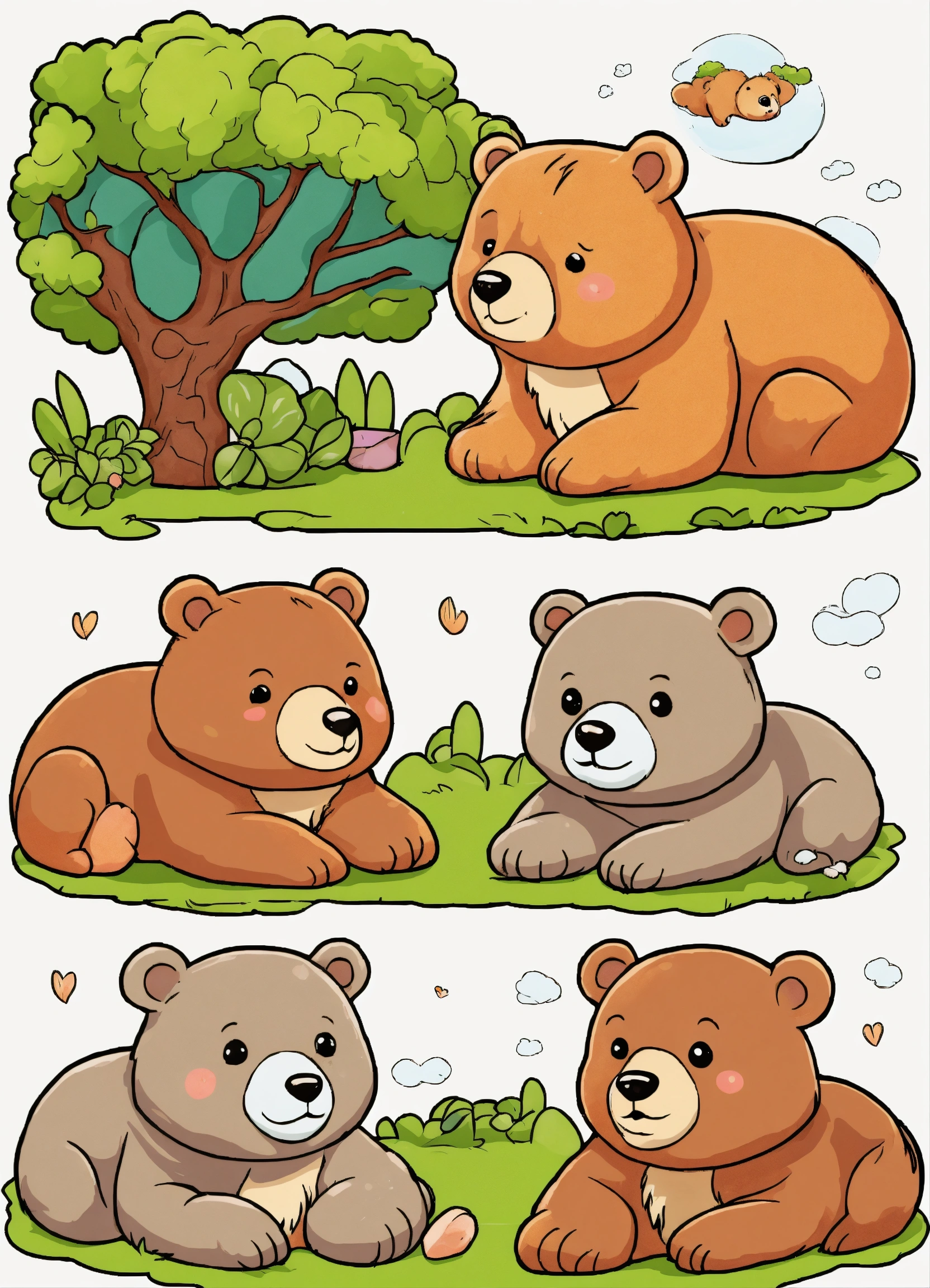 Generate a cute lazy bears in the selve, 4k resolution, cartoon-sticker style with clear lines on a pure white background suitable for a children's coloring book.