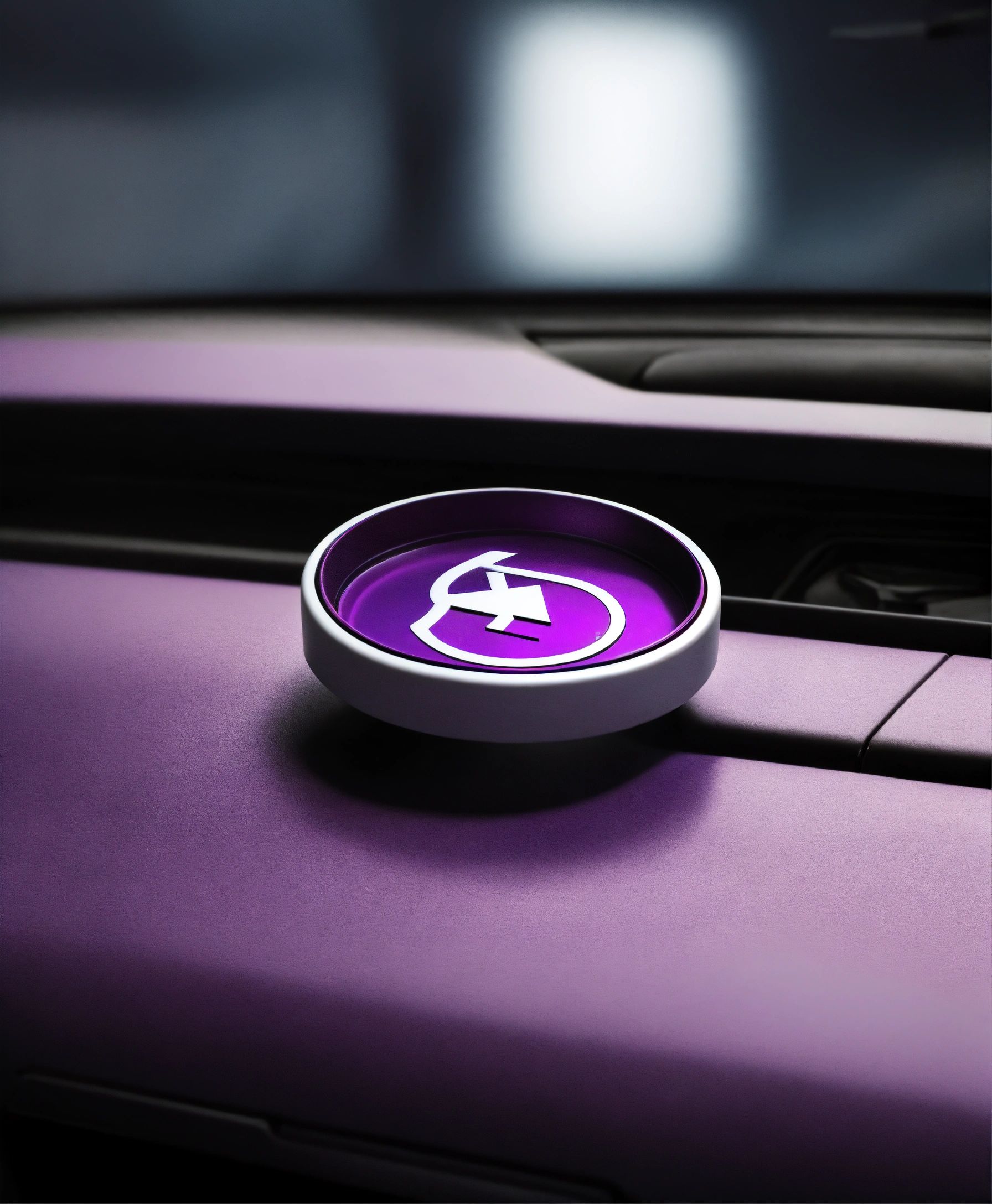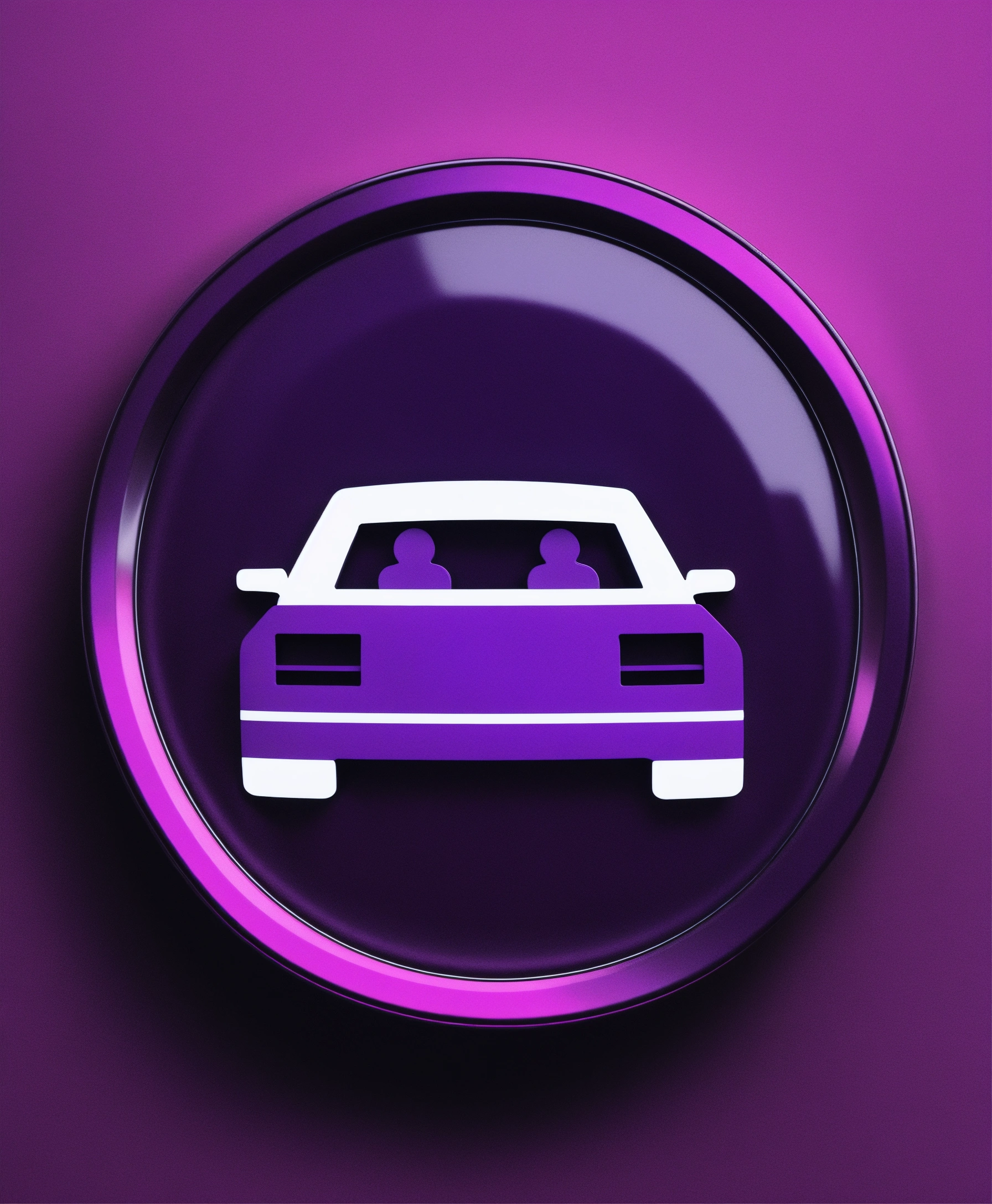 3d illustration of a warning sign button inside a car, minimalist, ismple, deep dark purple and white tones