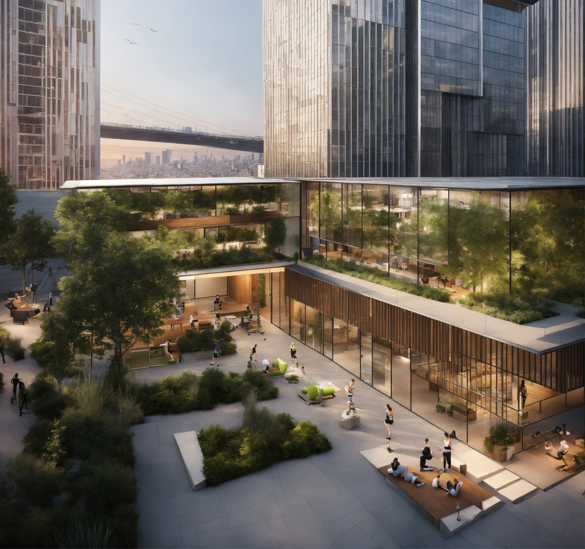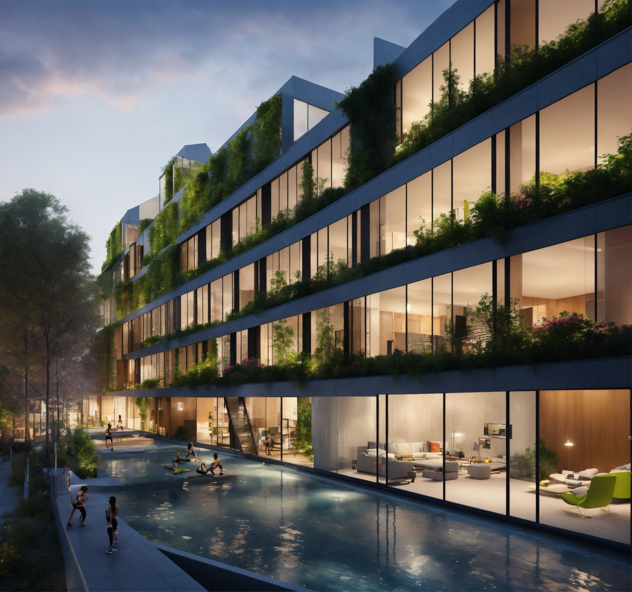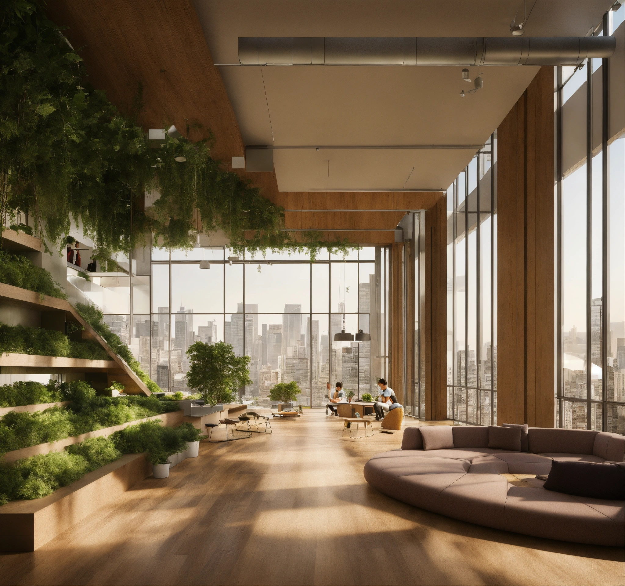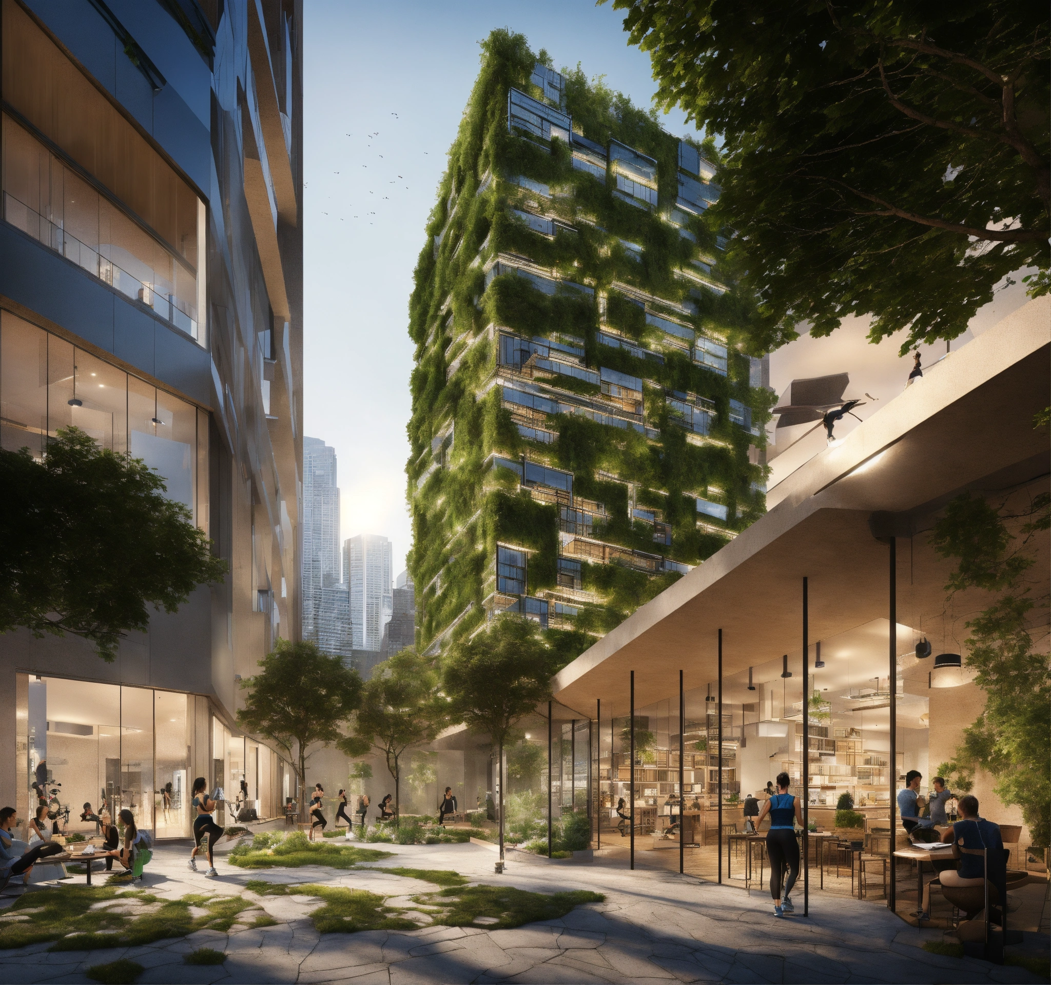 Visualize a dynamic cityscape where buildings are alive with agi intelligence, their forms and functions morphing in real-time to the needs of their occupants. imagine structures that not only adapt their physical spaces - like transforming a living area into a personalized workout space or a quiet reading nook - but also contribute energy back to the city. the skyline is a blend of modern architecture, green spaces, and renewable energy sources, all seamlessly integrated.