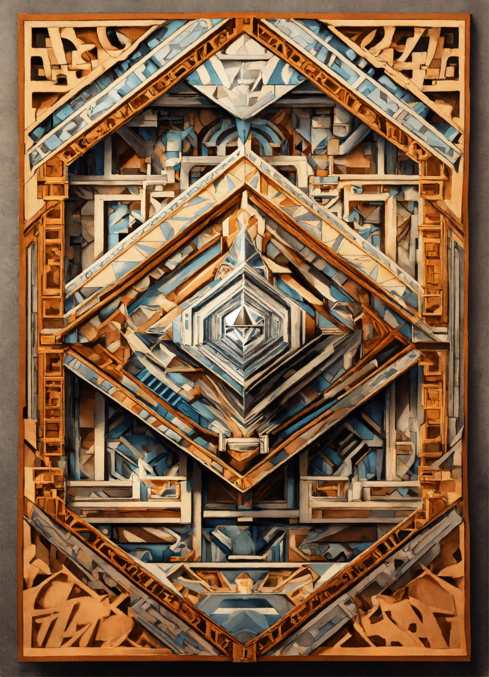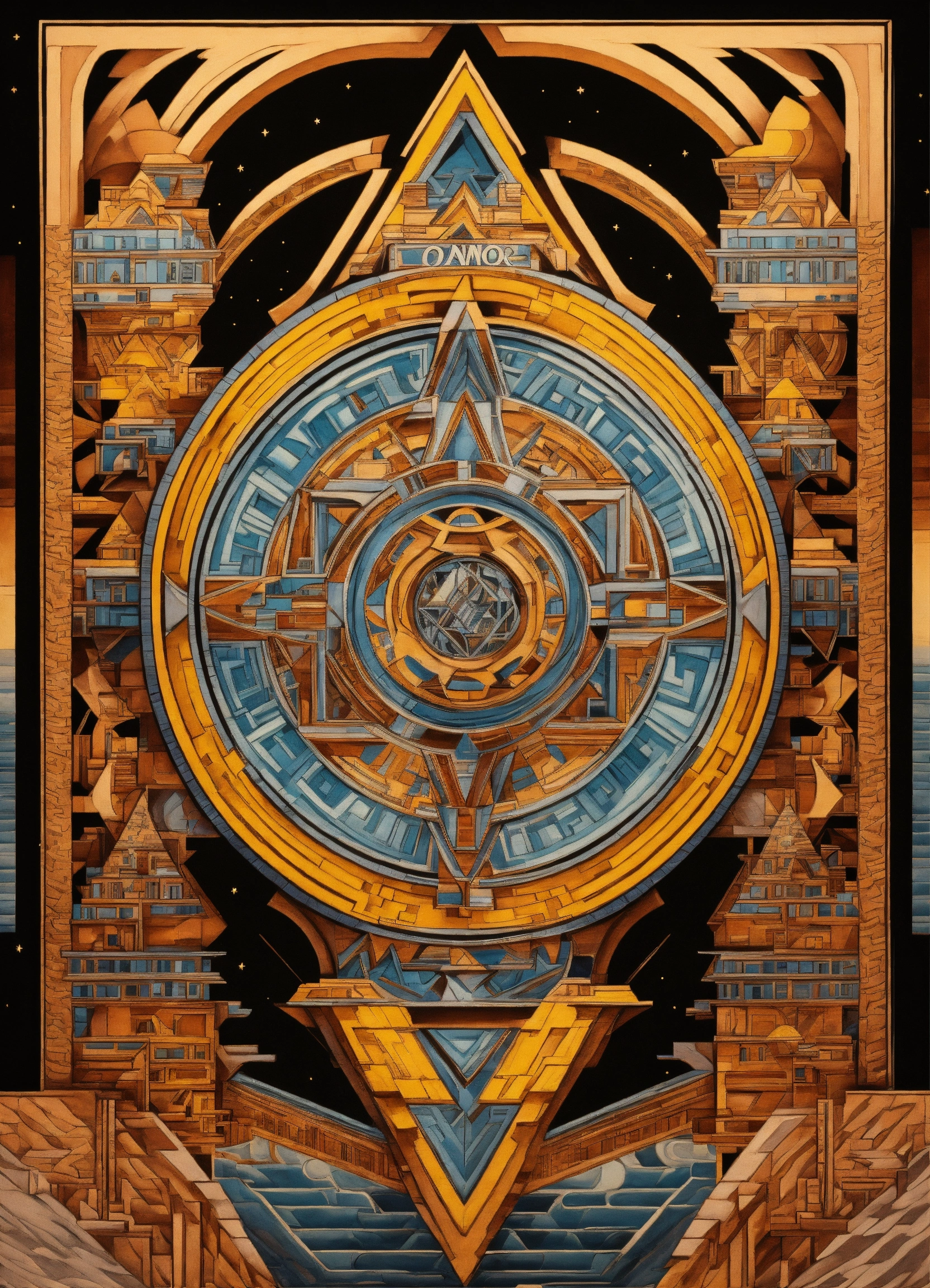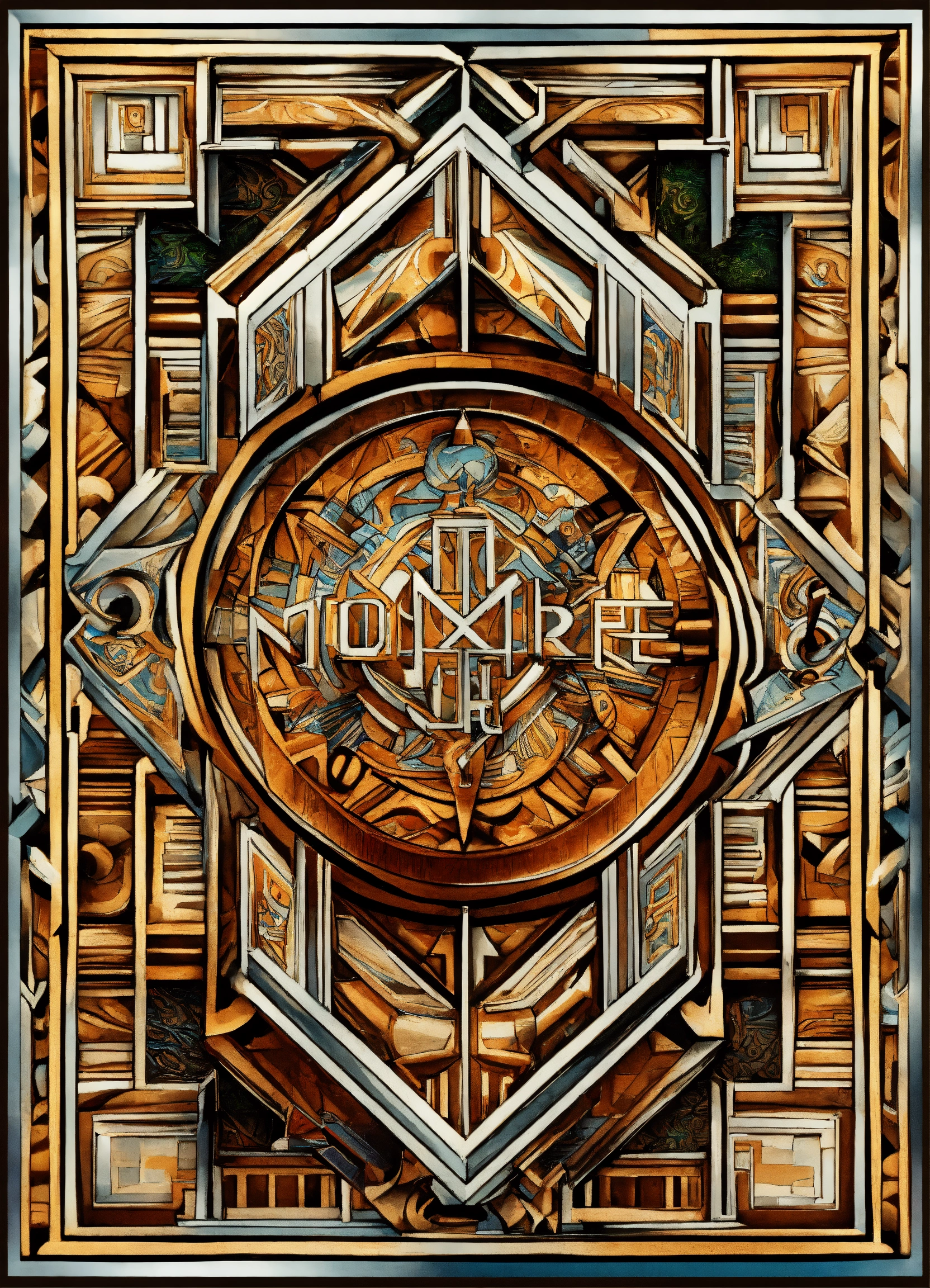 Mc escher style, aztec style, abstract, chrome look, symmetrical, detailed, with the word nomore inside of it