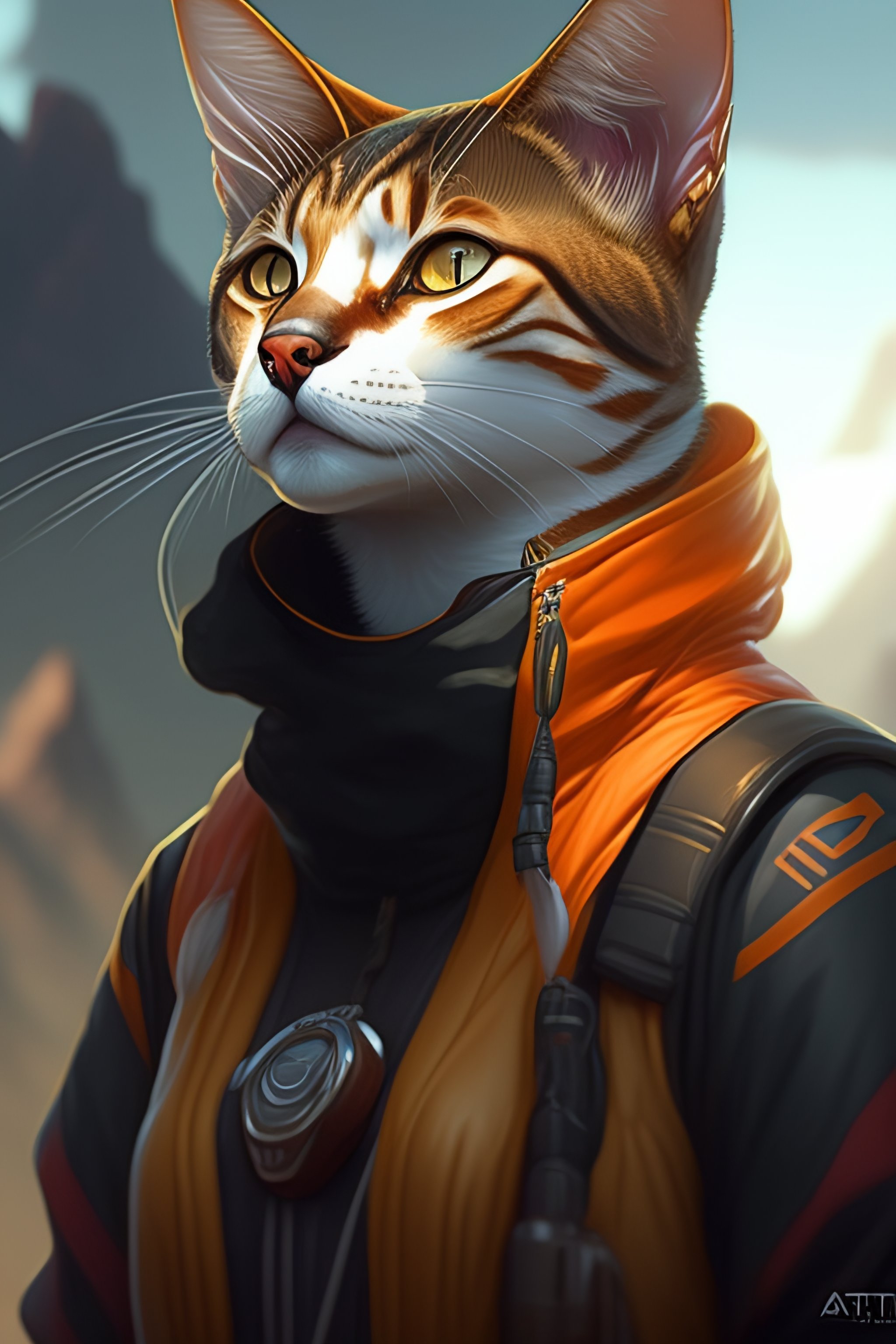 A tabby cat in apex legends style, highly detailed, digital painting, artstation, concept art, smooth, sharp focus, illustration, art by artgerm and greg rutkowski and alphonse mucha