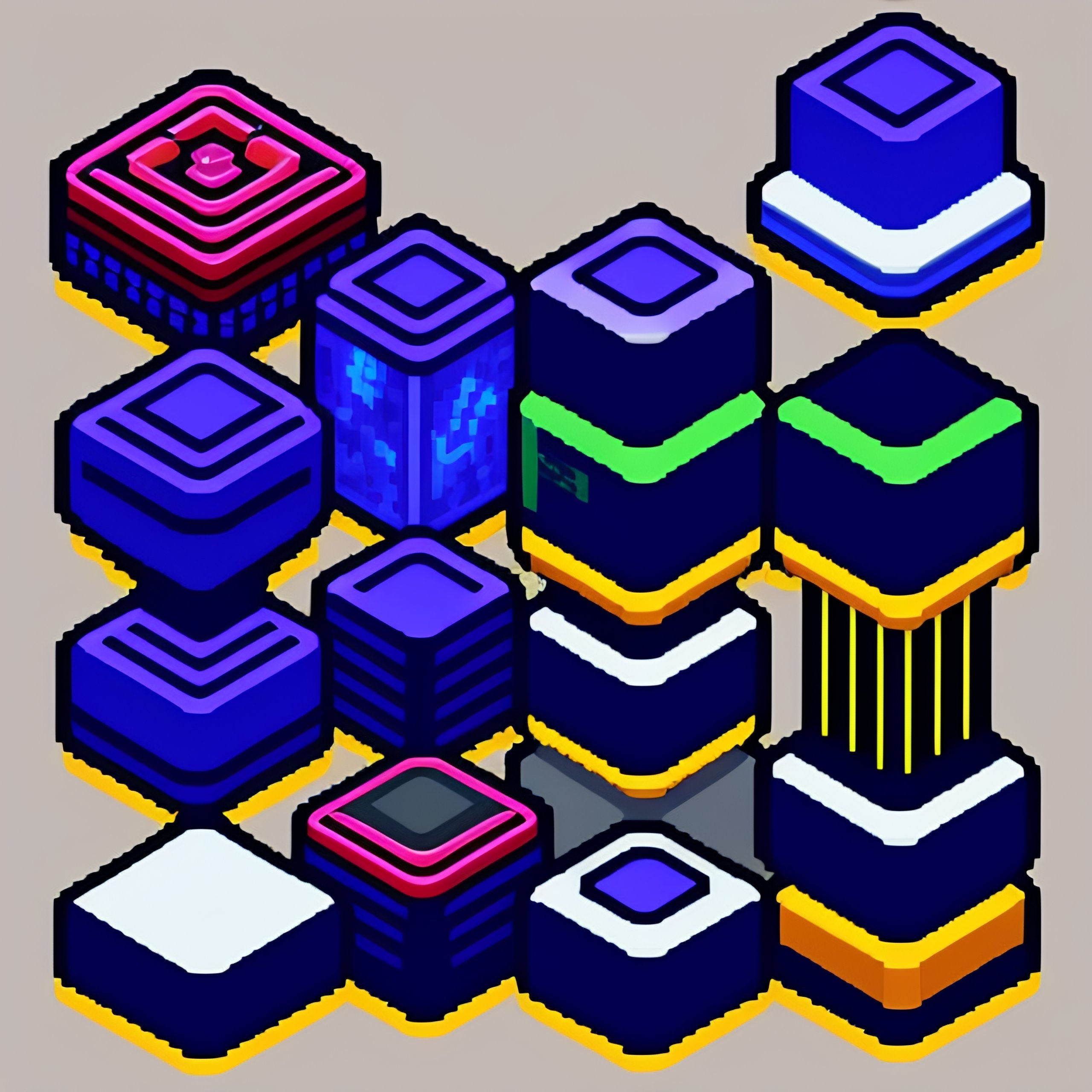 Pixel art, cyberpunk style, sci-fi, spritesheet, grid 32x32, street tiles, high quality, without distortion, no filtering, different surfaces.