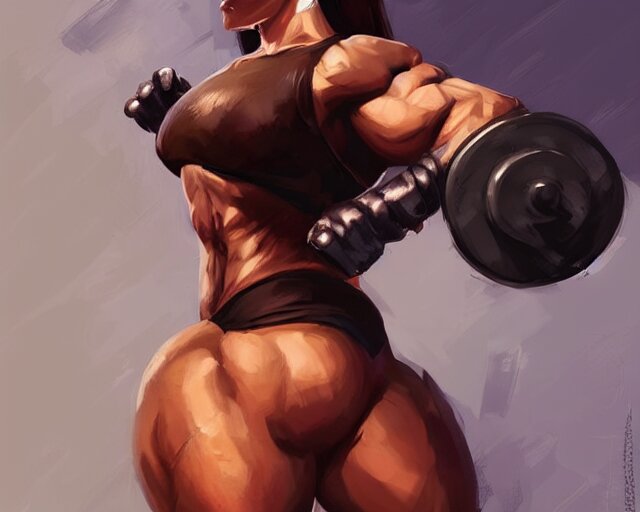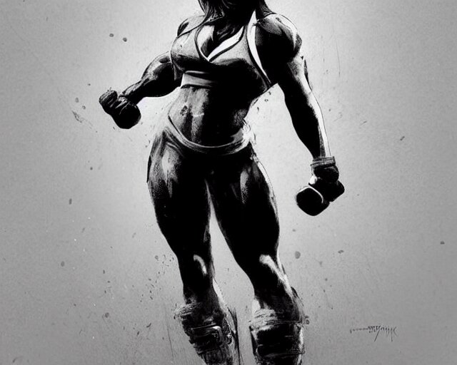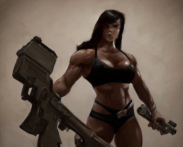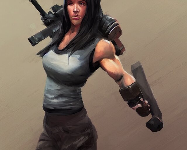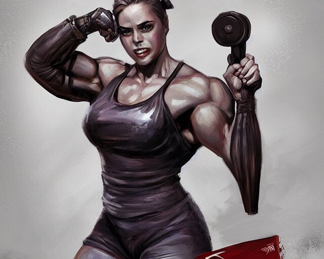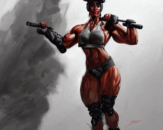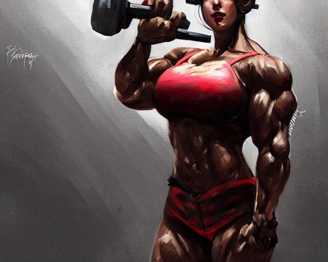 Portrait of a female bodybuilder bodyguard in team fortress 2 style, epic, tragic, dark fantasy art, fantasy, pretty, hd shot, digital portrait, beautiful, artstation, comic style, by artgerm, guy denning, jakub rozalski, magali villeneuve and charlie bowater