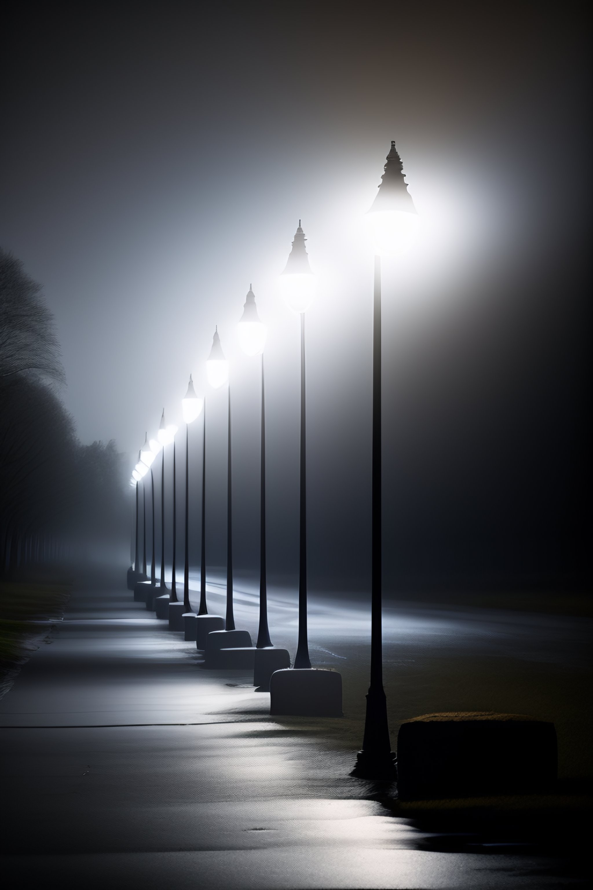 Dark room scene light poles