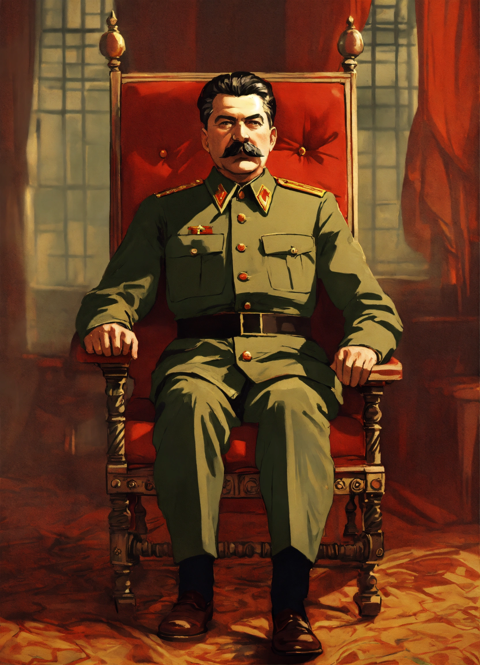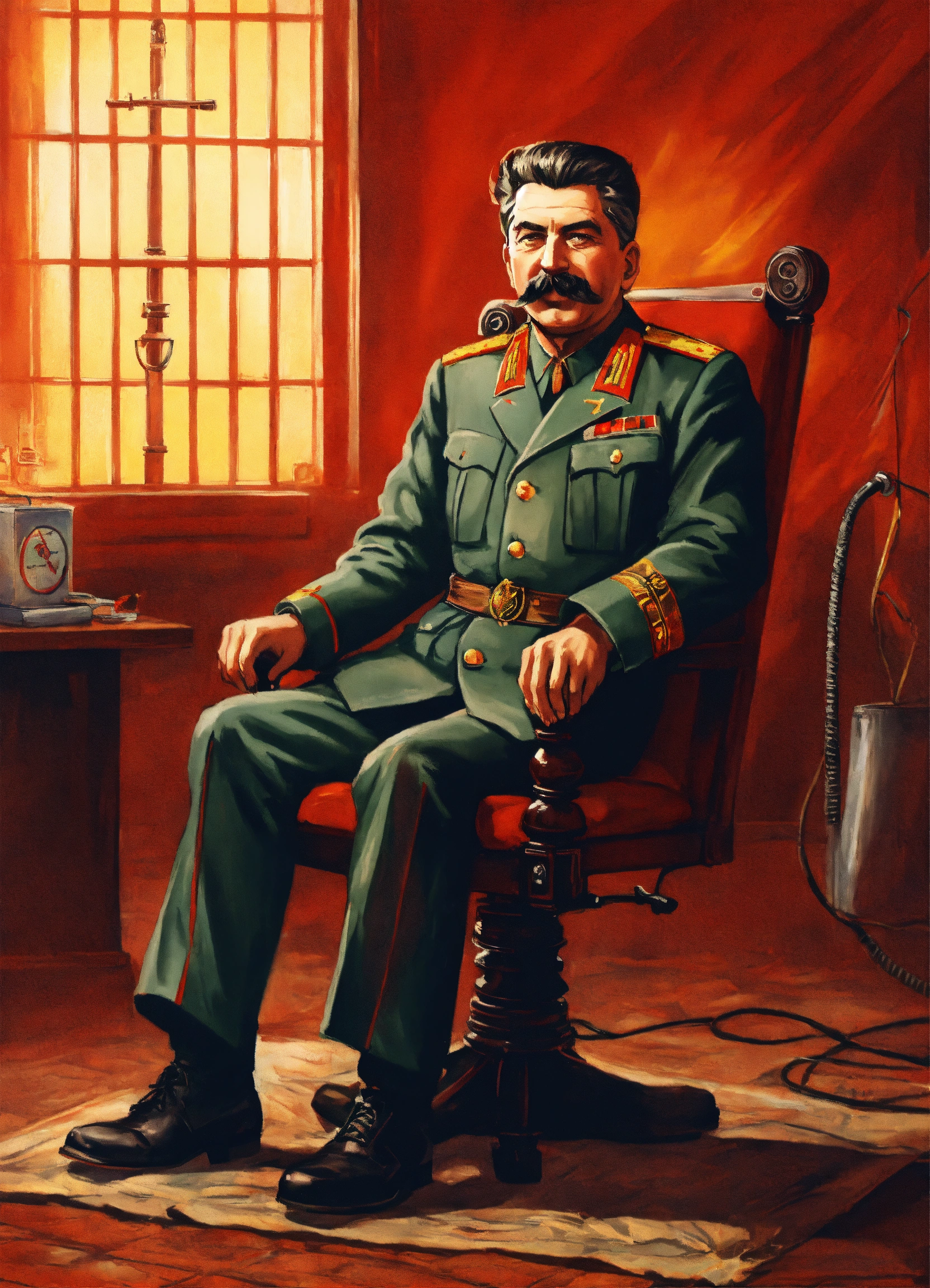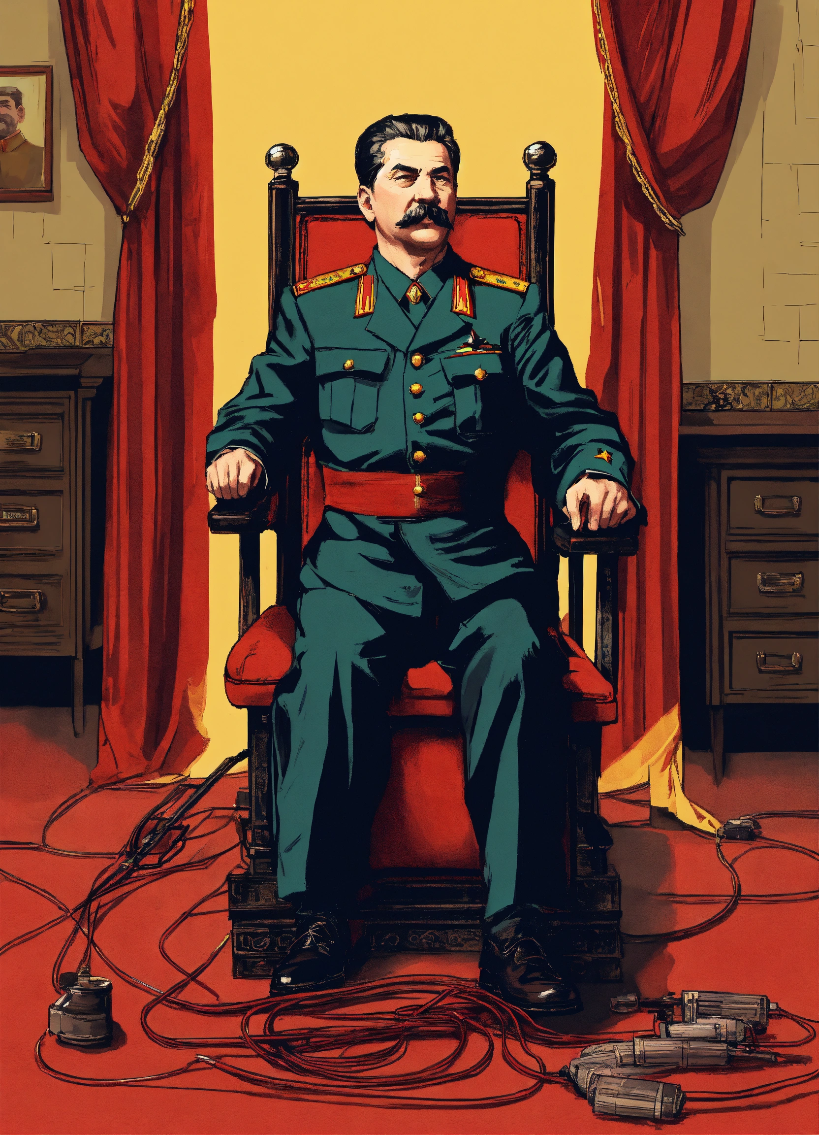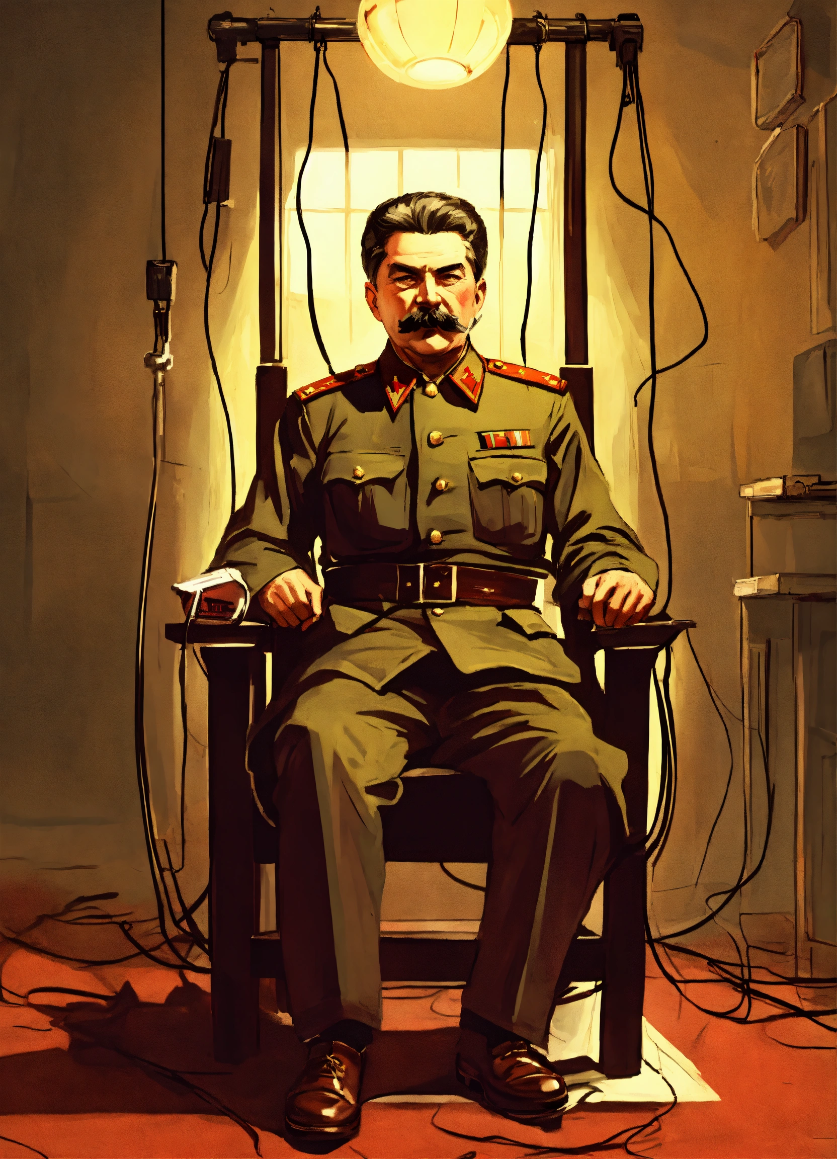 Illustration stalin tied to the electric chair