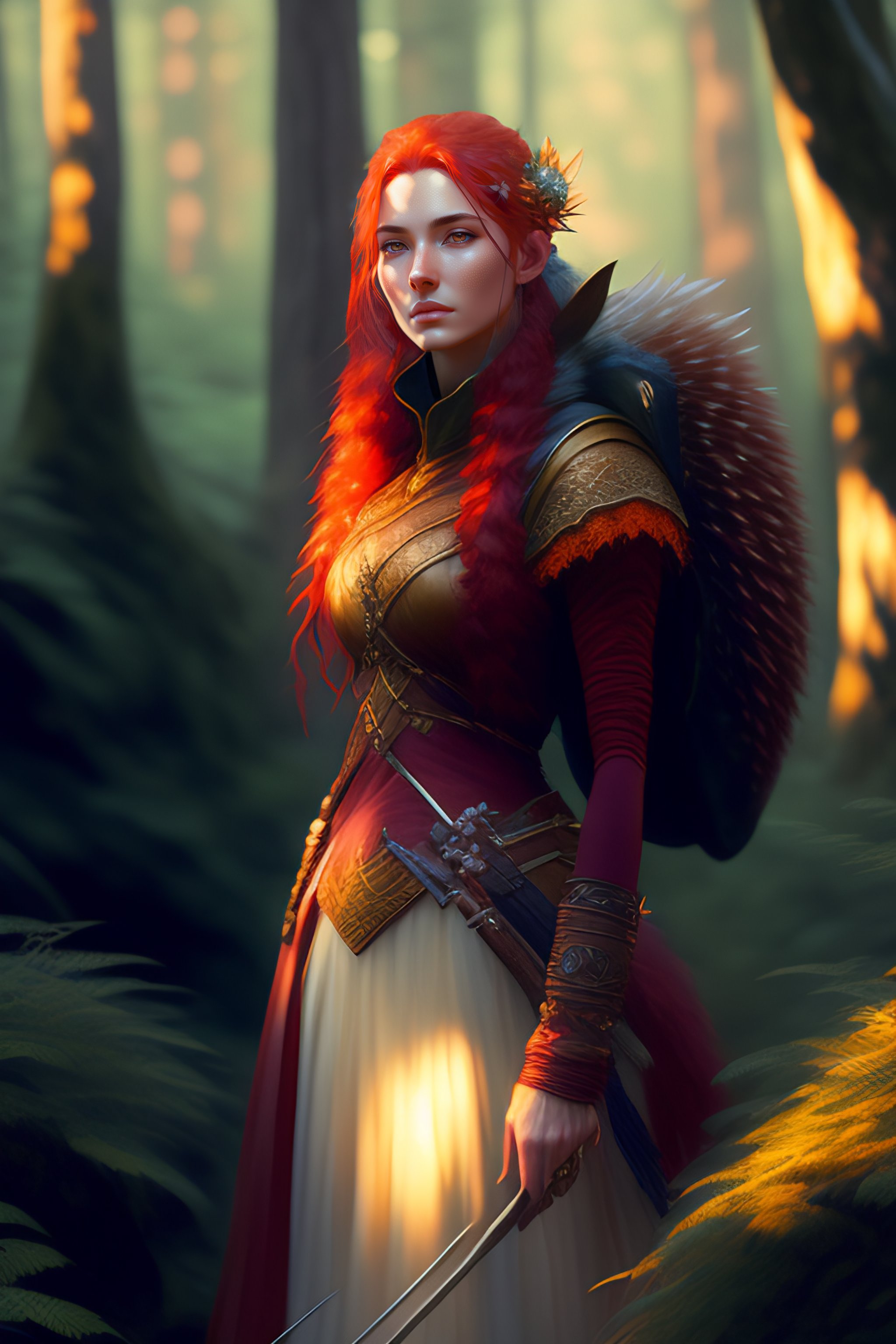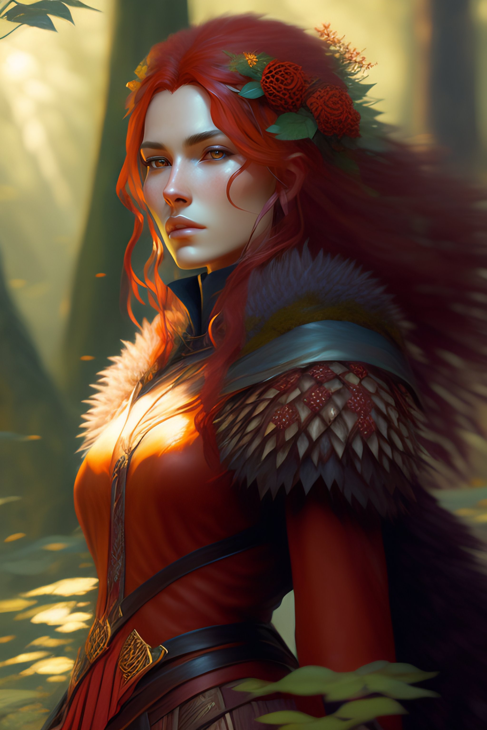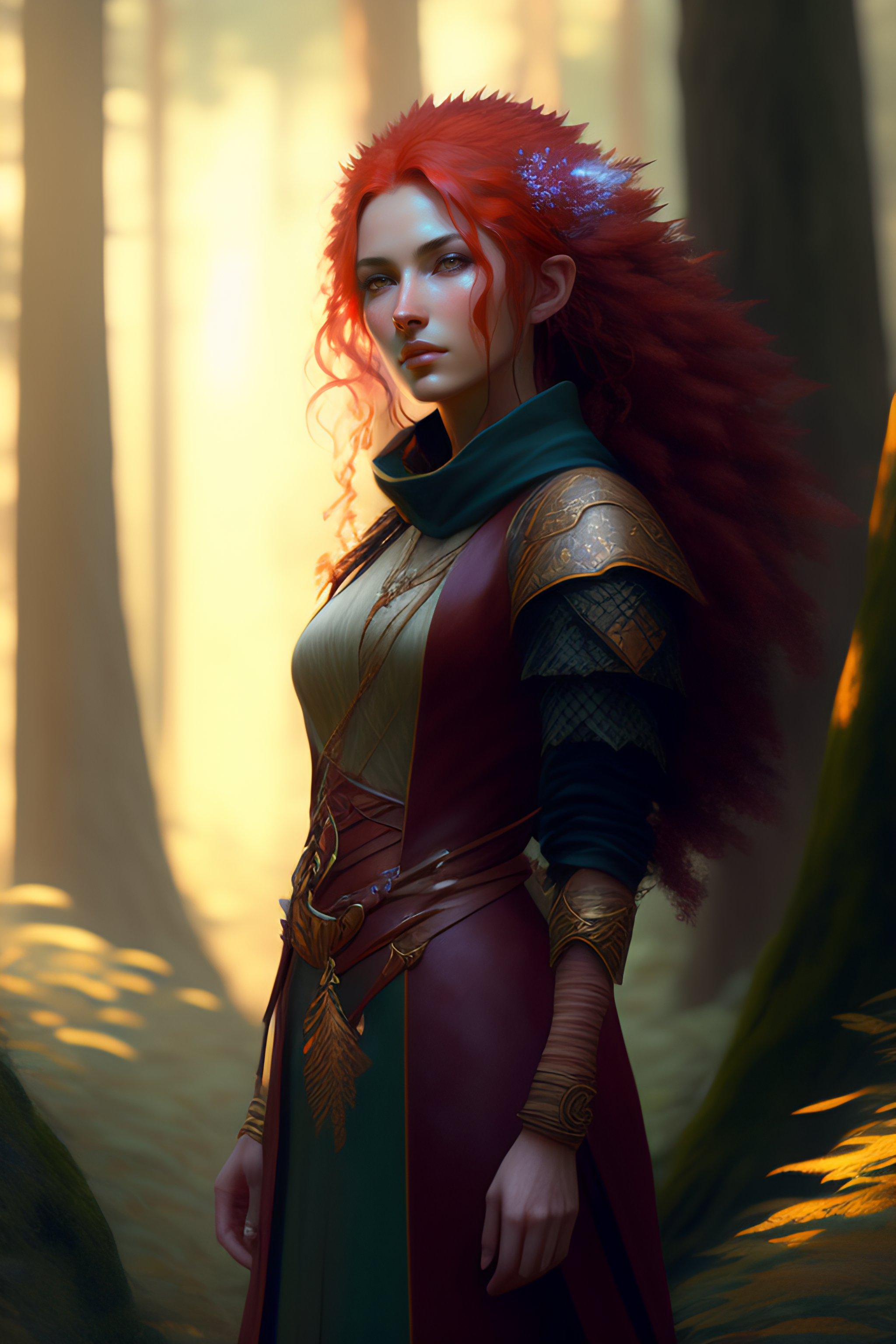 Hedgehog druid woomenhedgehog red - haired long-legged, with redhair needles in a forest, portrait, gaia, nature, fairy, forest background, magic the gathering artwork, d&d, fantasy, cinematic lighting, centered, symmetrical, highly detailed, digital painting, artstation, concept art, smooth, sharp focus, illustration, volumetric lighting, epic composition, 8k, art by akihiko yoshida and craig mullins, oil painting, cgsociety