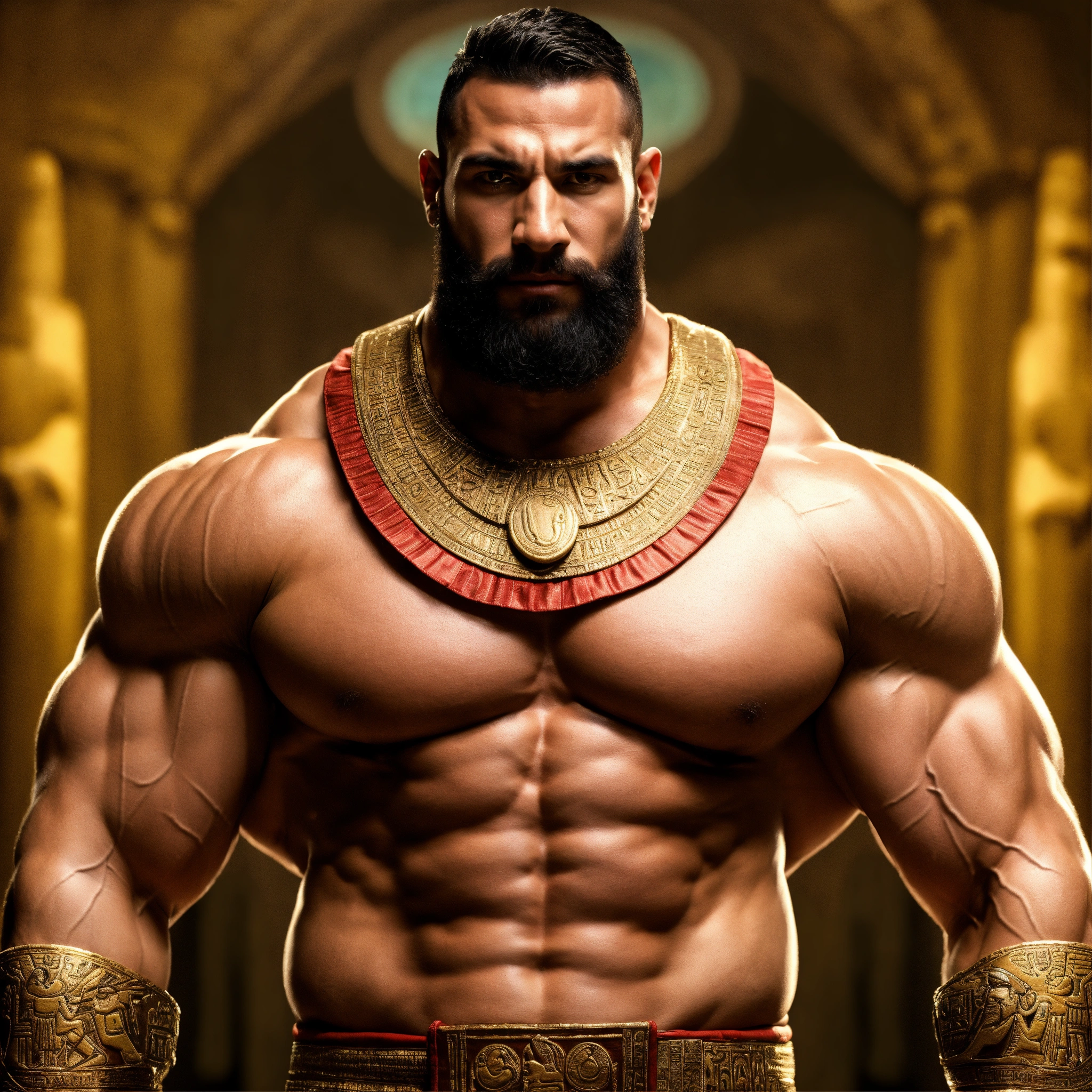 35-year-old hairy ancient egyptian god with big muscles