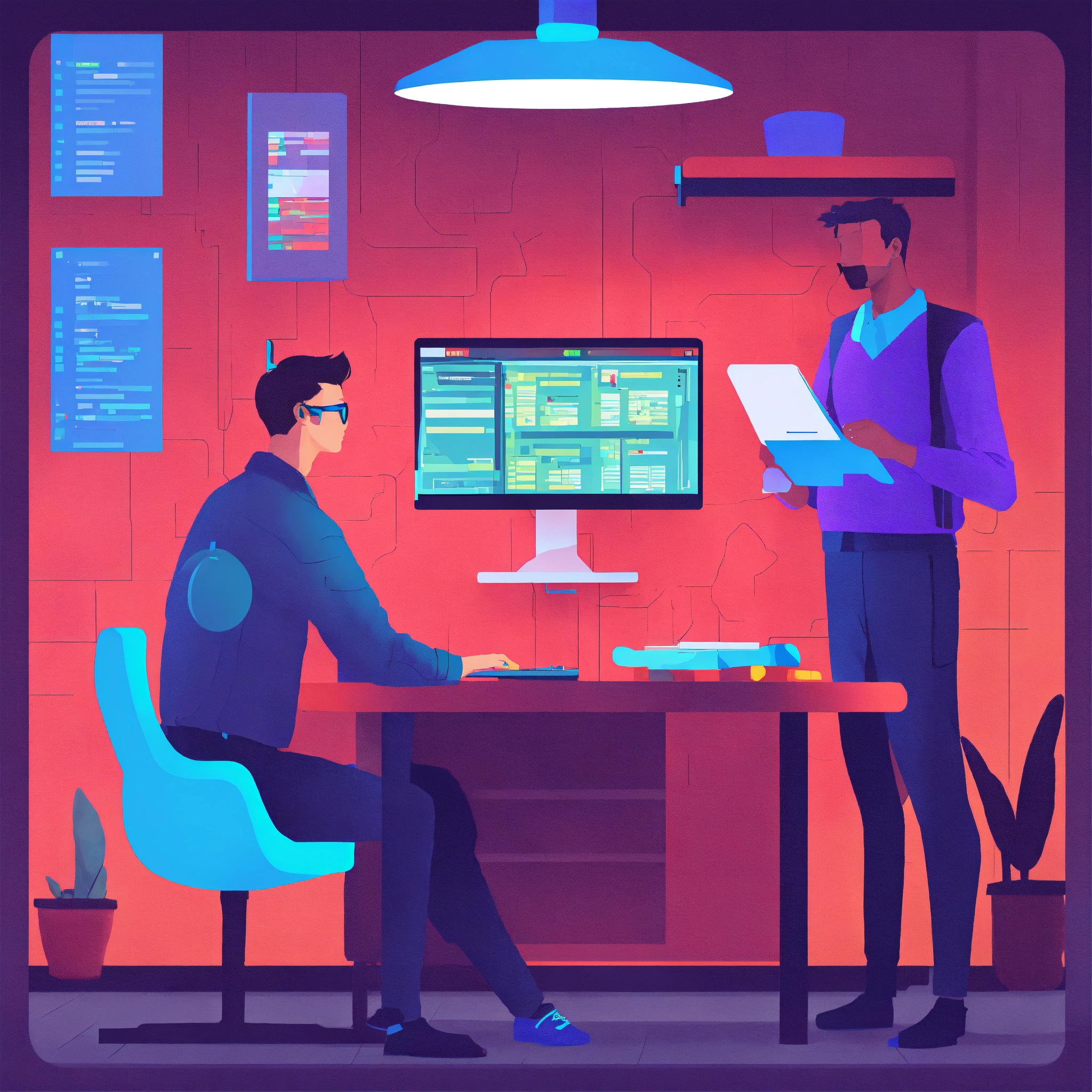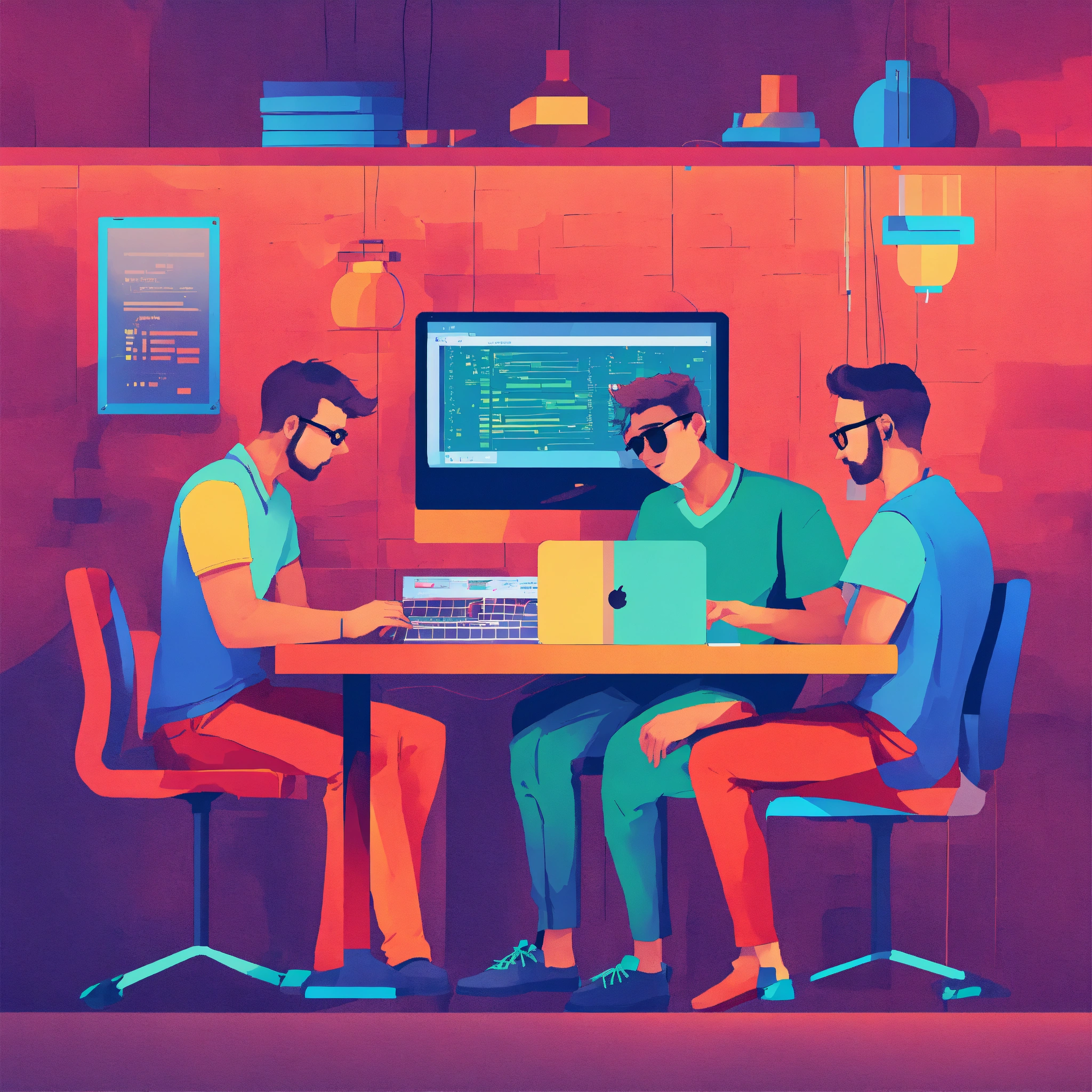 Guys programming flat design