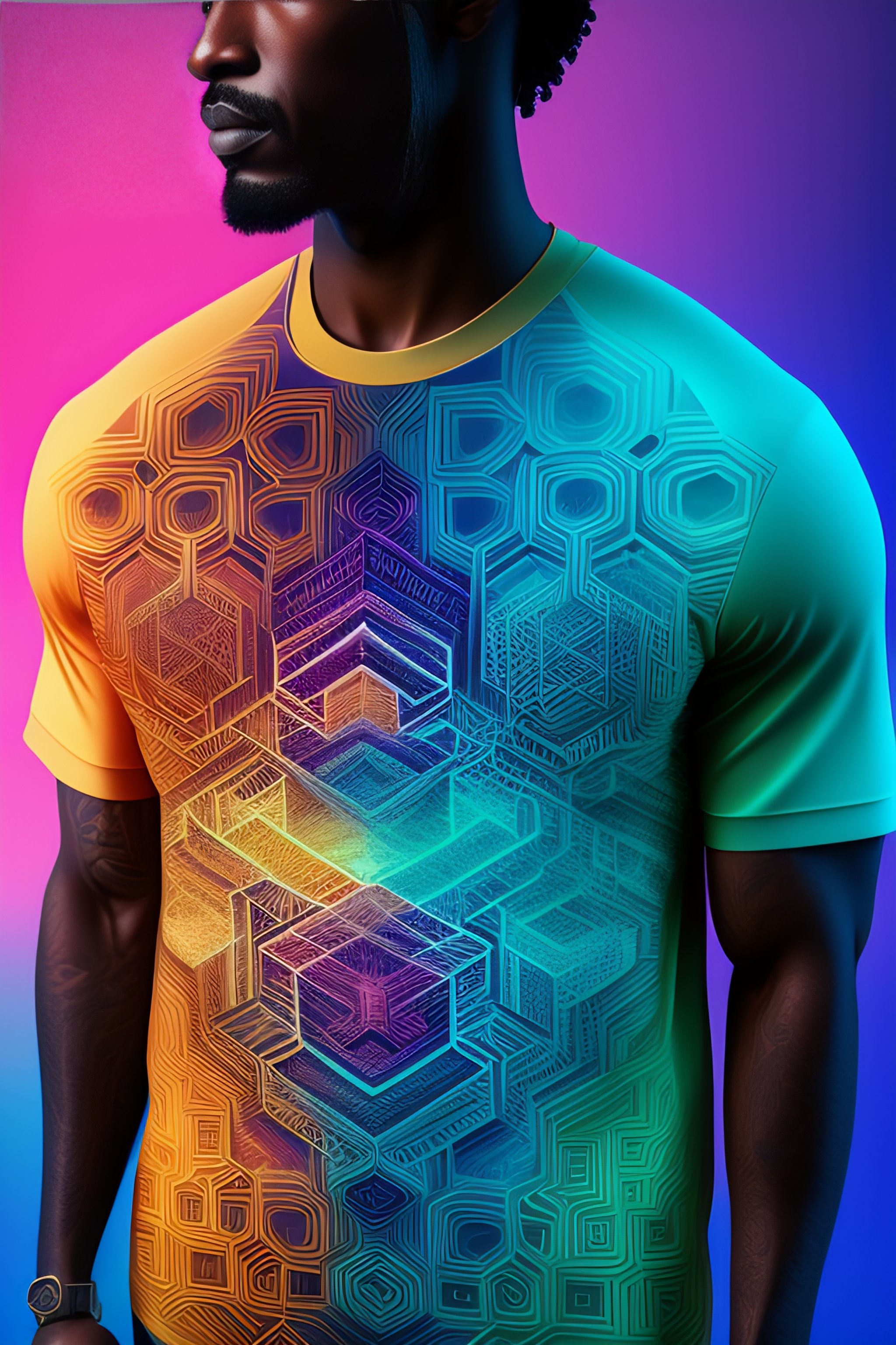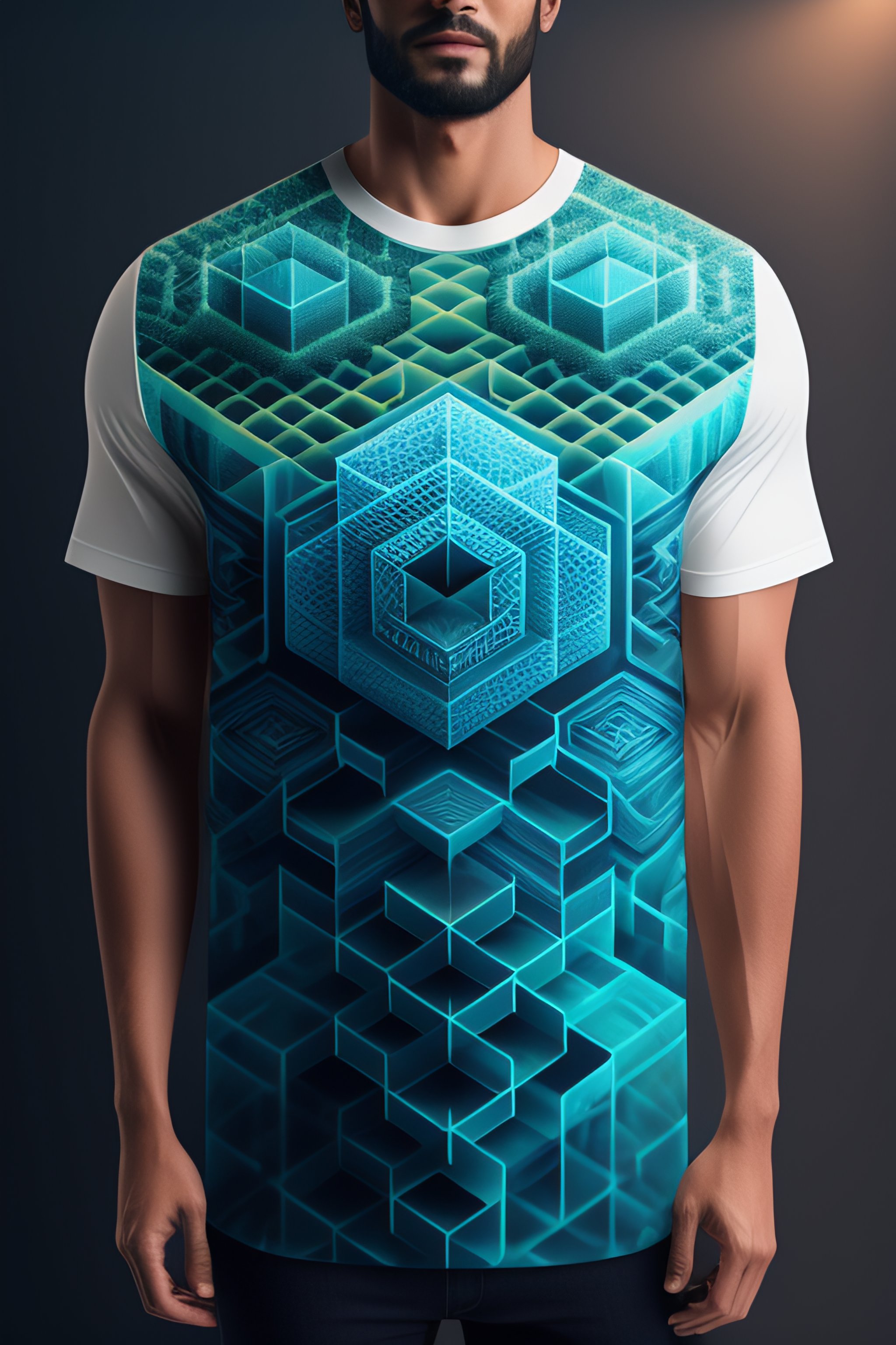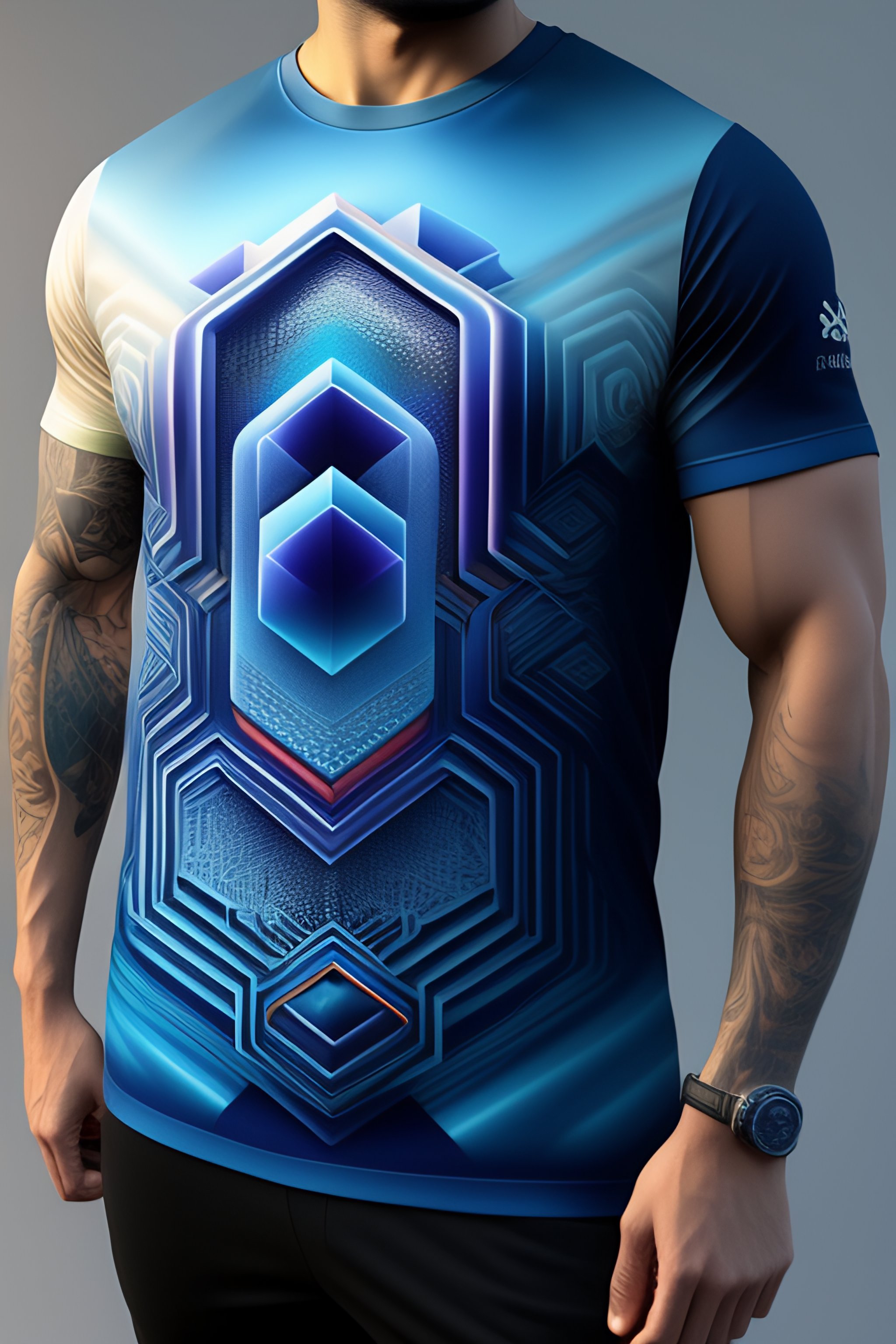 Ultra realistic creative design of blockchain patterns by a 3d artist for a tshirt