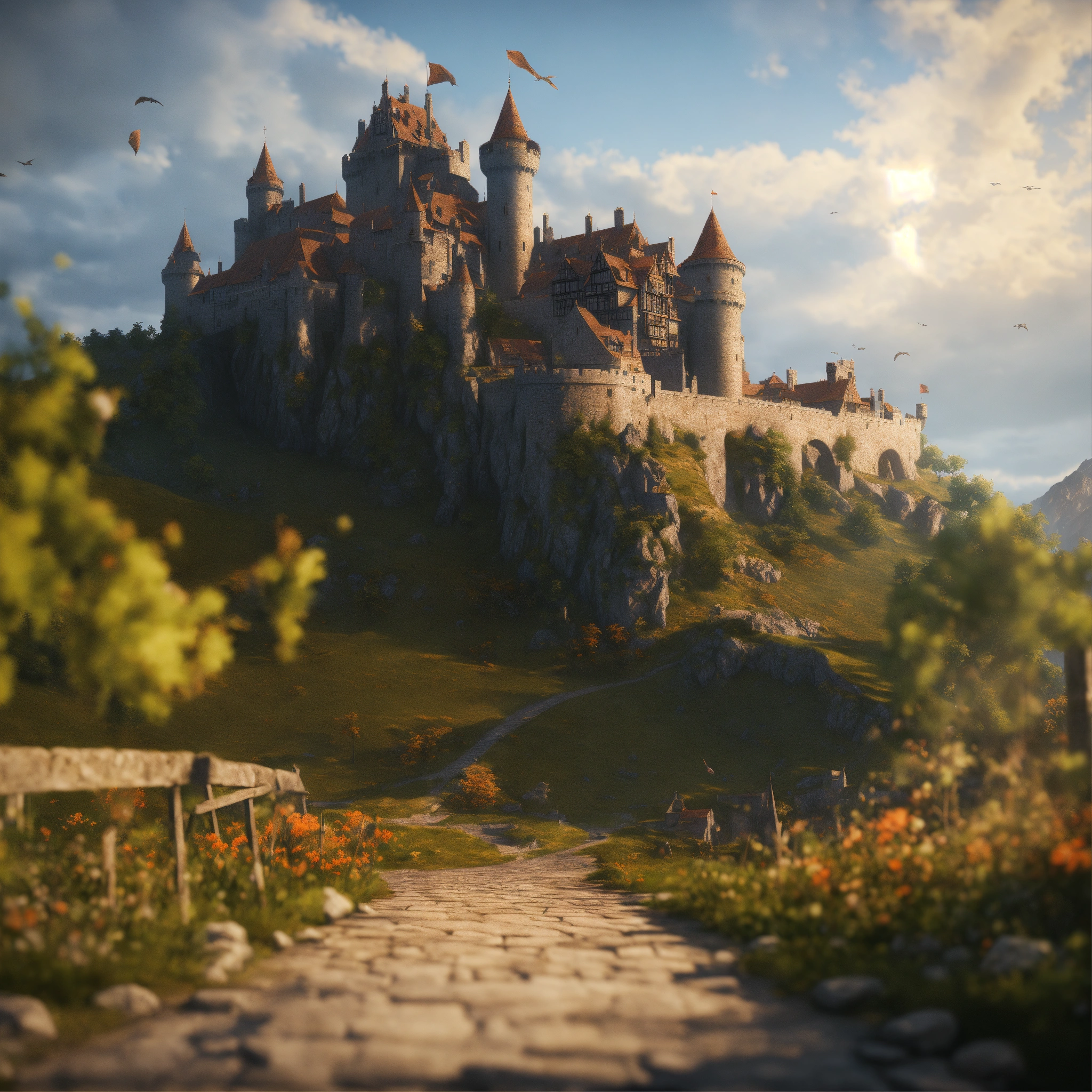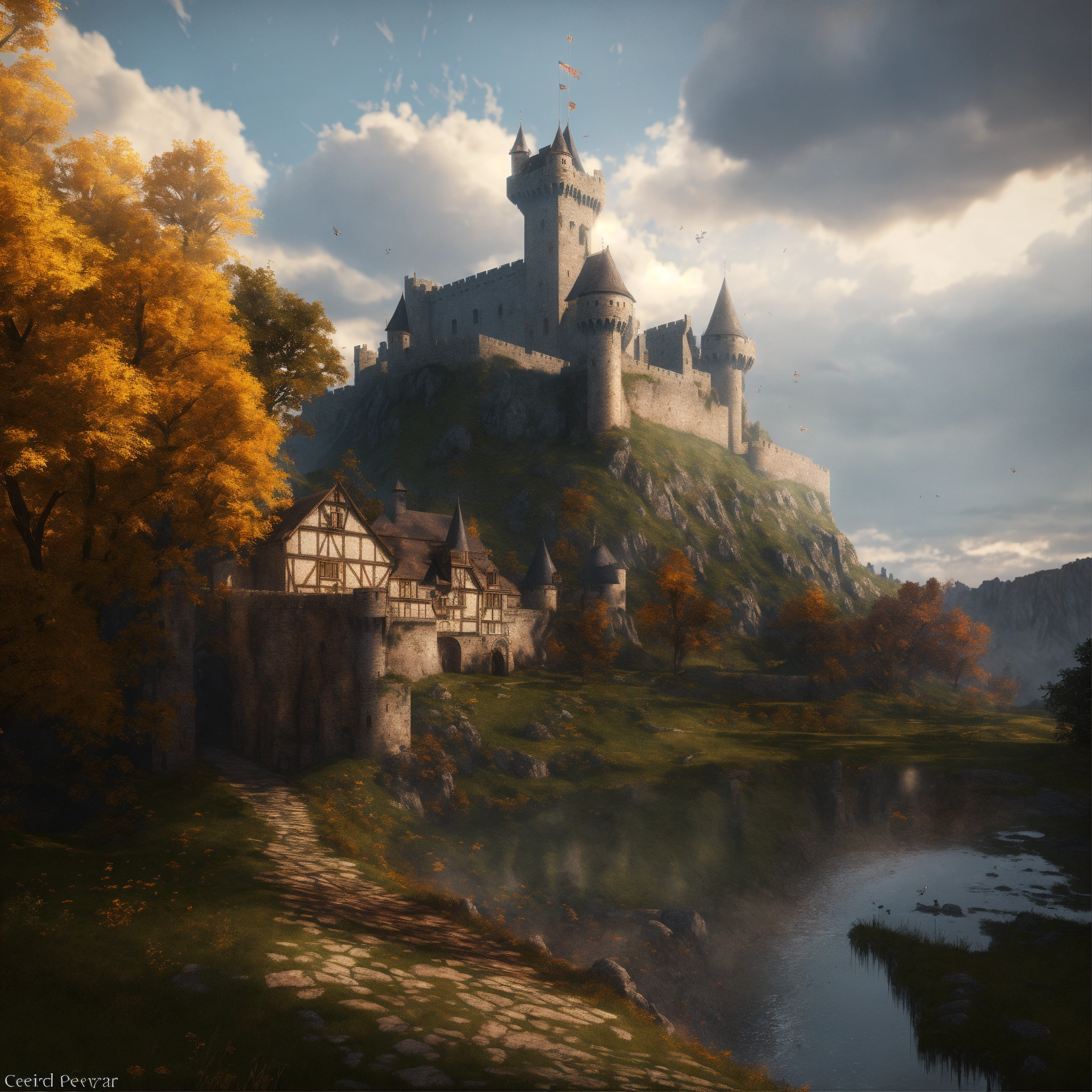 Medieval castle, cedric peyravernay, excellent composition, cinematic concept art, unreal engine, high quality digital art, dramatic lighting, photo realism
