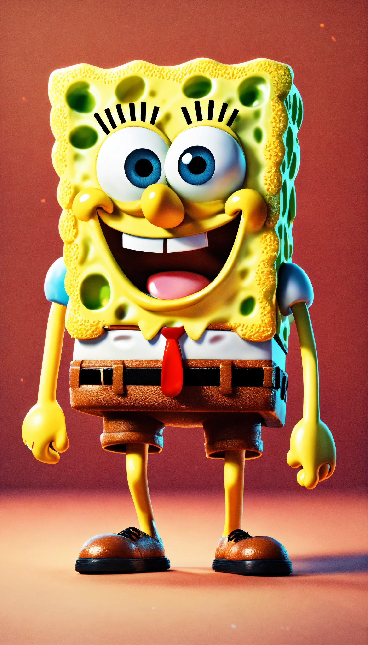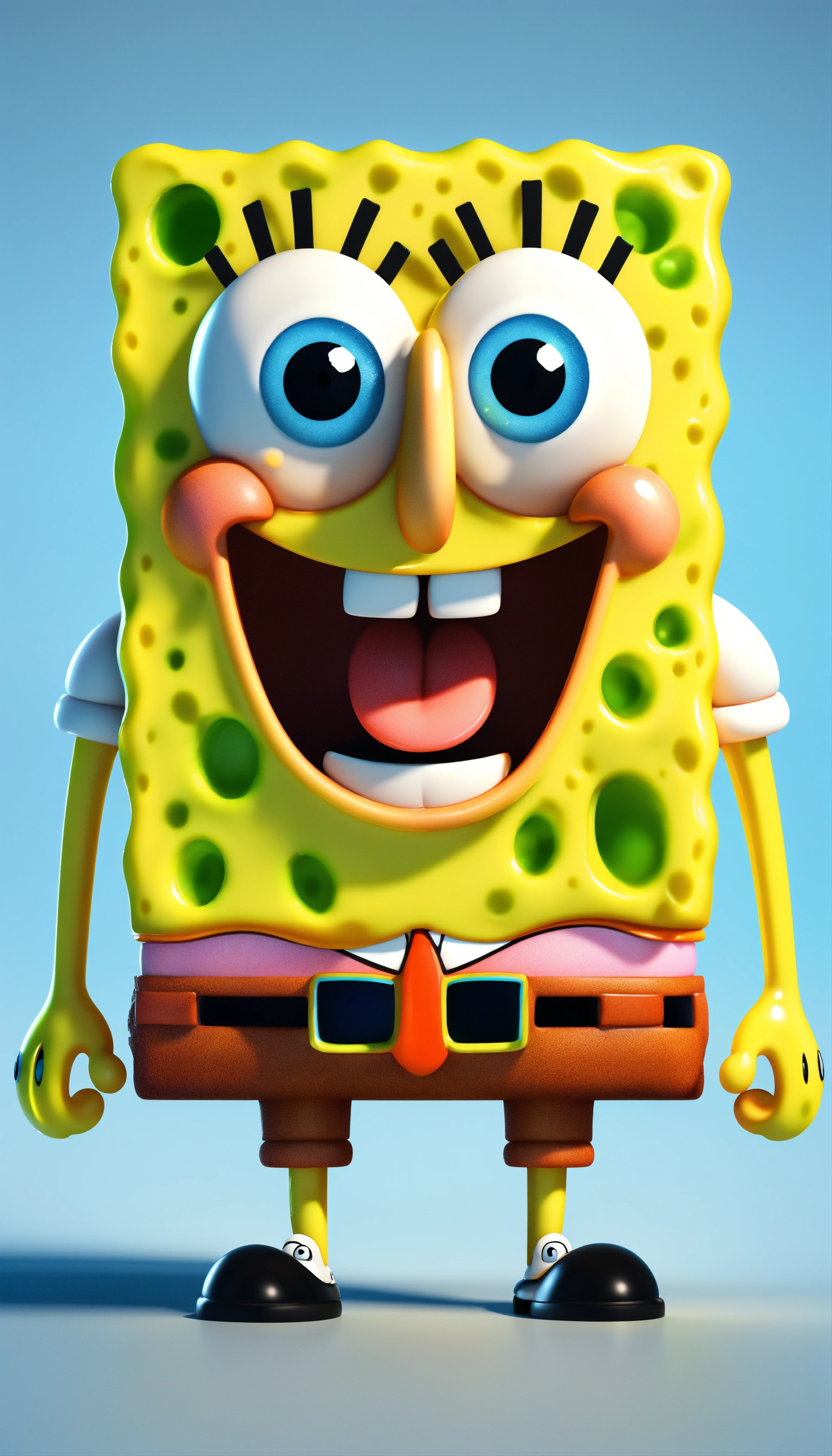 Spongebob, full body image of cute, realistic, vivid colors octane render trending on artstation, united colour background wall, beautiful, attractive, 3 d rendering, pixar cute, andrew dickson, detailed, realistic, 3d, cartoon style, well shaded, smooth, pixar, 8k, high quality