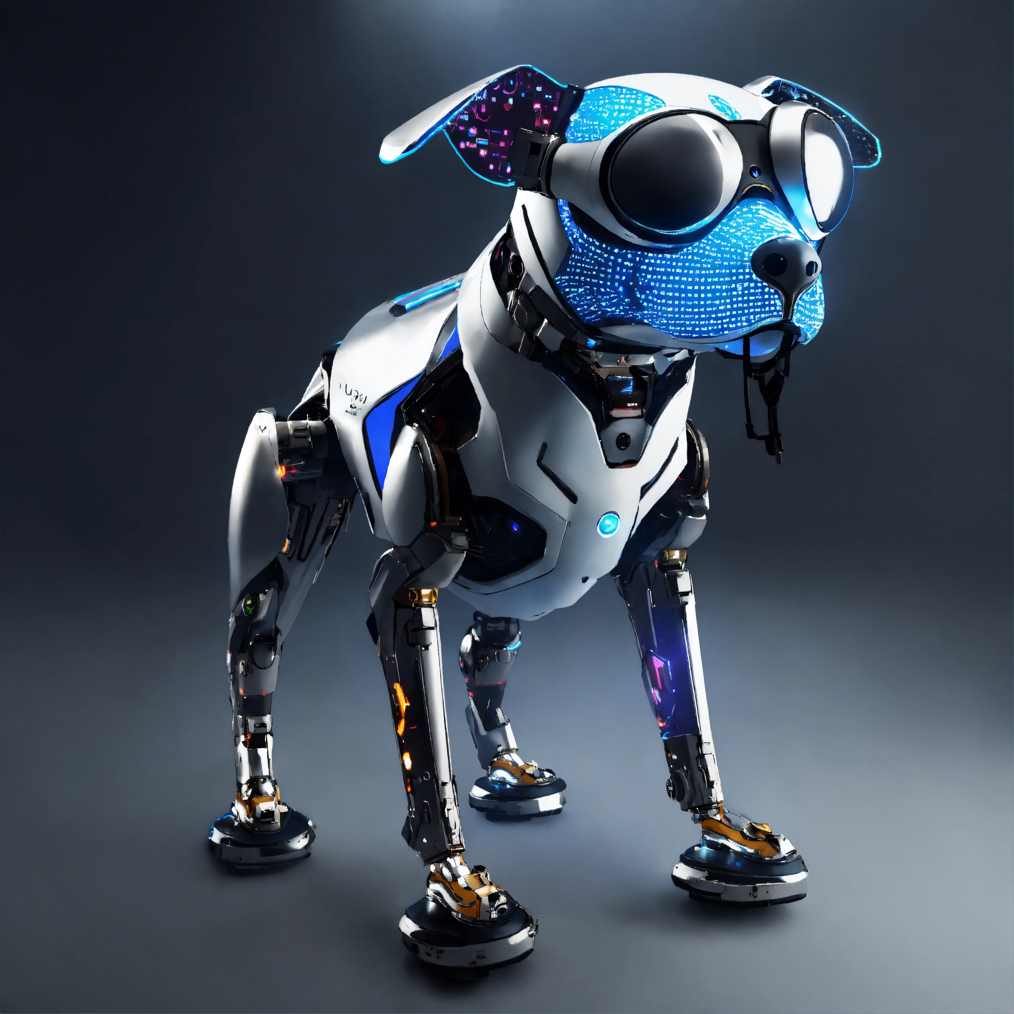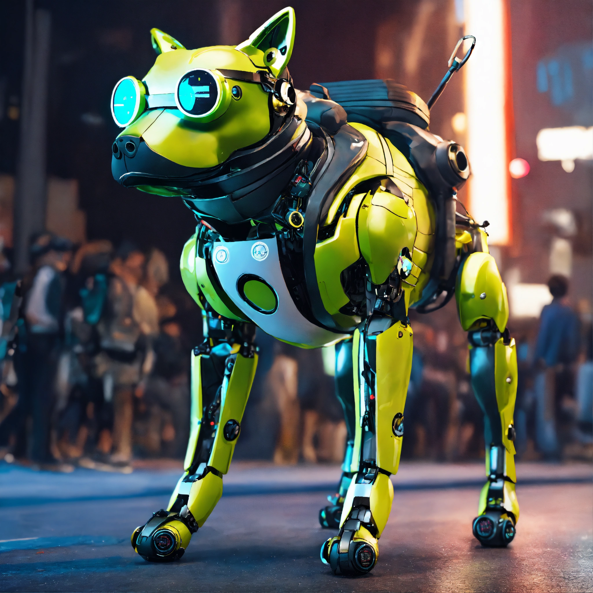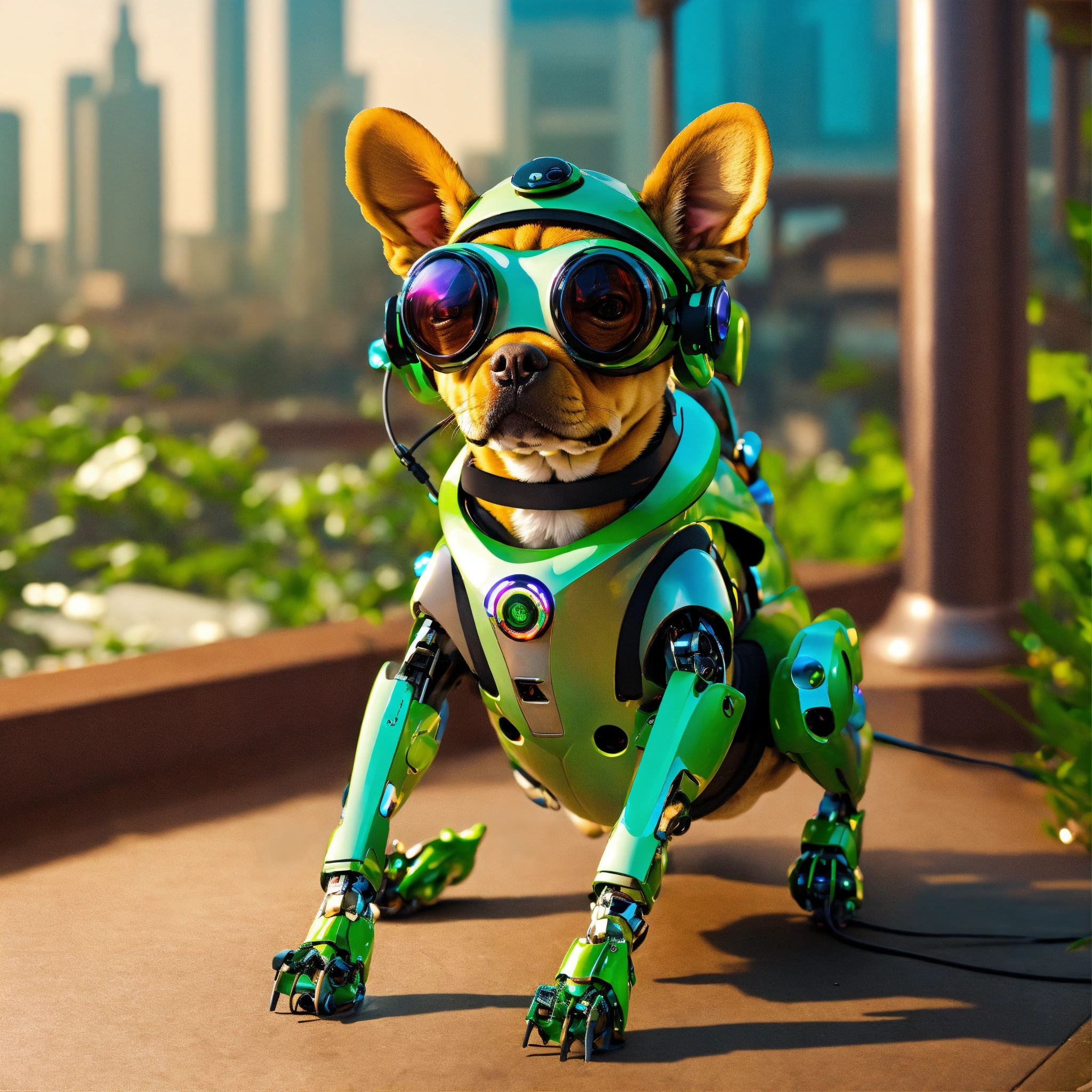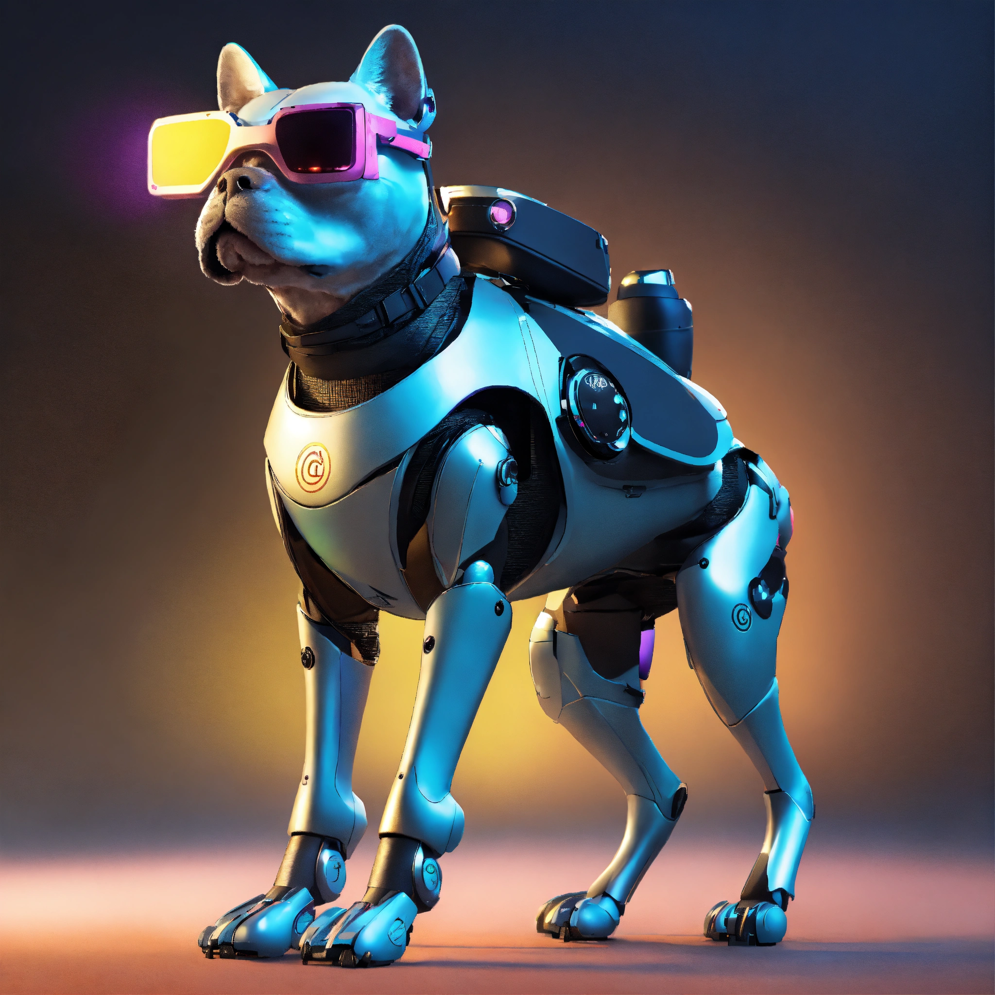 Frog dog inu immaculate full body cyberpunk style robot with virtual reality glasses