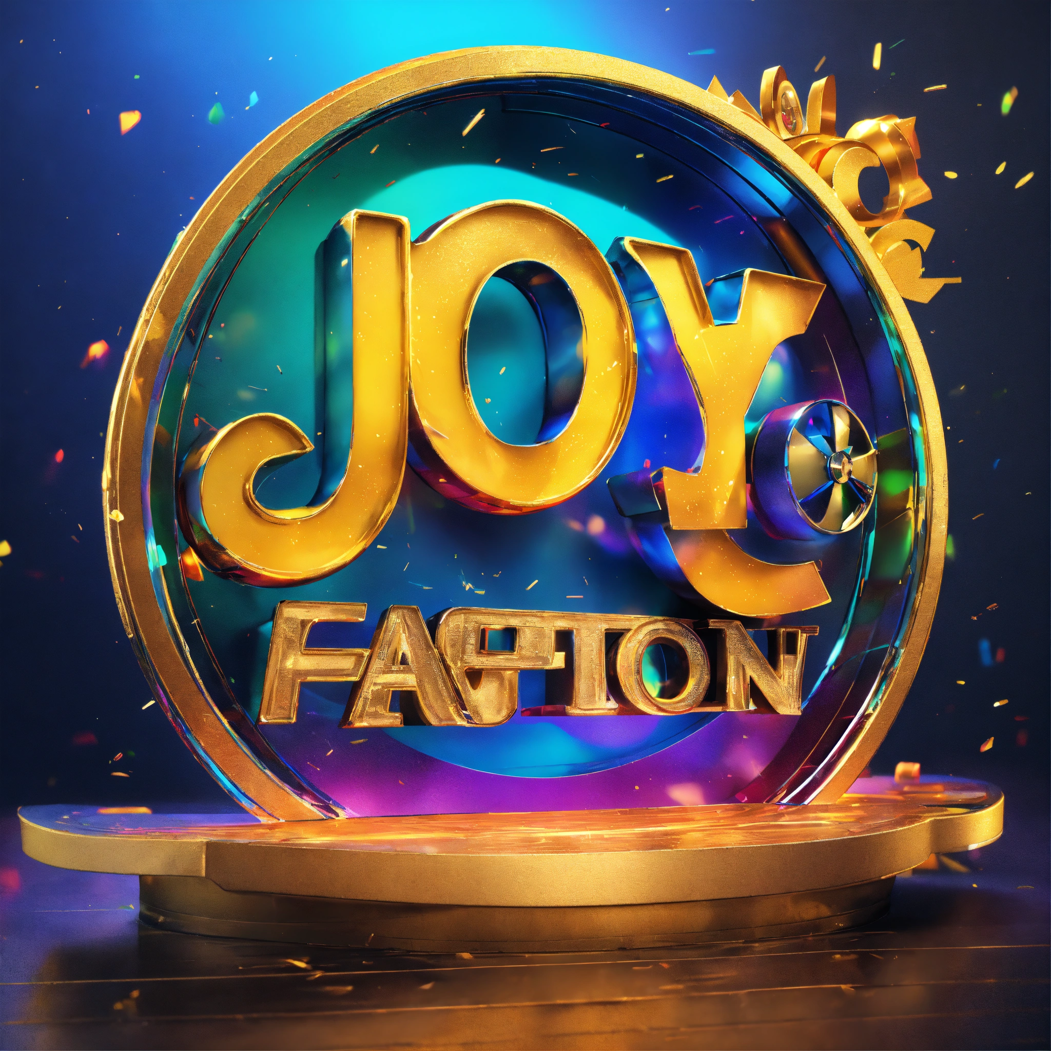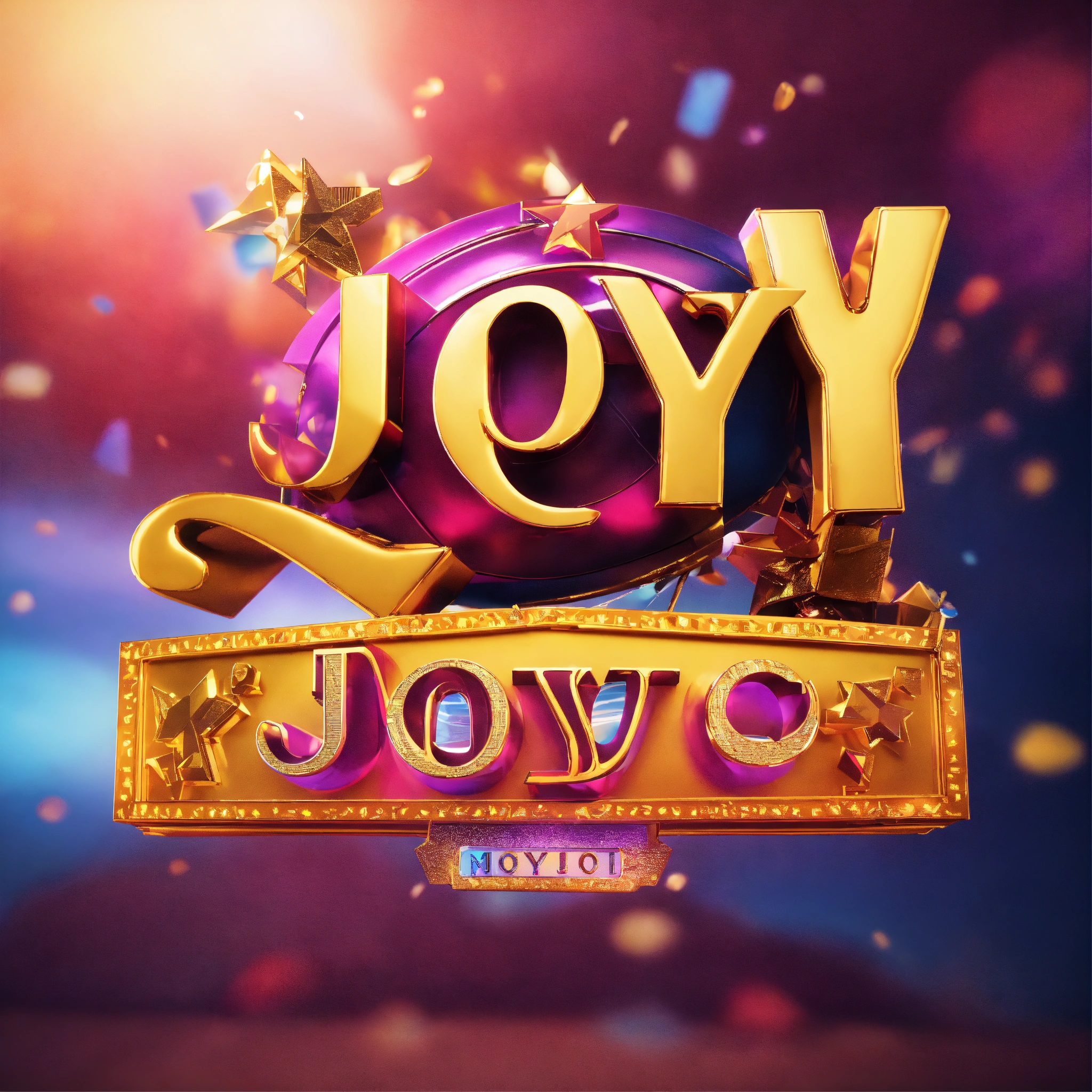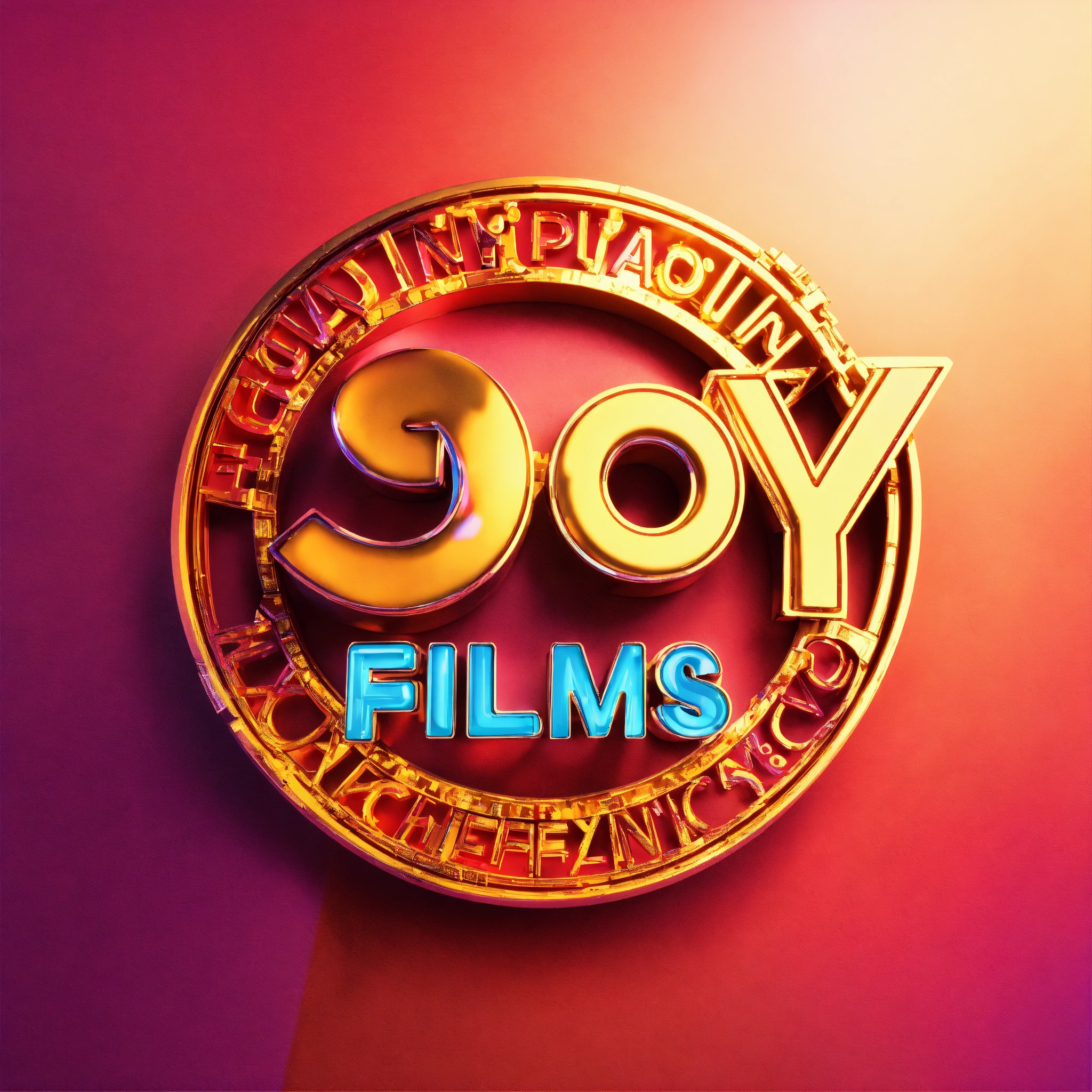 Movie production logo, text as " joy films ", 3d metallic logo, happiness and joy expressing, octane rendering, cinema 4d render, photorealism, hyper-realistic, colorful, vibrance, beautiful lettering art