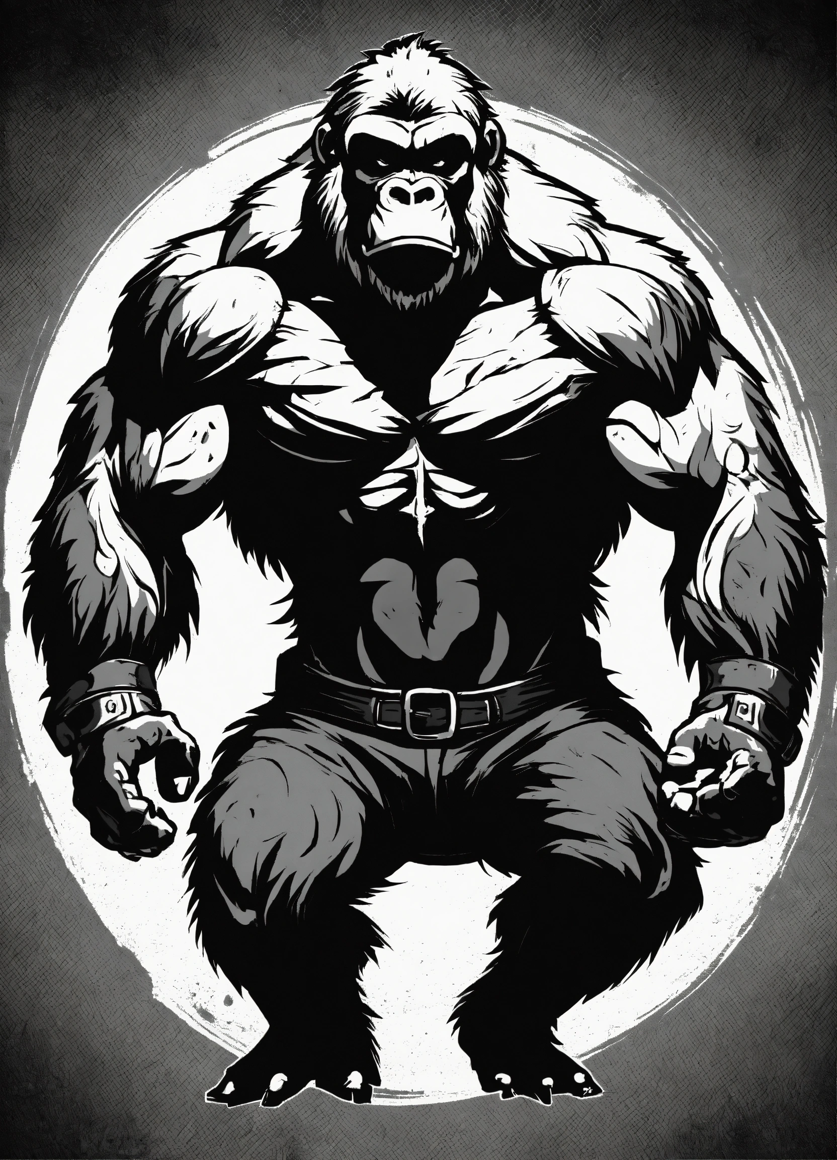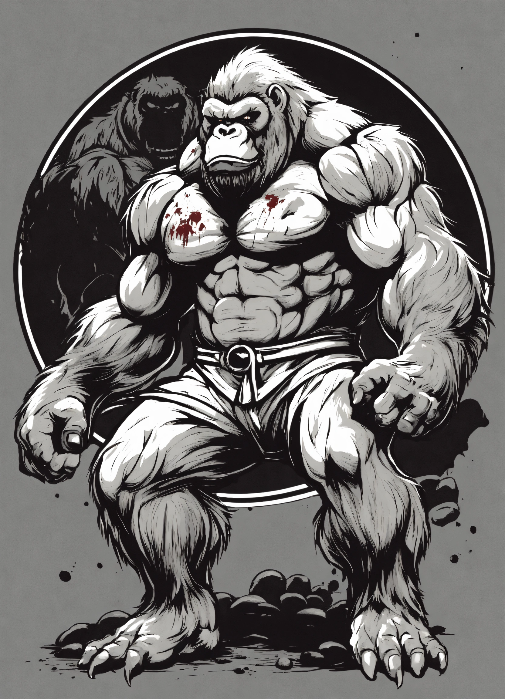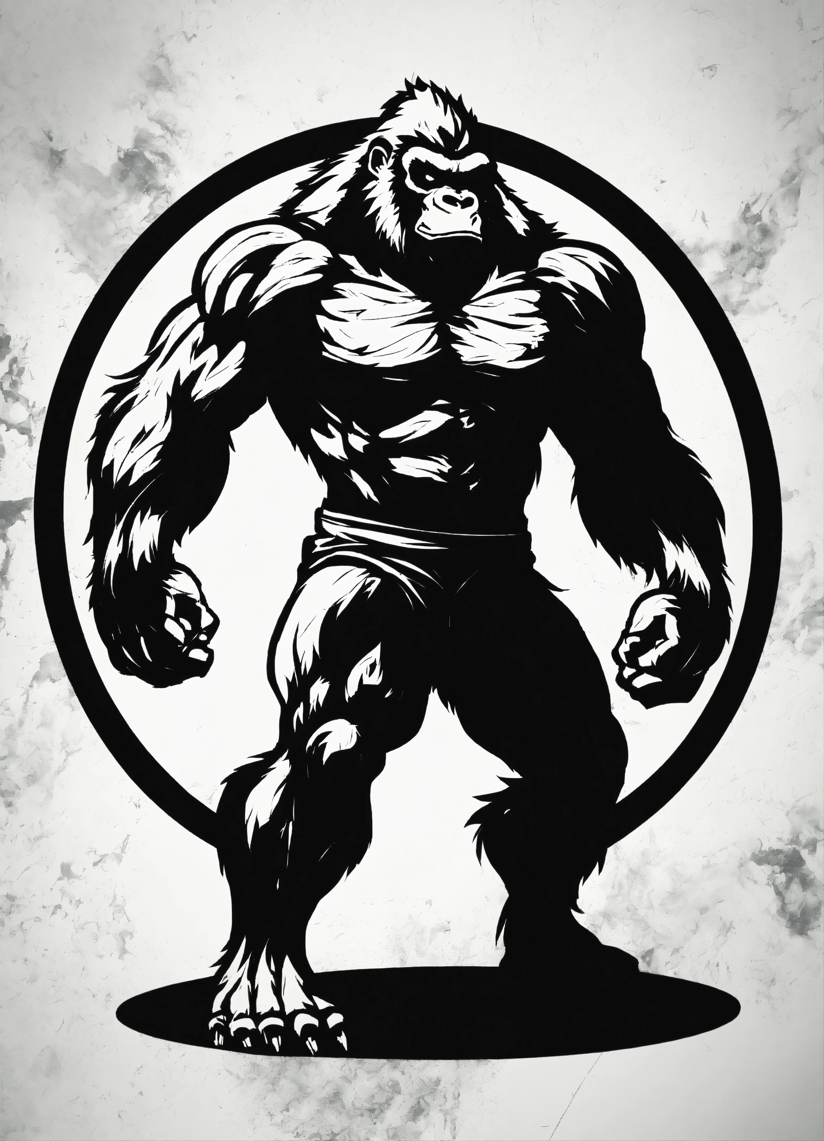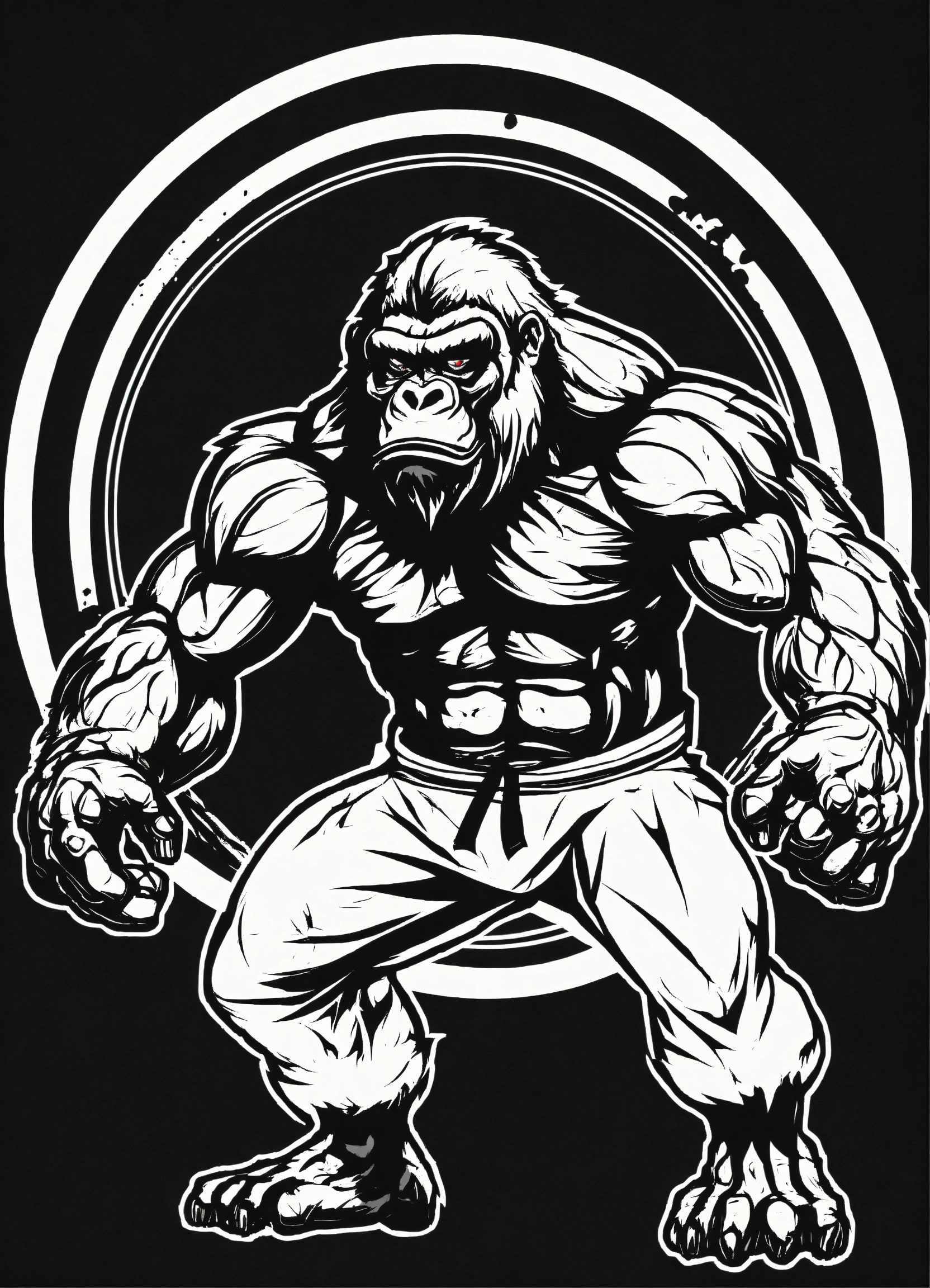 Zombie gorilla street fighter black and white circle logo full body fighting stance anime