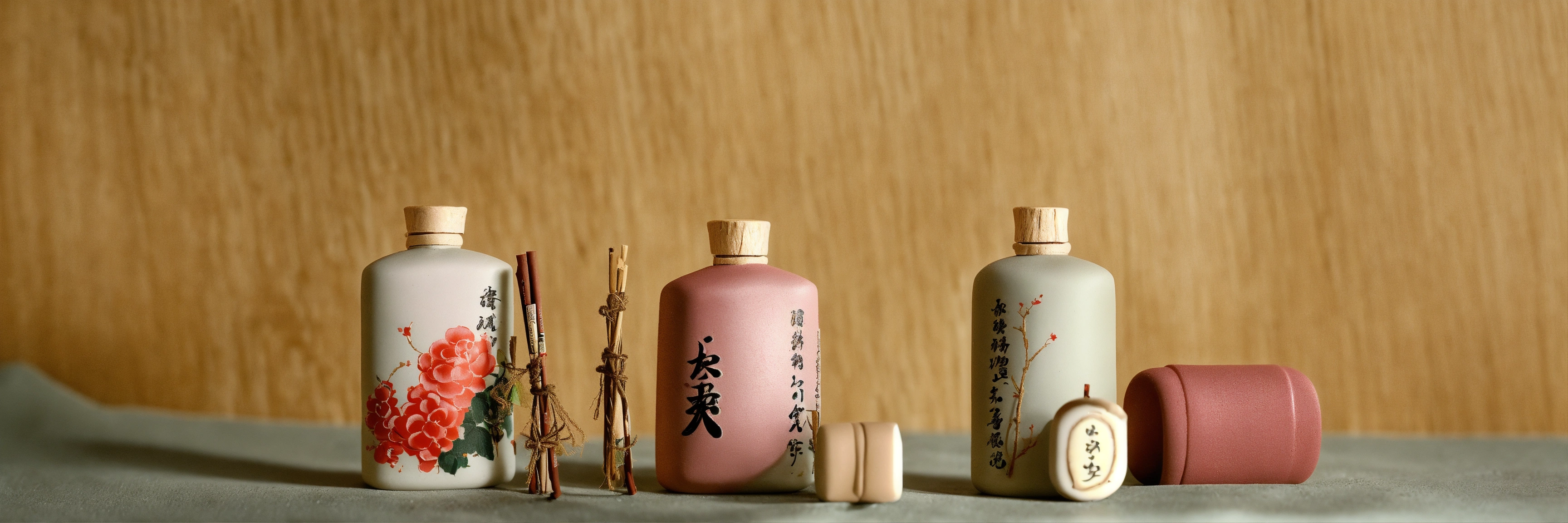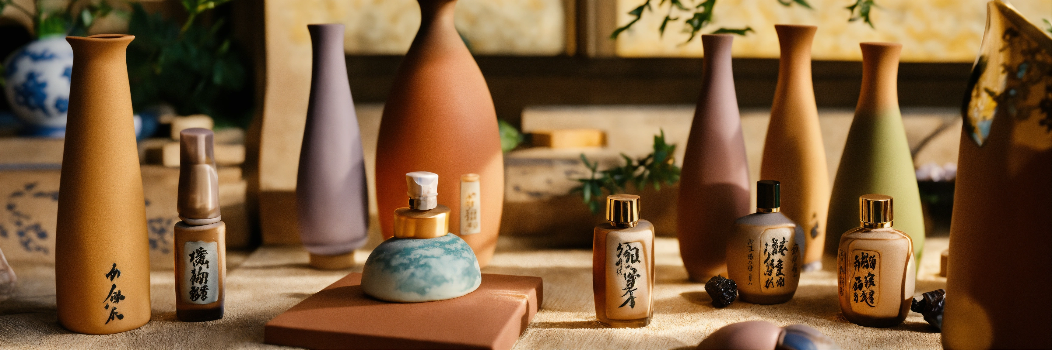 close-up view on fragrance bottles