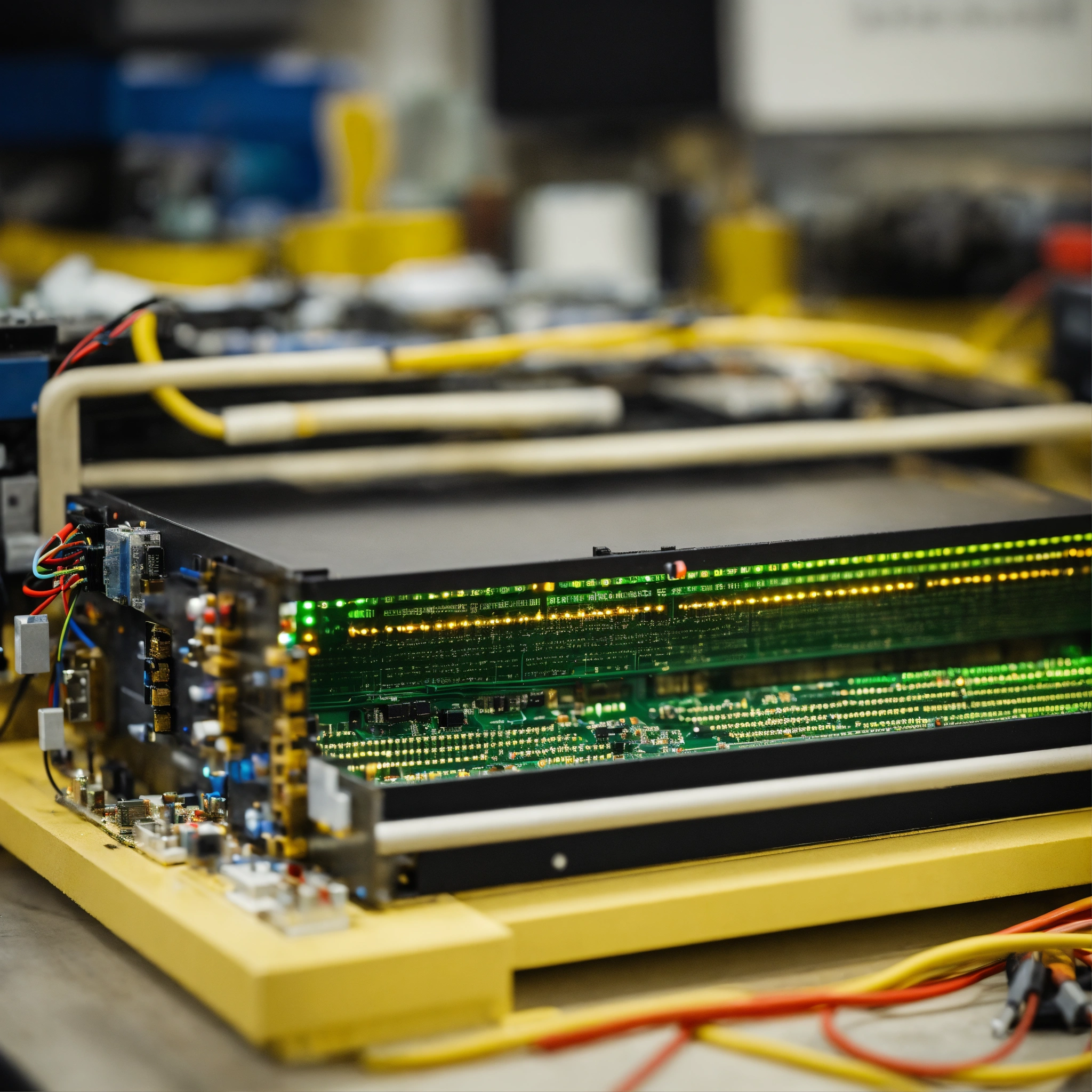 A photo of a large electronic component, the component is new and in good condition, the background is a clean and organized workshop