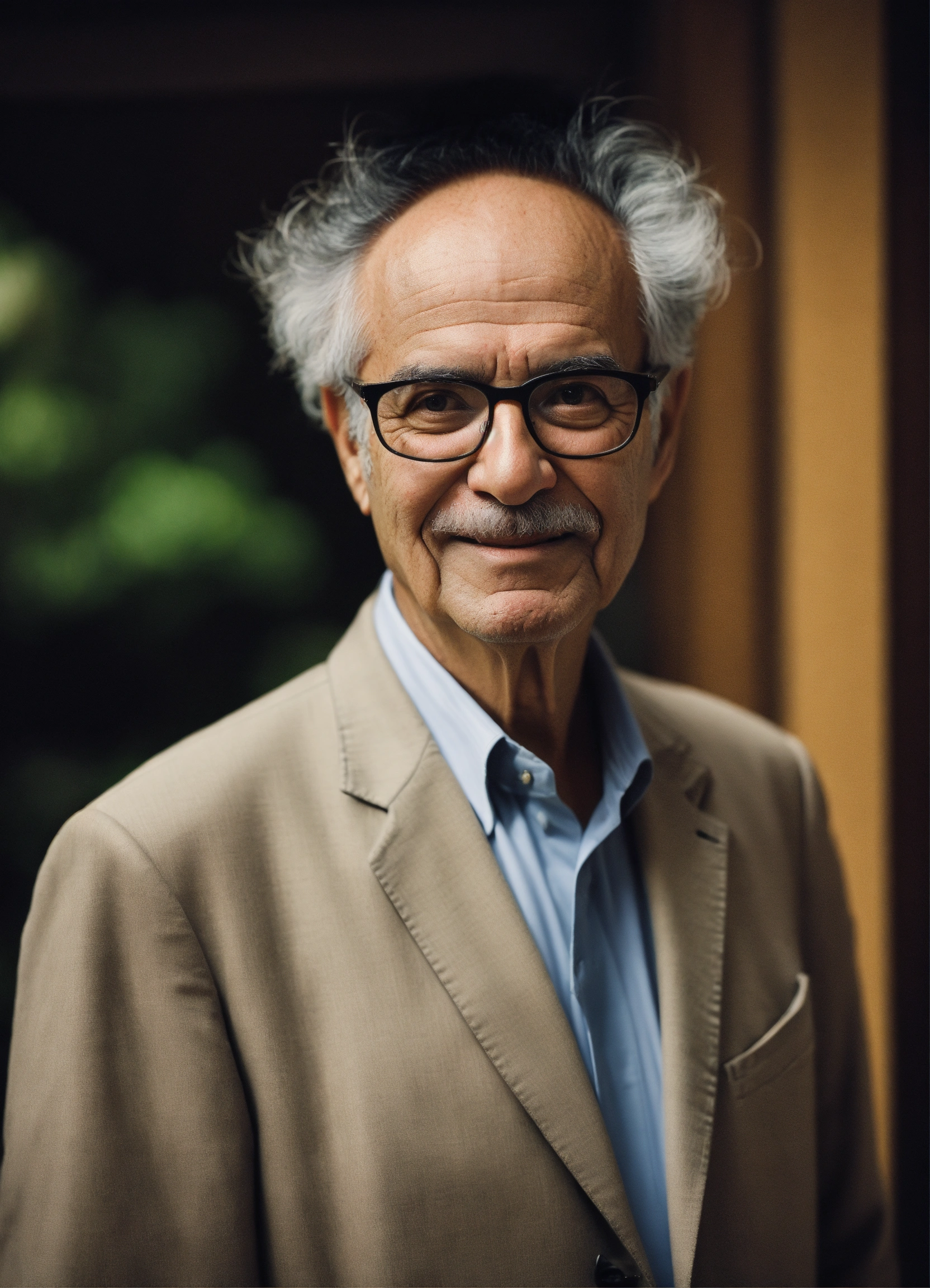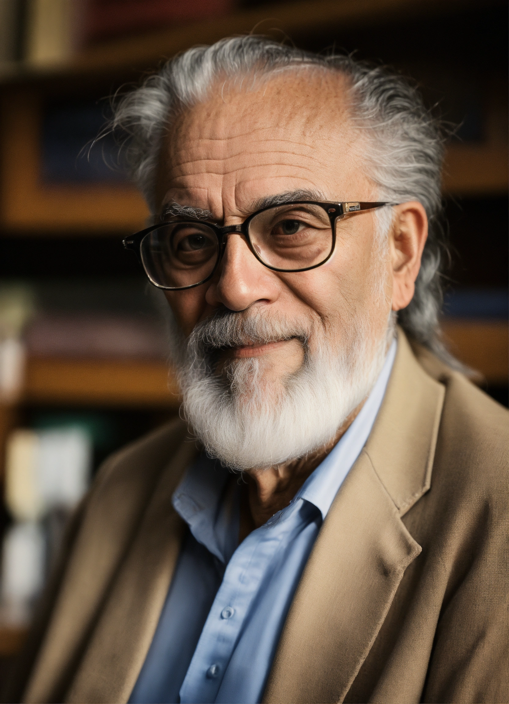 Create for me dermeval saviani, a brazilian teacher, philosopher and pedagogue. he is professor emeritus at the state university of campinas (unicamp), professor emeritus at cnpq and general coordinator of the study and research group "history, society and education in brazil". he is alive in the year 2010, his hair is gray, he wears rectangular glasses without wedding glasses, he wears a black blazer with a white formal t-shirt, he is slightly bald on the top of his head and his hair is straight and combed to behind, her lips are thin.