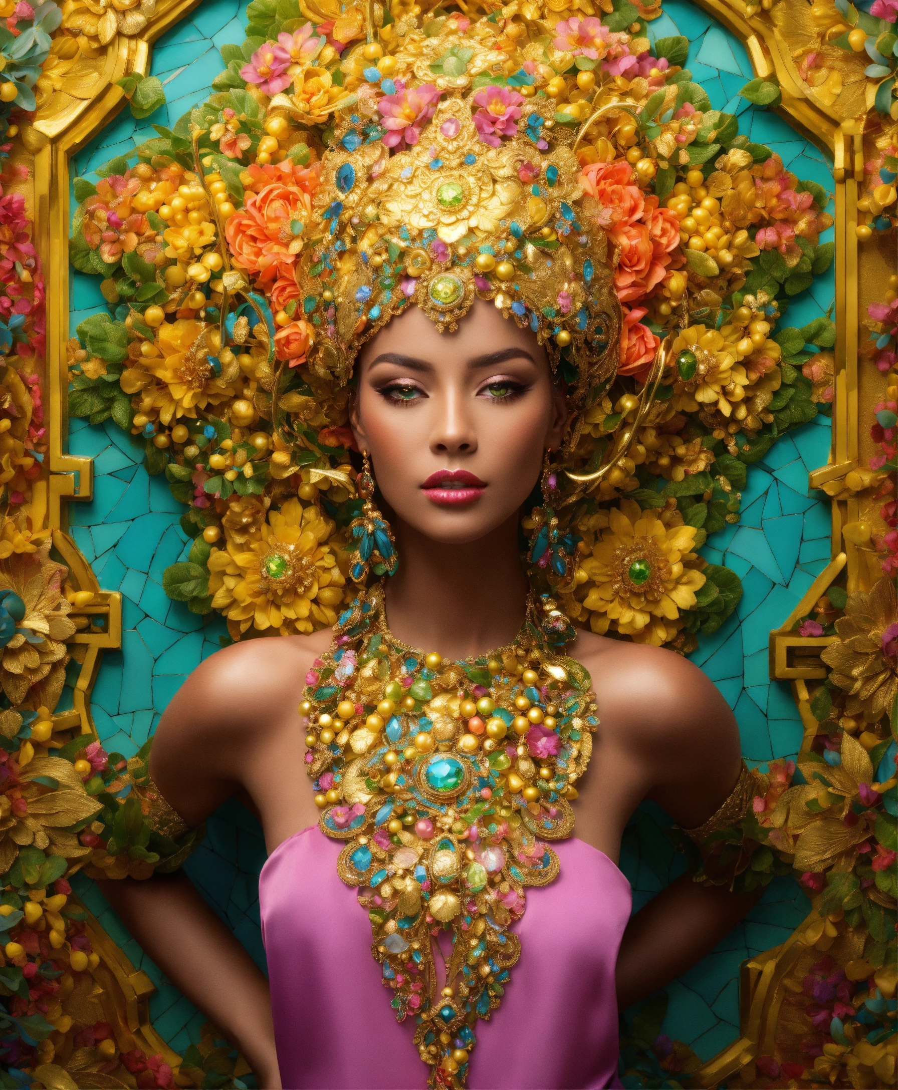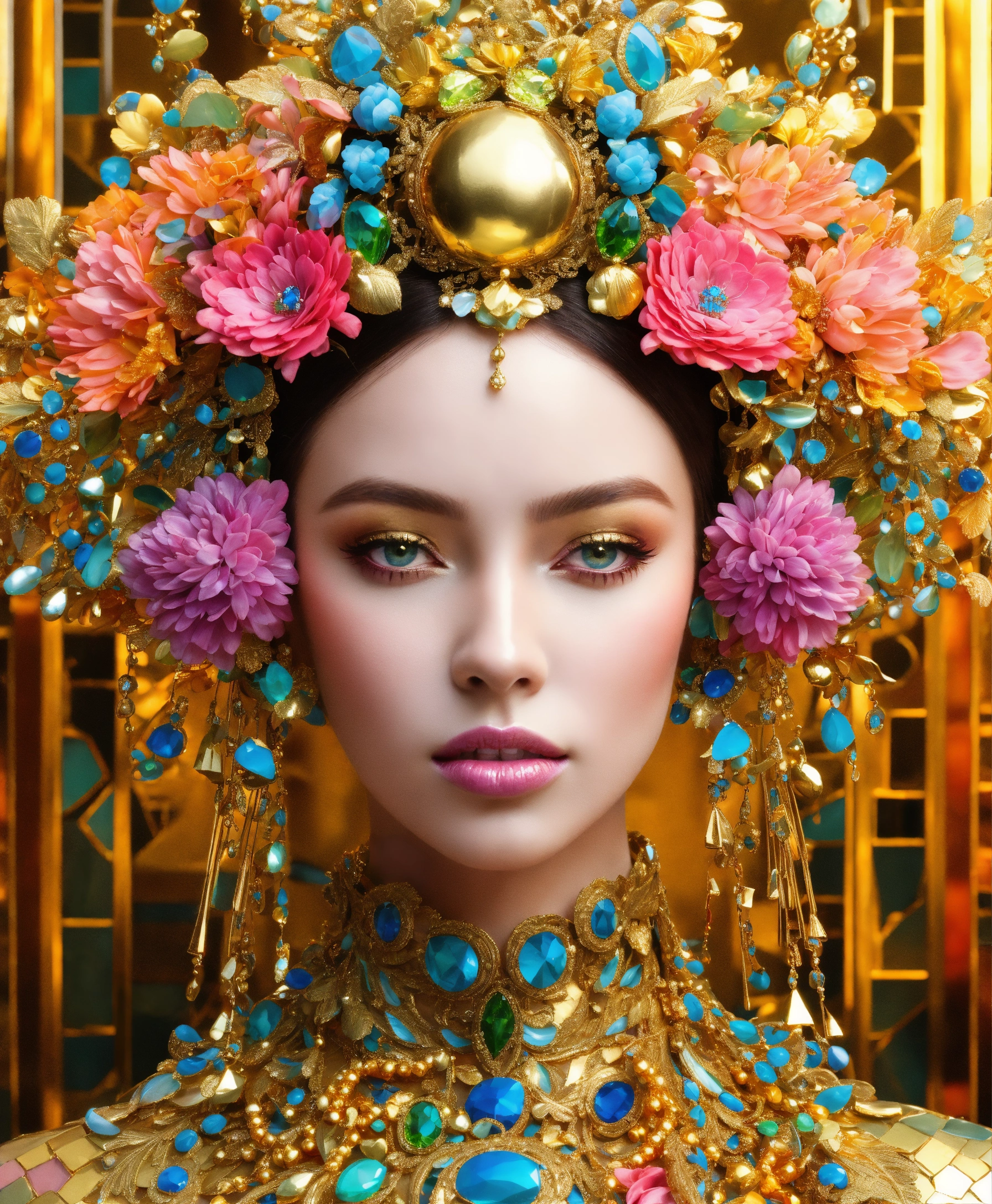 Futuristic beautiful photogenic supermodel painted glamorous beautiful colourful dreamy awesome elegant elaborate complex detailed awesome gold blue pink green orange peridot lilac yellow magenta cyan gold silver copper fabulous 8k intricate 8brush work vivid bright vibrant colors 3d gold trim metallic 24k gold filigree background mosaic awesome rich haute couture bambi eyes ultimate beauty sheen 8k glamorous filigree mosaic pearlized amazing hyperdetailed elegant elaborate couture elaborate hair style contrast frosty brushed matte luminous gold yellow background vibrant pink silver green detailed 8k 24k gold trim gold background asymetrical beautiful awesome superb 8k sheen 3d klimt vibrant colors large eyes gorgeous beautiful colourful delicate facial features beautiful superb 24k gold highlights 8k in focus red yellow gold pink klimt flowers gold foil 8k in focus gorgeous superb sublime awesome 8k hyperdetailed hyper-realistic 8k