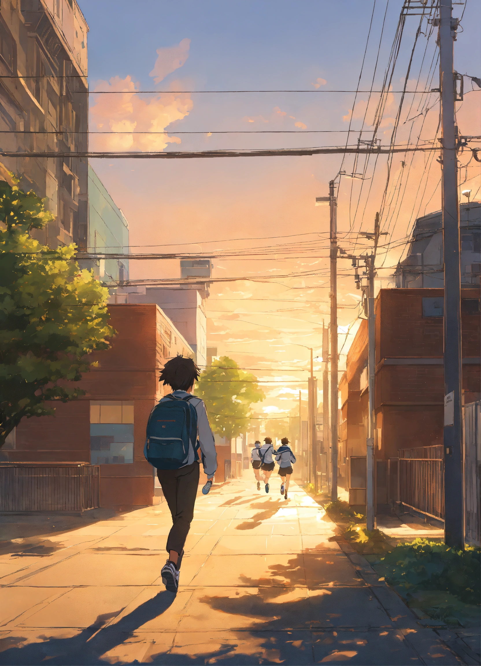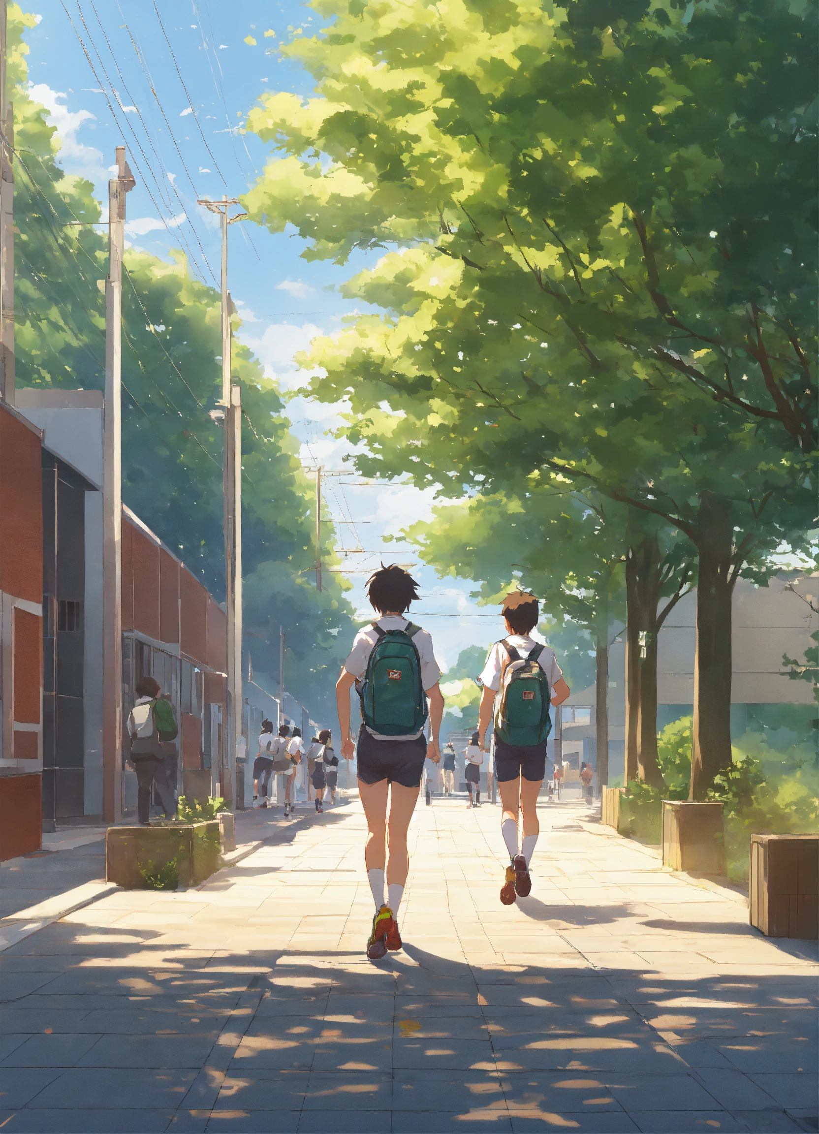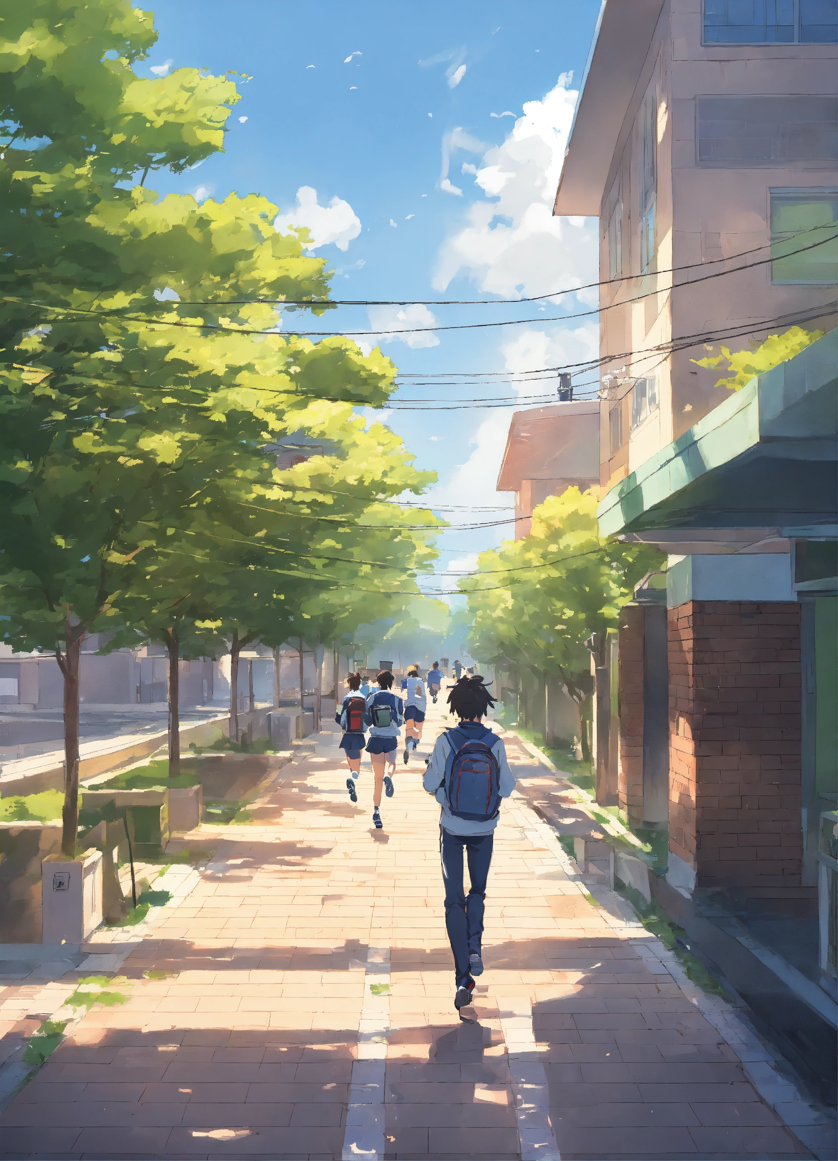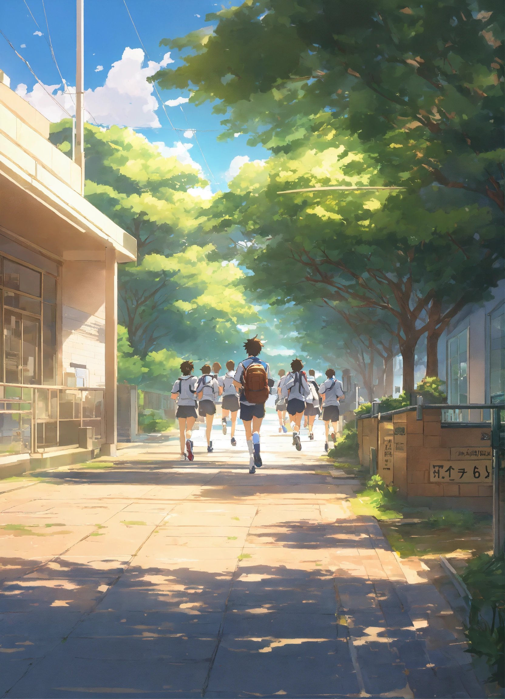 A high school student running in school
