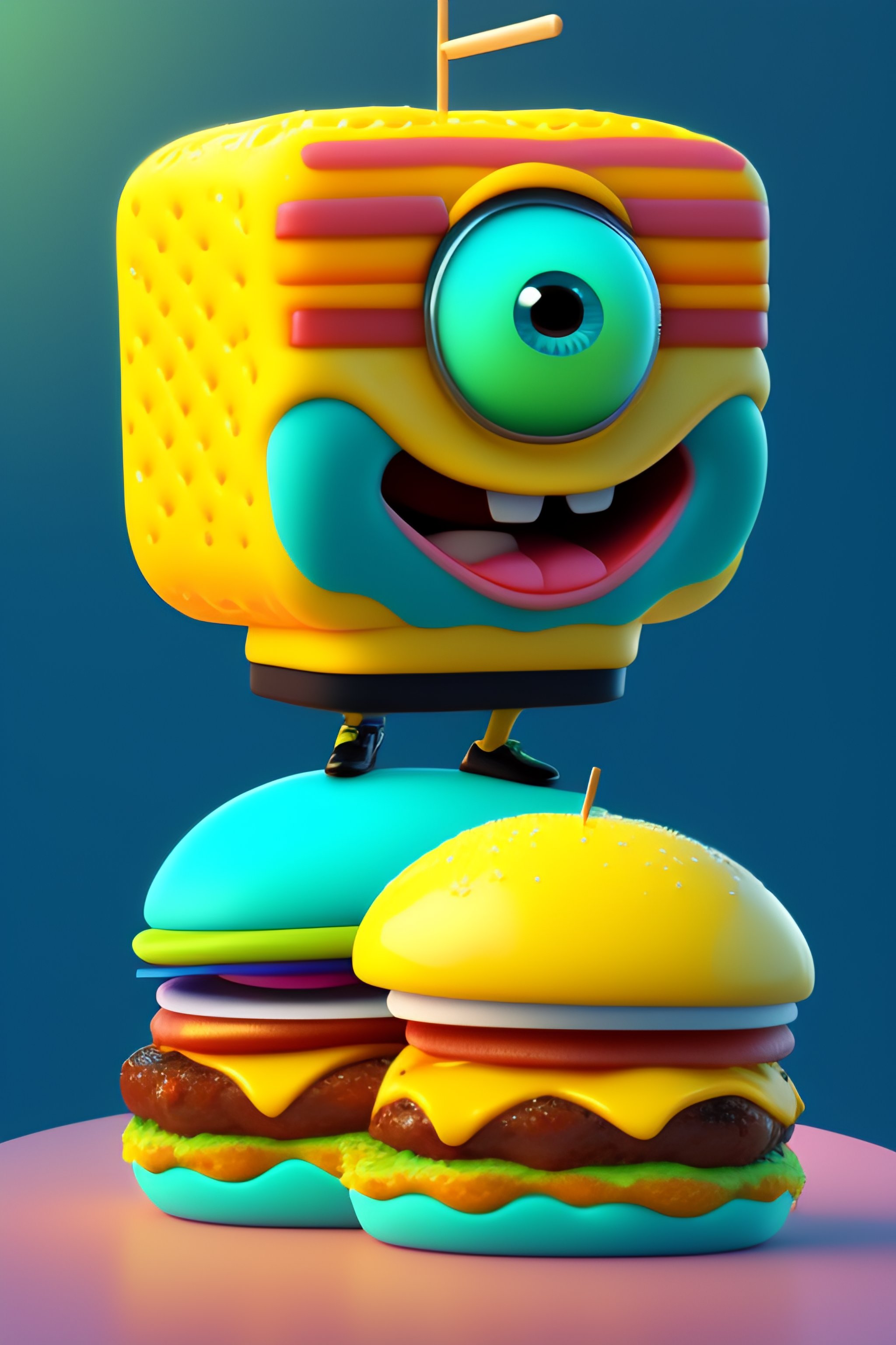 Spongebob squarepants, cooking burgers, standing character, soft smooth lighting, soft pastel colors, skottie young, 3d blender render, polycount, modular constructivism, pop surrealism, physically based rendering, square image