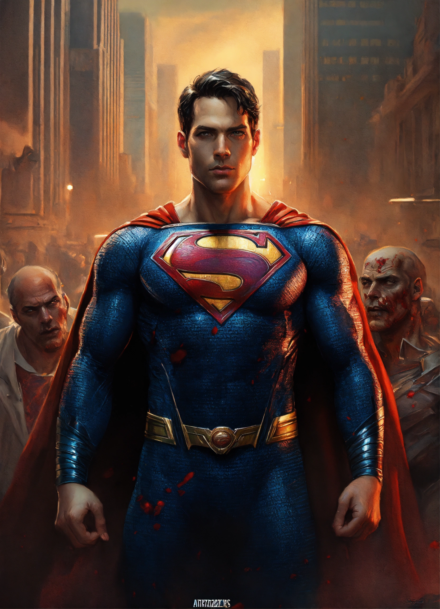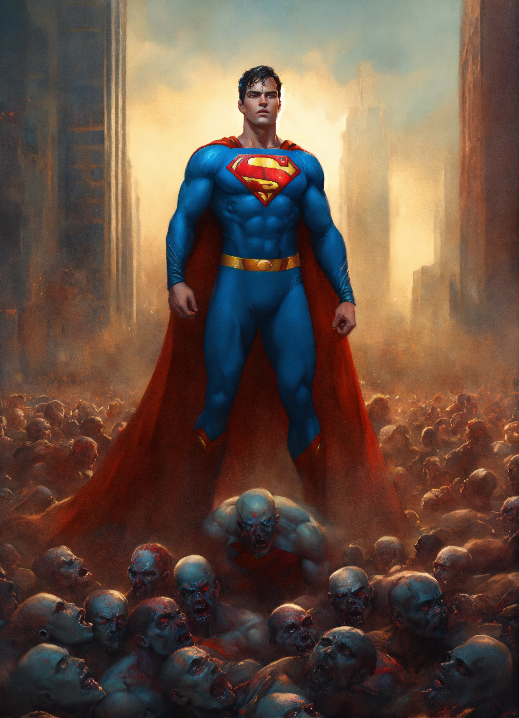 Zombies a superman by zack snyder, realistic portrait, symmetrical, highly detailed, digital painting, art station, concept art, smooth, sharp focus, illustration, cinematic lighting, art by artgerm and greg rutkowski and alphonse mucha