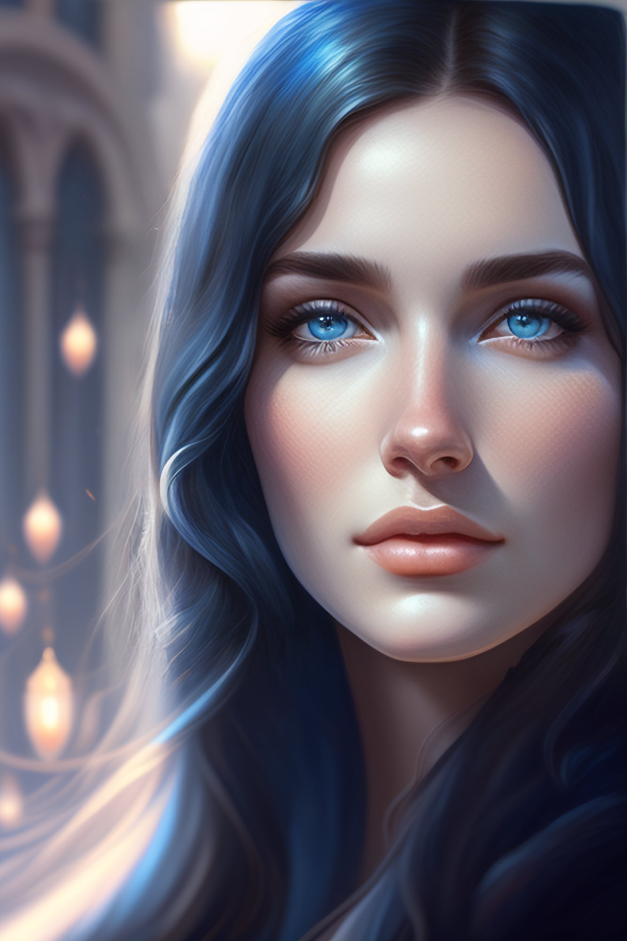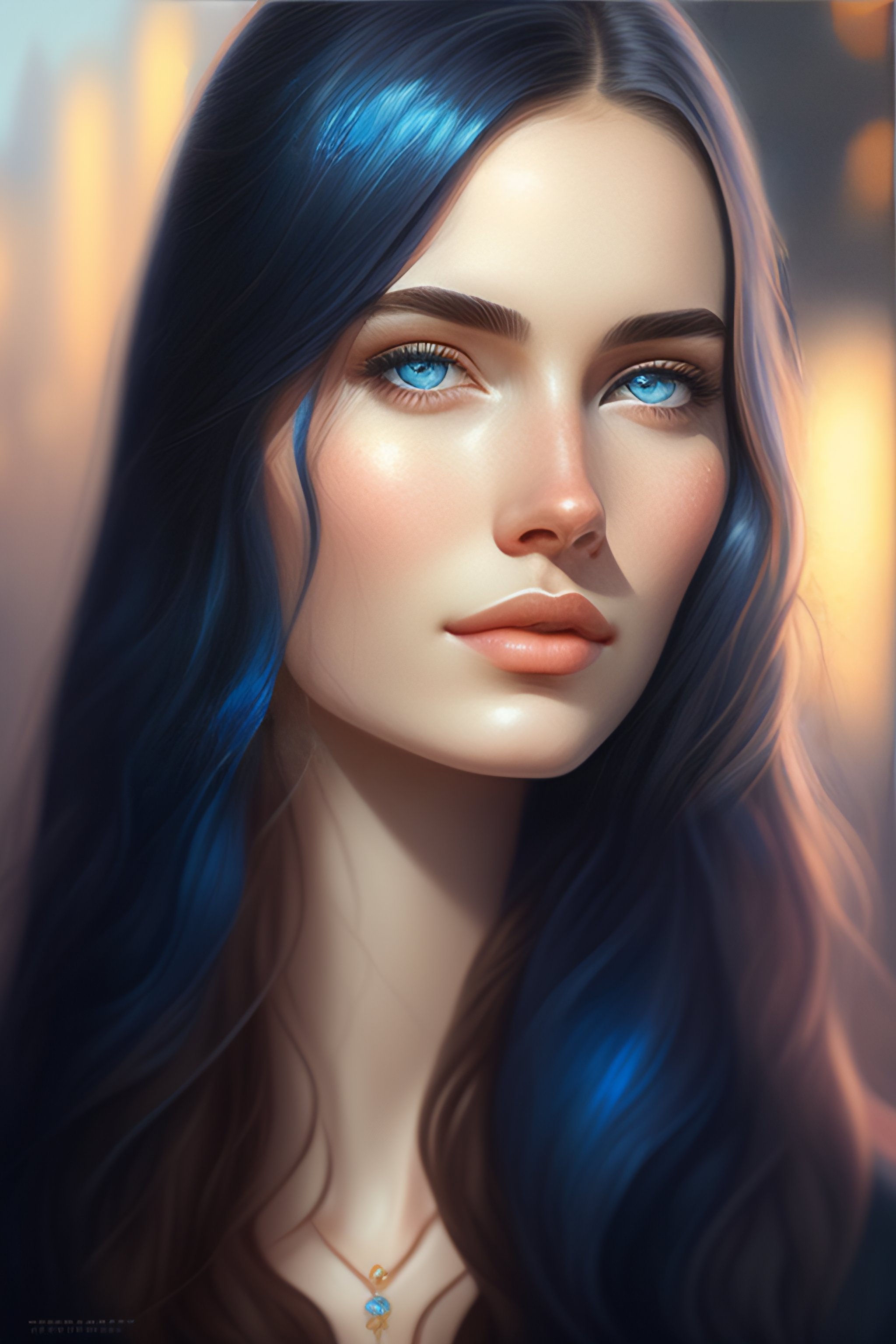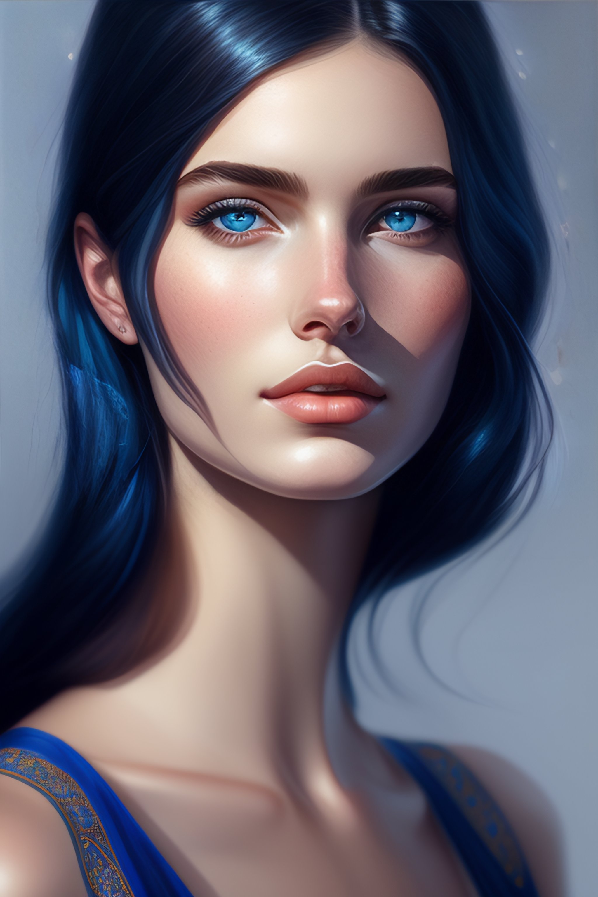 Highly detailed illustration of a dark straight haired young lady with blue eyes and a sad face, natural beauty, sad face, intricate, sad, elegant, highly detailed, lyly bloom, centered, digital painting, artstation, concept art, smooth, sharp focus, concept art, wlop.