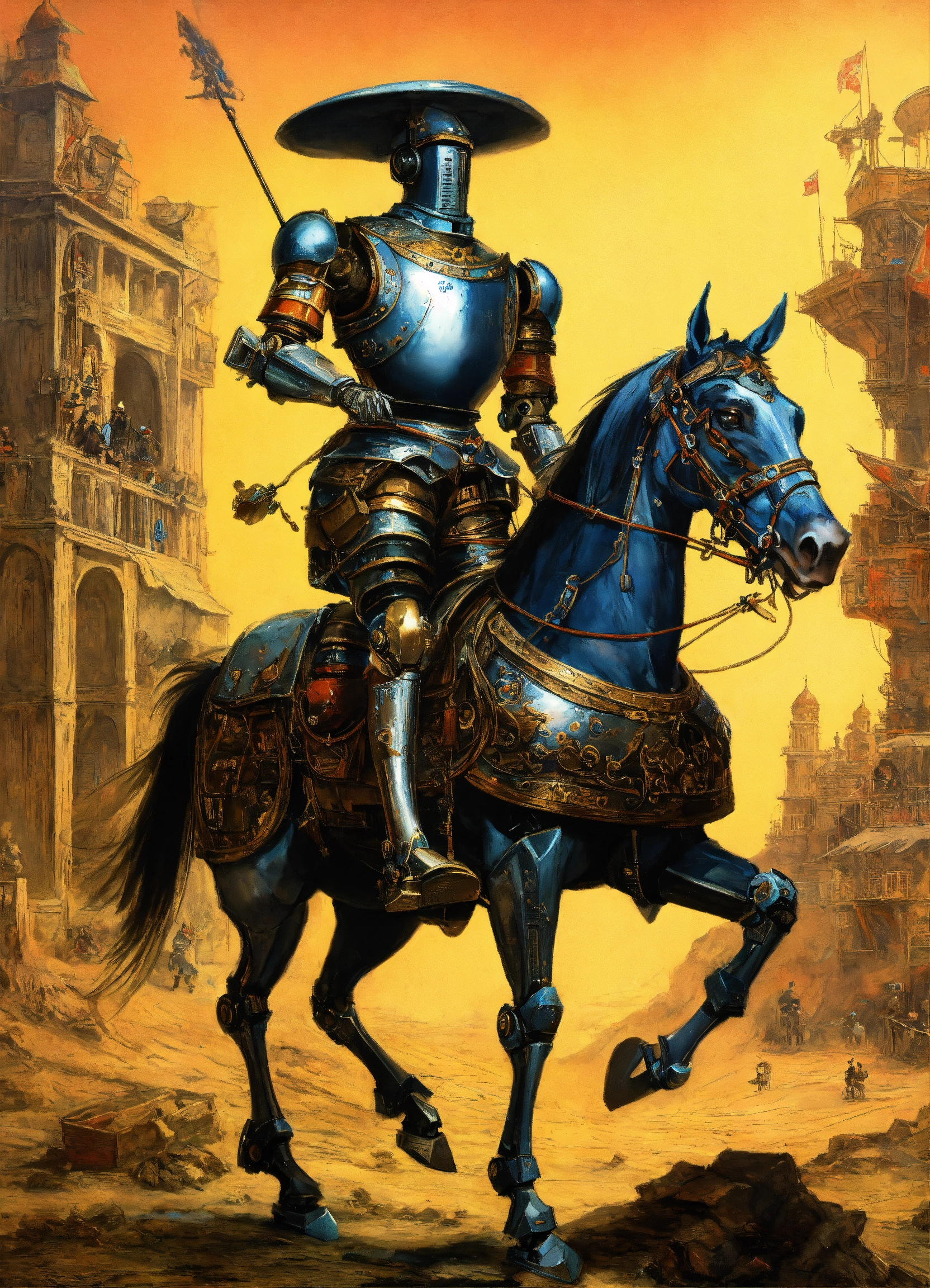 A don quixote of the mancha robot ride a robothorse