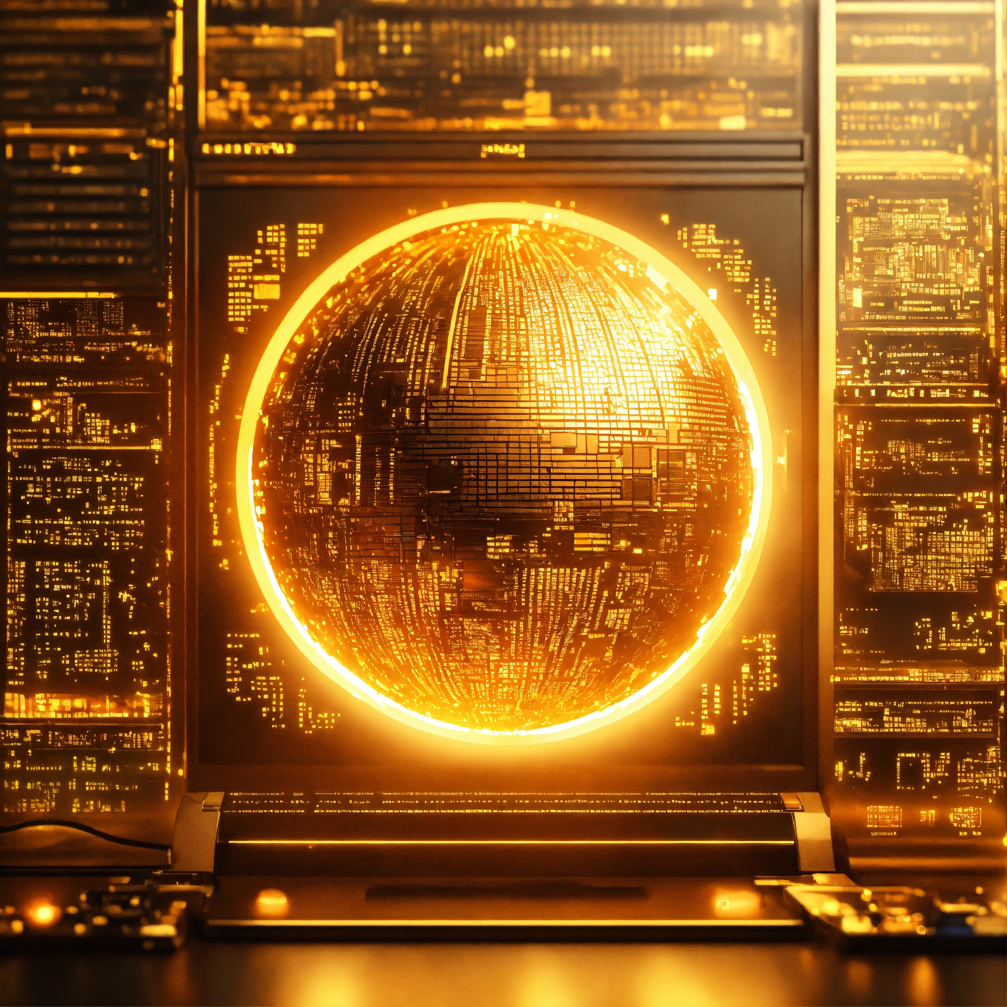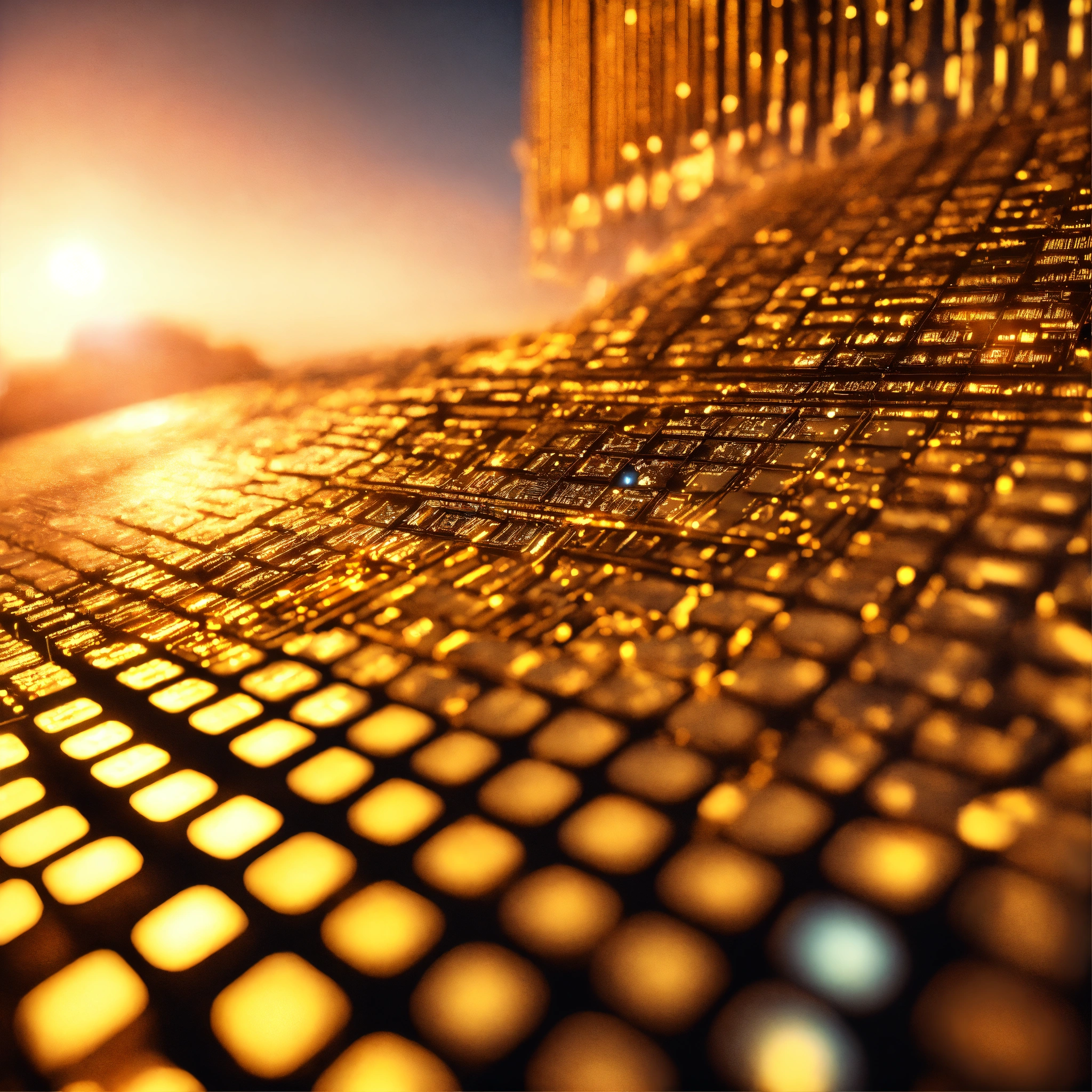 Ultra realistic в взphoto of a very high tech 3d software code lit with golden hour light