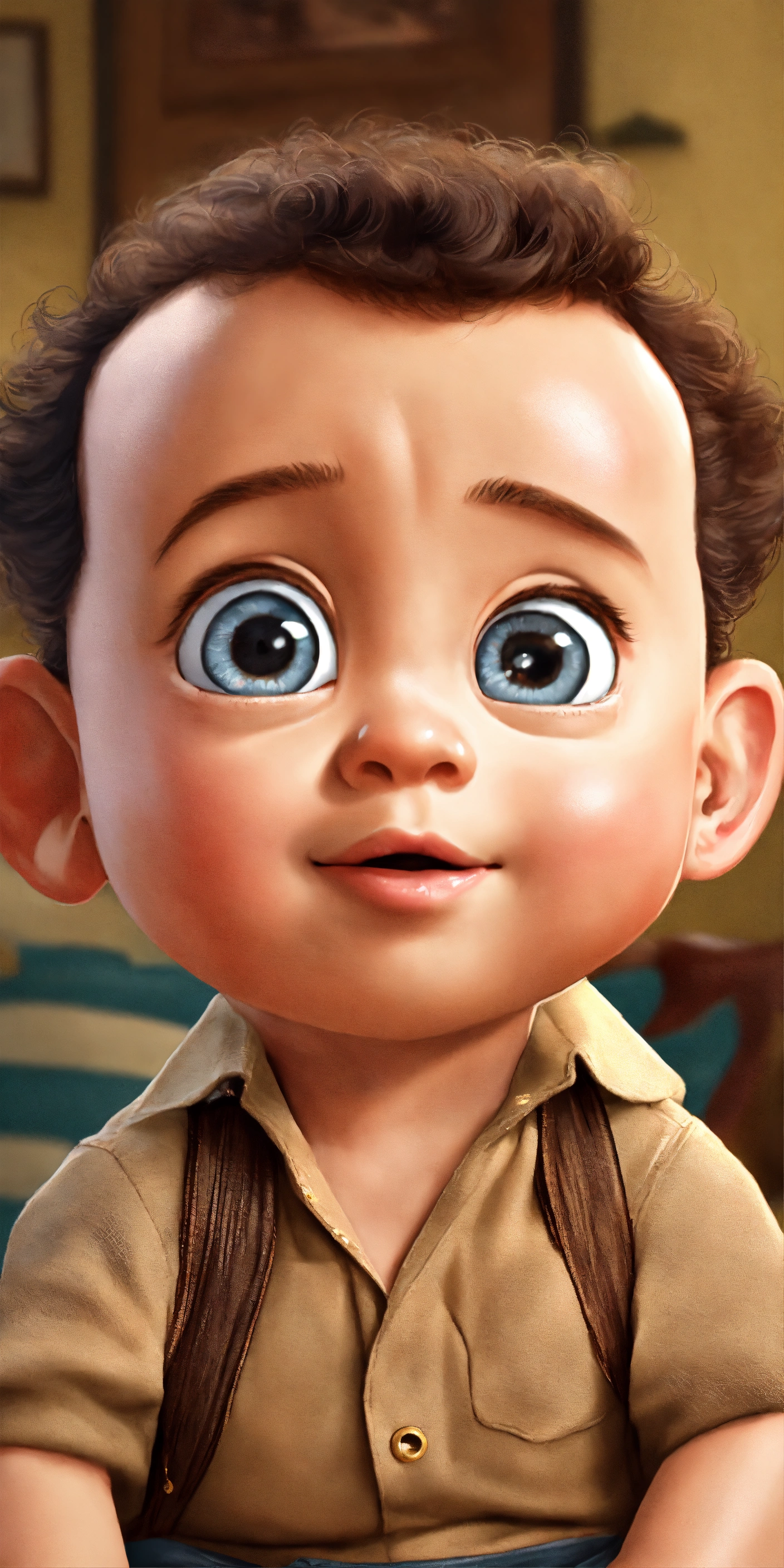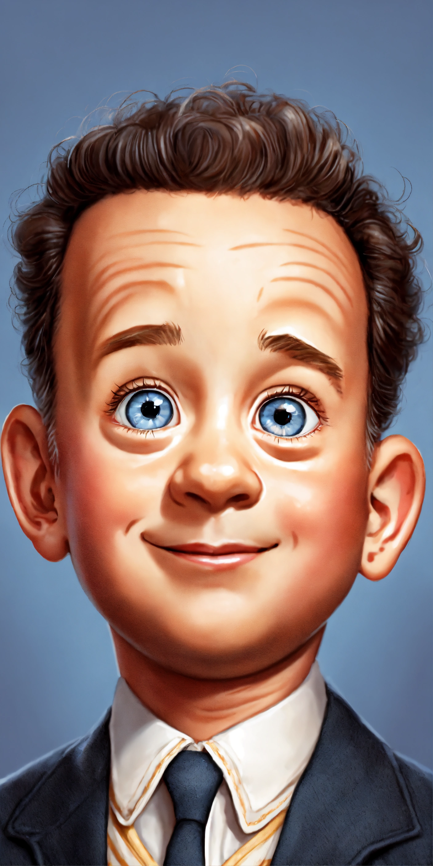 Tom hanks cute baby cartoon ultra realist big eyes