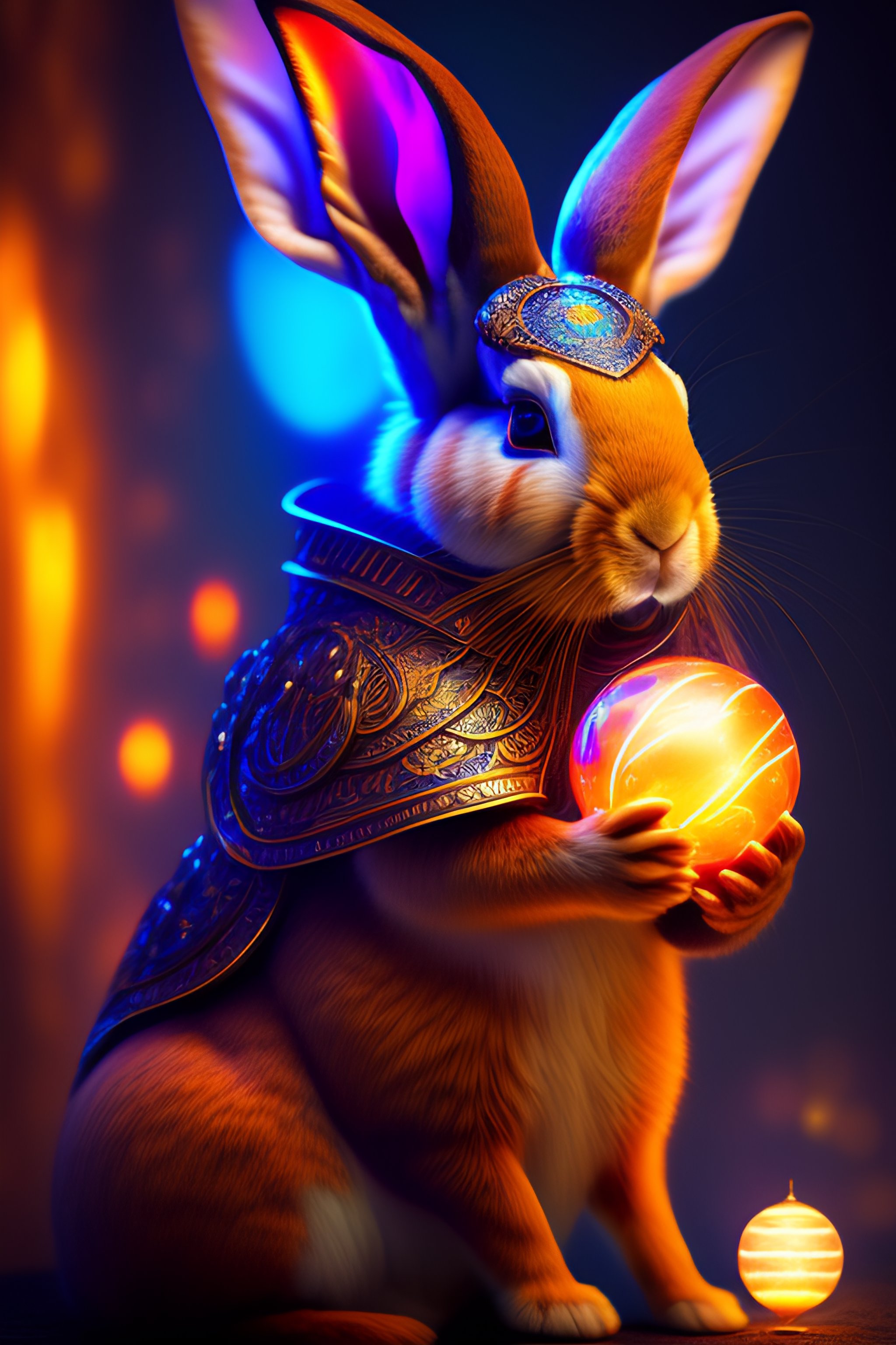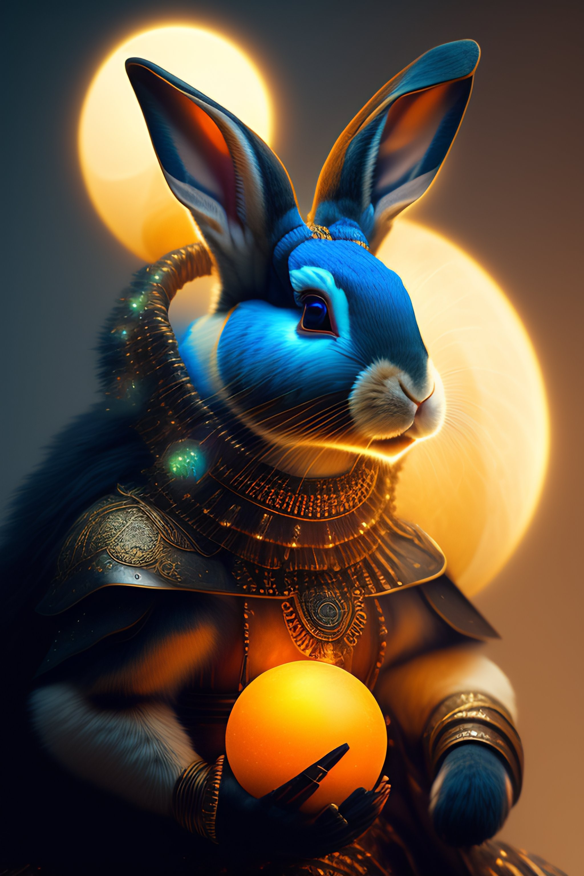 A digital painting of a rabbit holding a glowing ball, cyberpunk art, inspired by tomasz alen kopera, fantasy art, skeleton warrior, textured detailed skeleton, in style the demon seated, beeple artwork, shaman witch, official fanart behance hd, detailed painting 4k, photo of ghost of anubis, wholesome techno - shaman lady, fantasy illustration