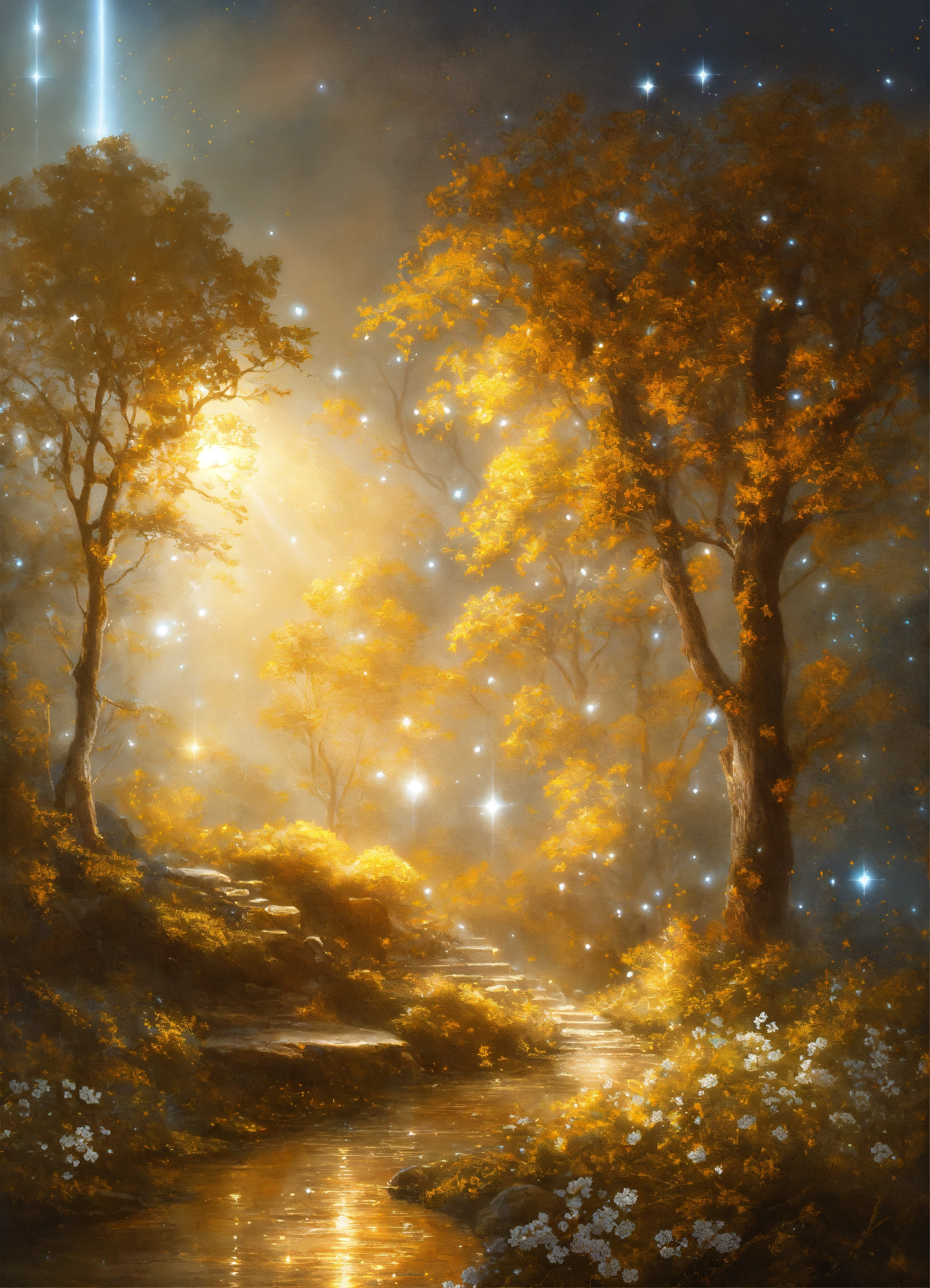Beautiful sparkling white light with radiance, gold and white, cosmic scene, nurturance, kindness, comfort, cosmic beauty